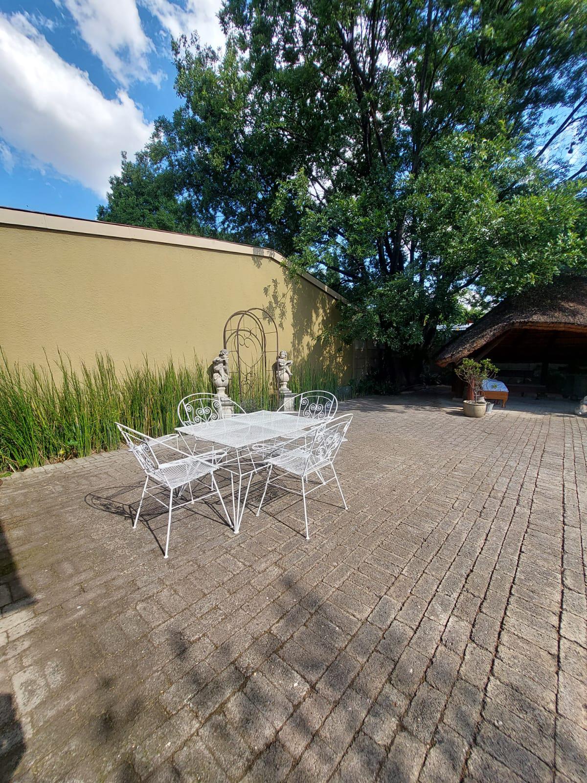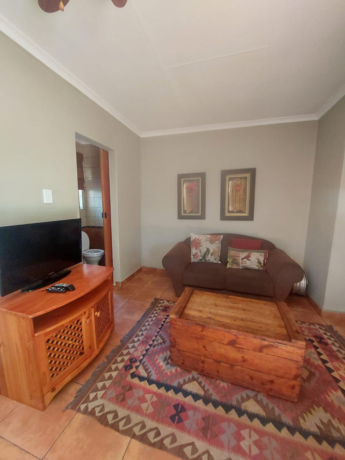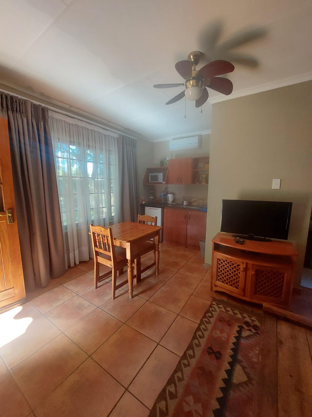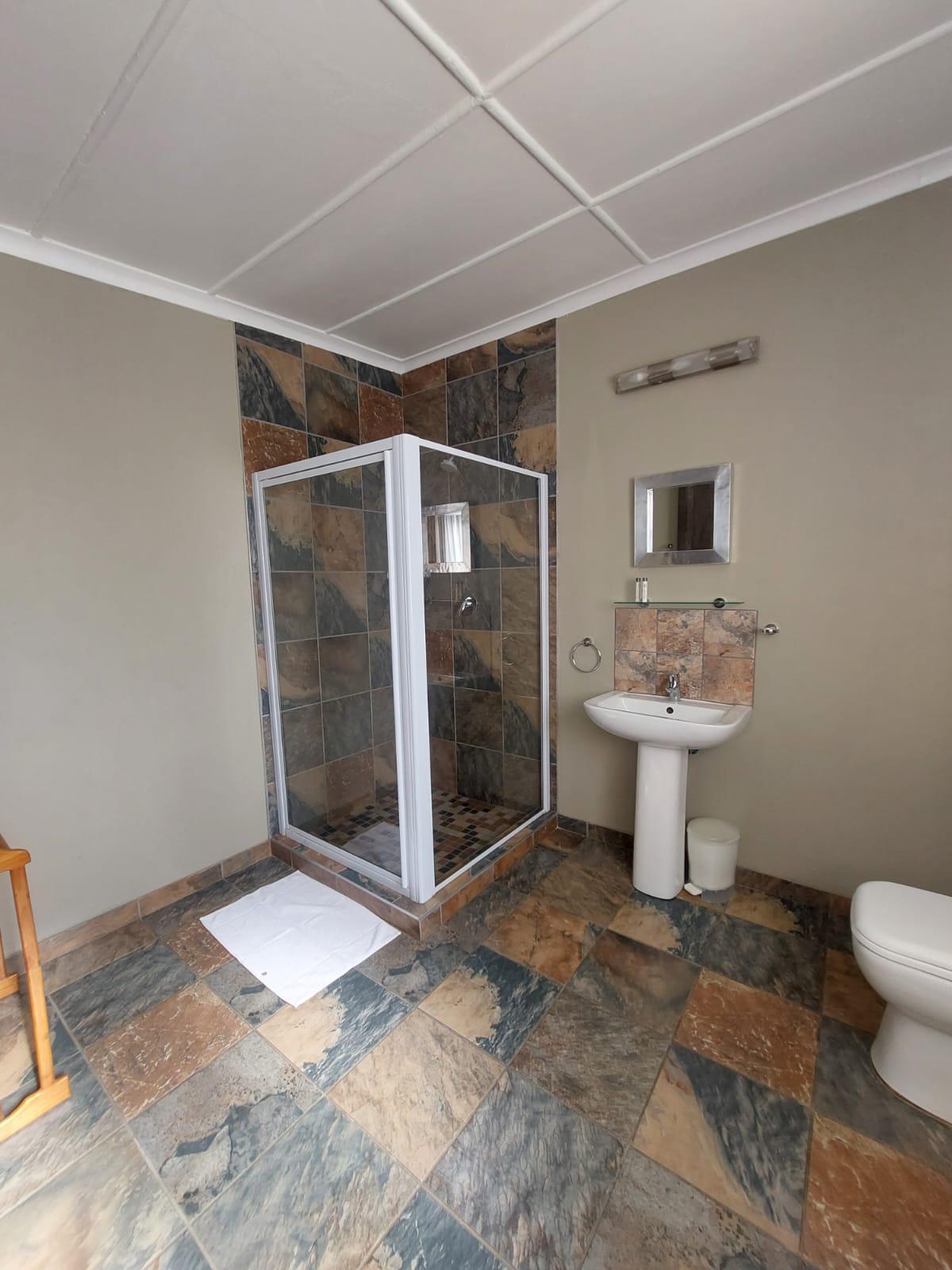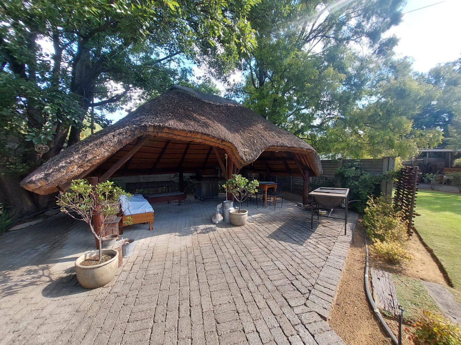 The property features two separate kitchens, allowing for efficient meal preparation and catering for guests. The dining area is spacious, providing ample space for guests to enjoy their meals together. For those looking to relax and enjoy the outdoors, a lapa with an outdoor braai area is available.