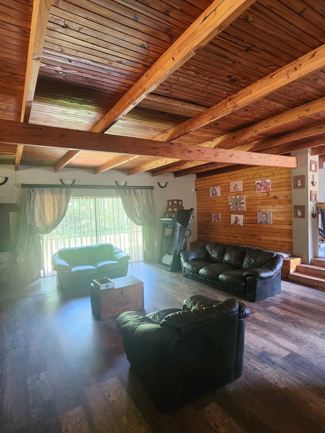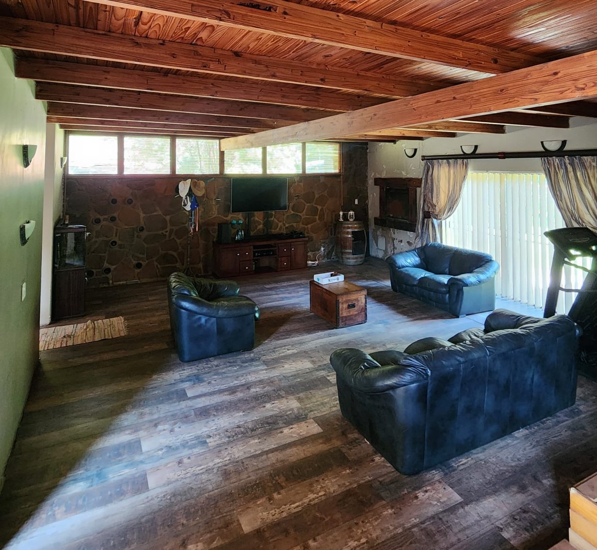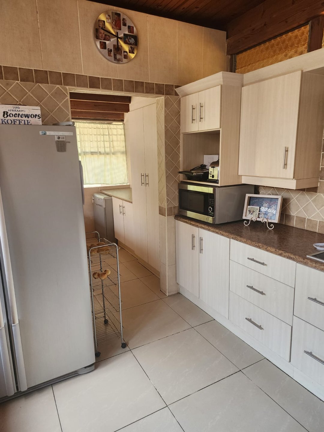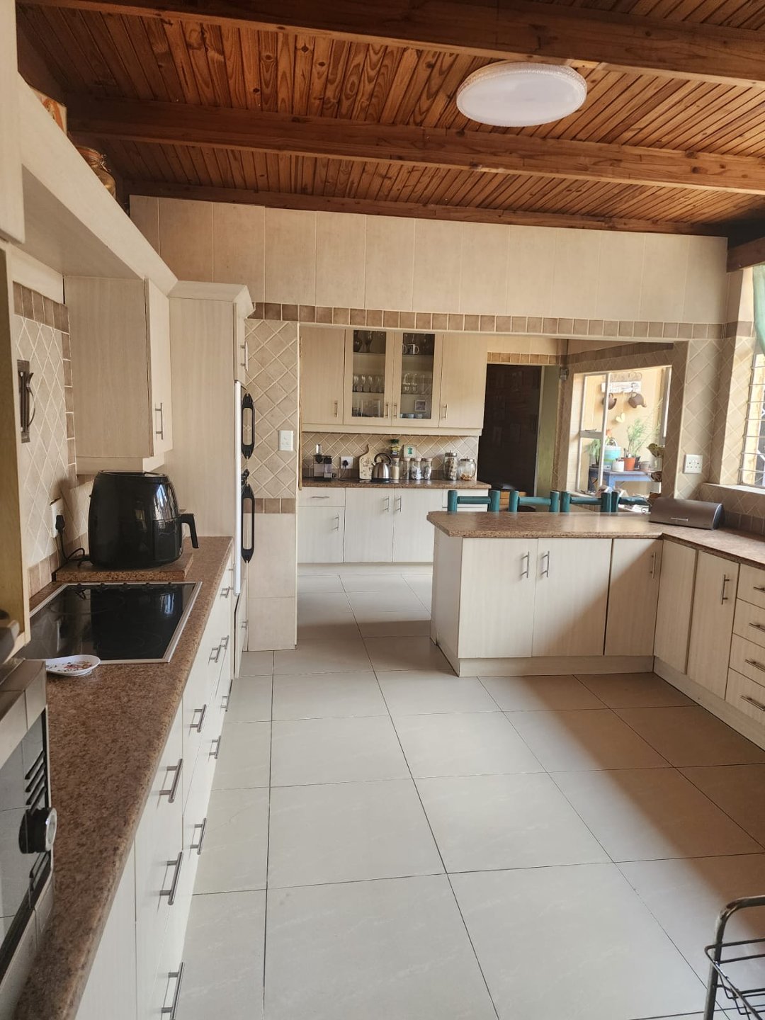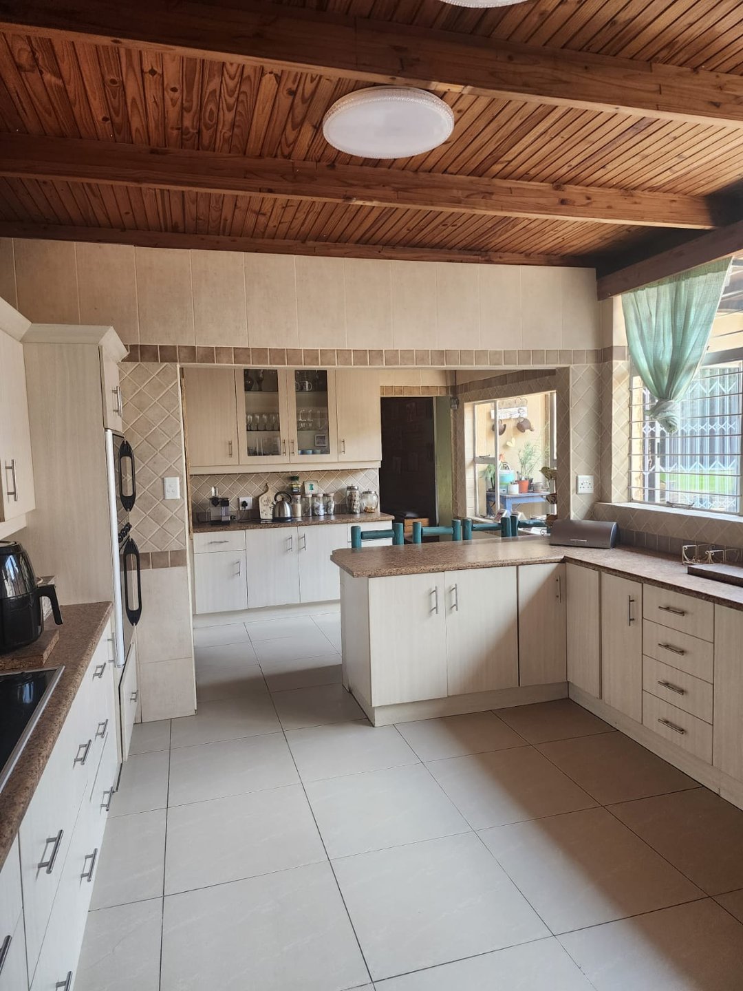 Alarm system. Double garages plus extra carport. Swimming pool. Lapa with built-in bar. Big garden with borehole and sprinkler system.