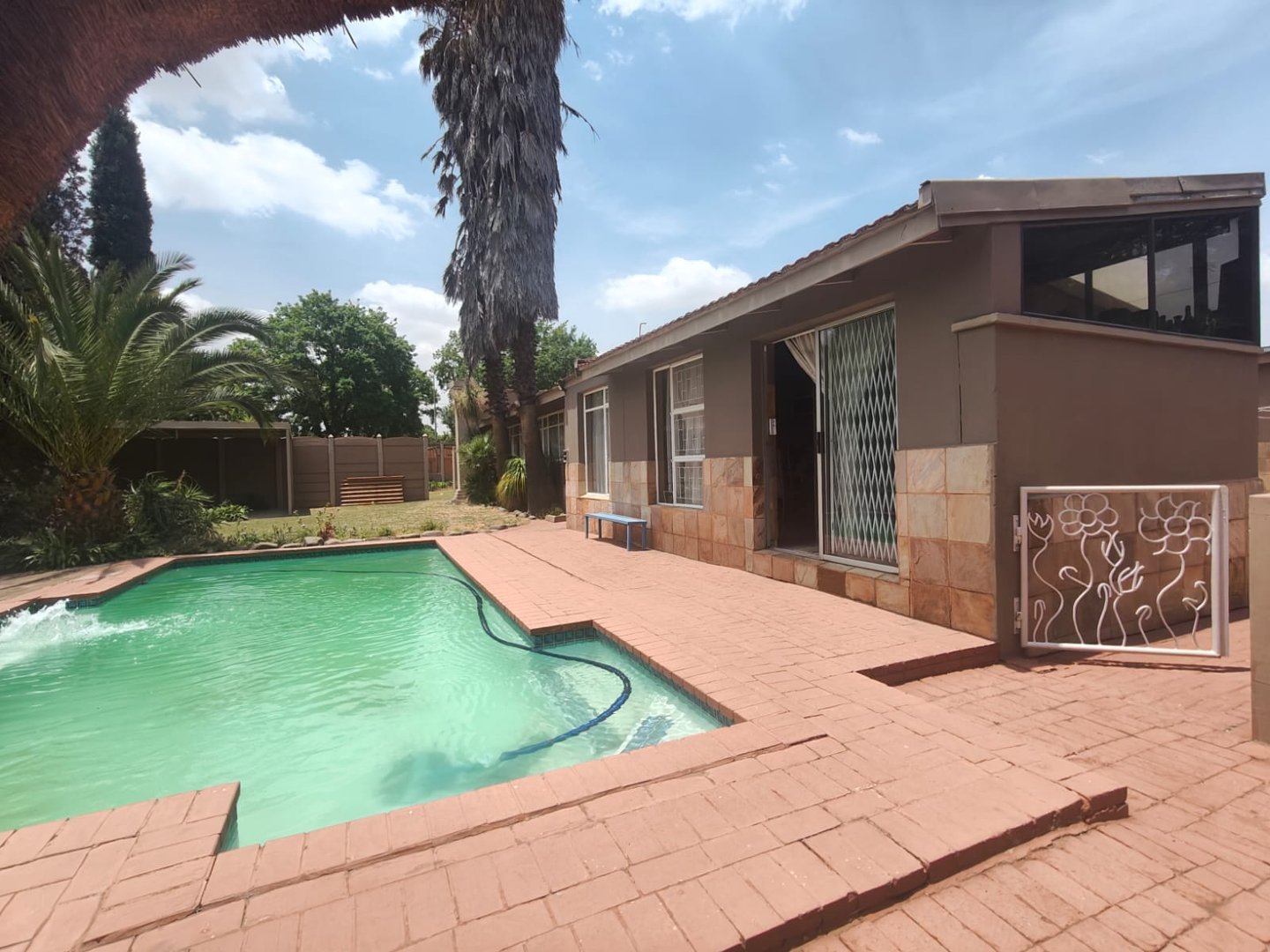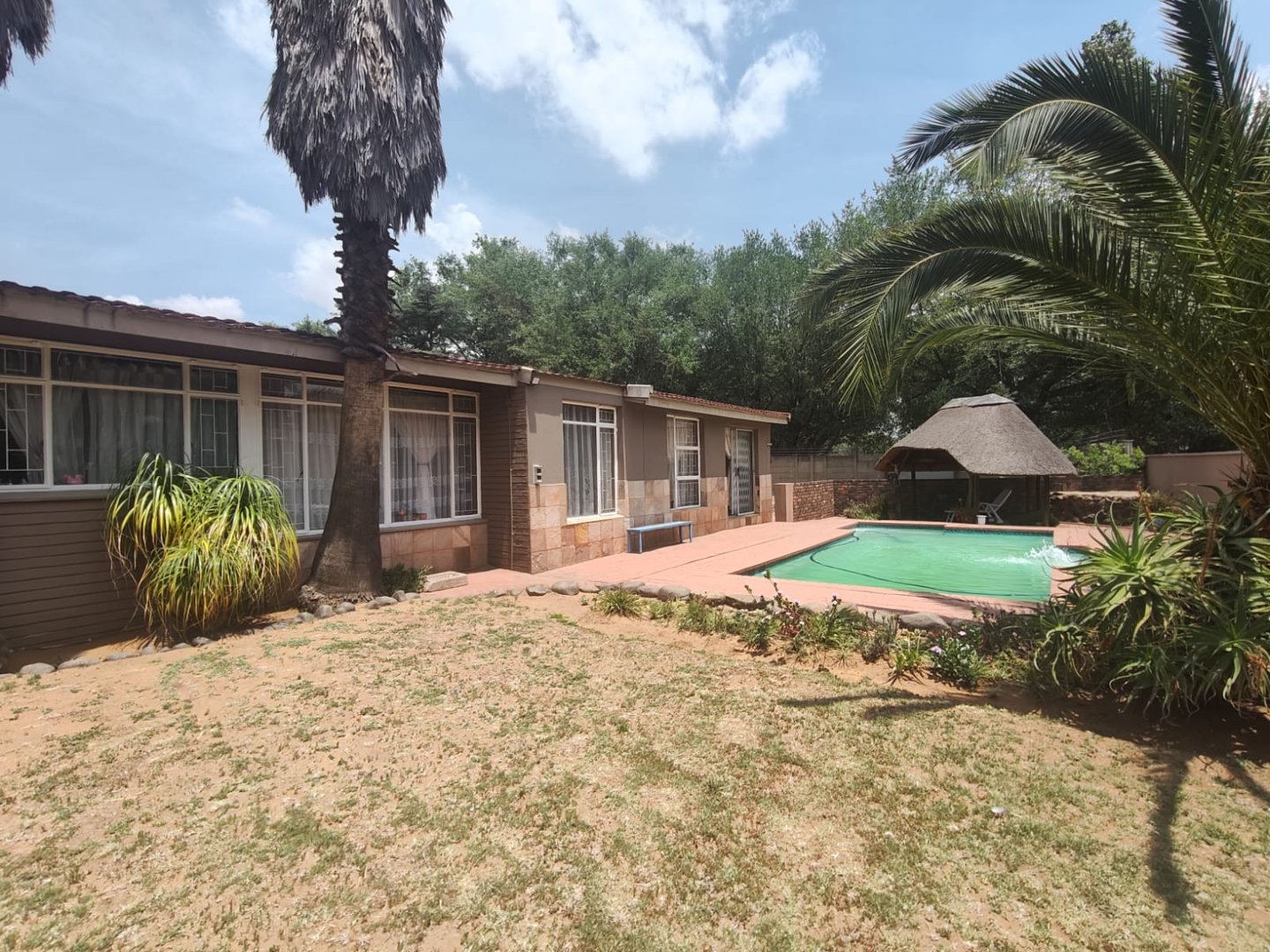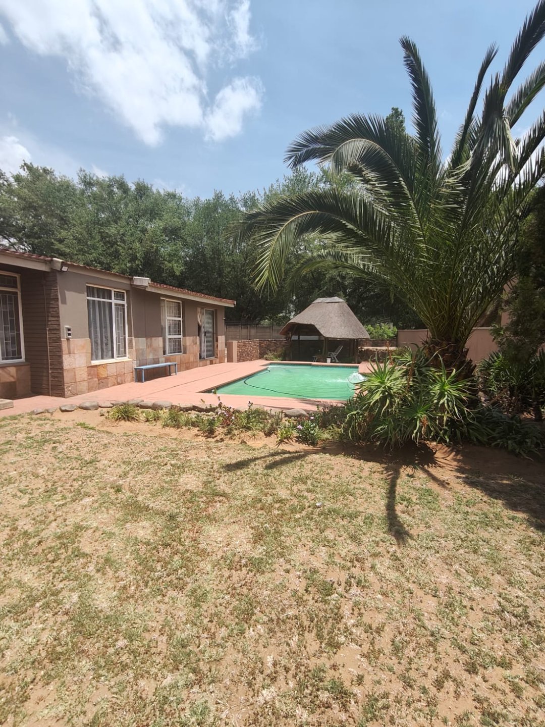 A cozy outdoor entertainment area and lapa that is suitable for any occasion with a sparkling pool for those hot summer days.