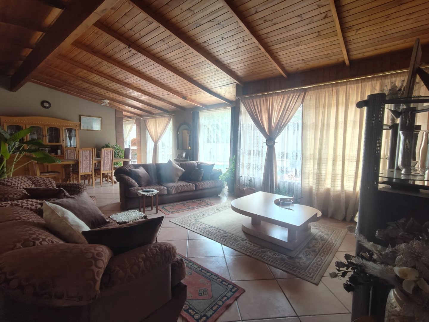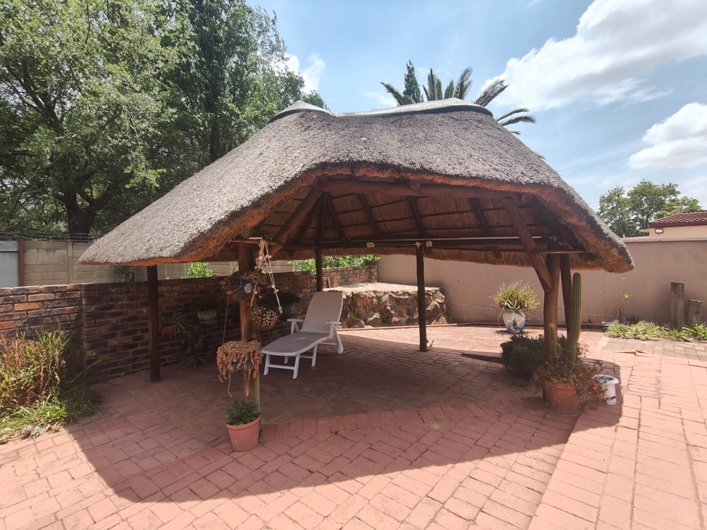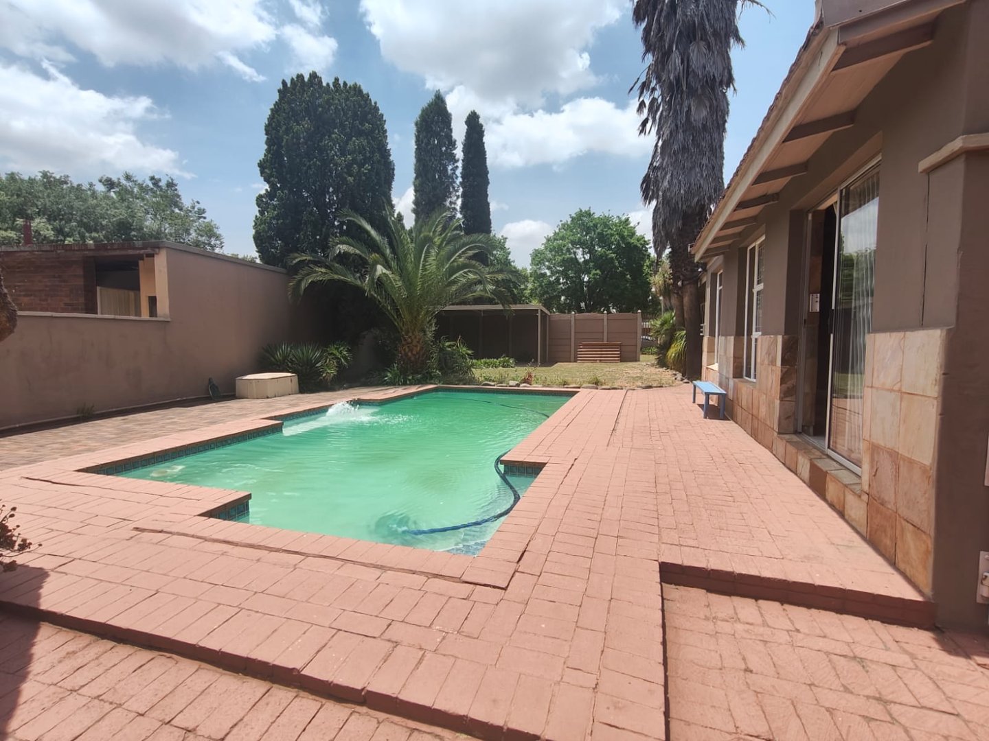 A cozy outdoor entertainment area and lapa that is suitable for any occasion with a sparkling pool for those hot summer days.