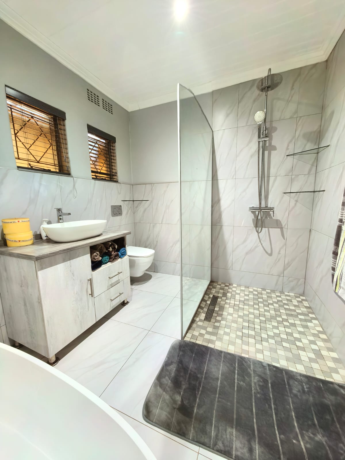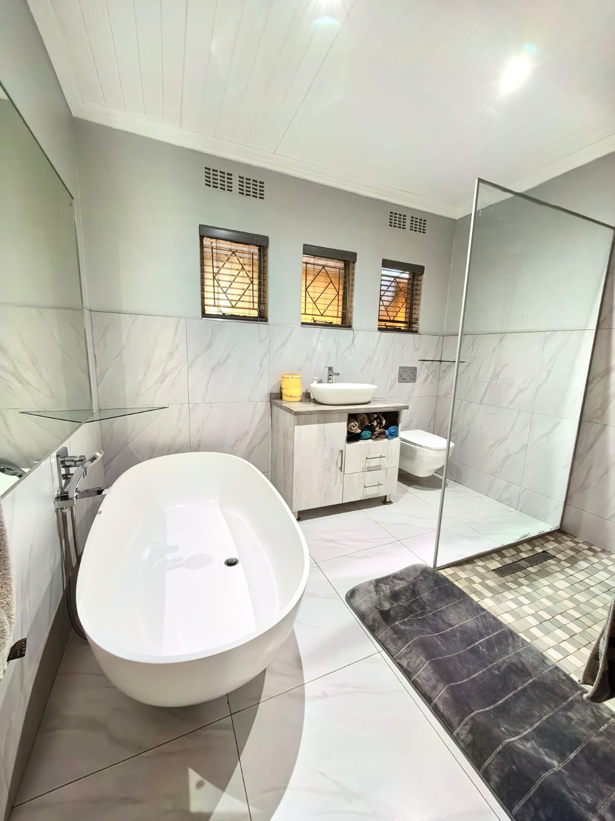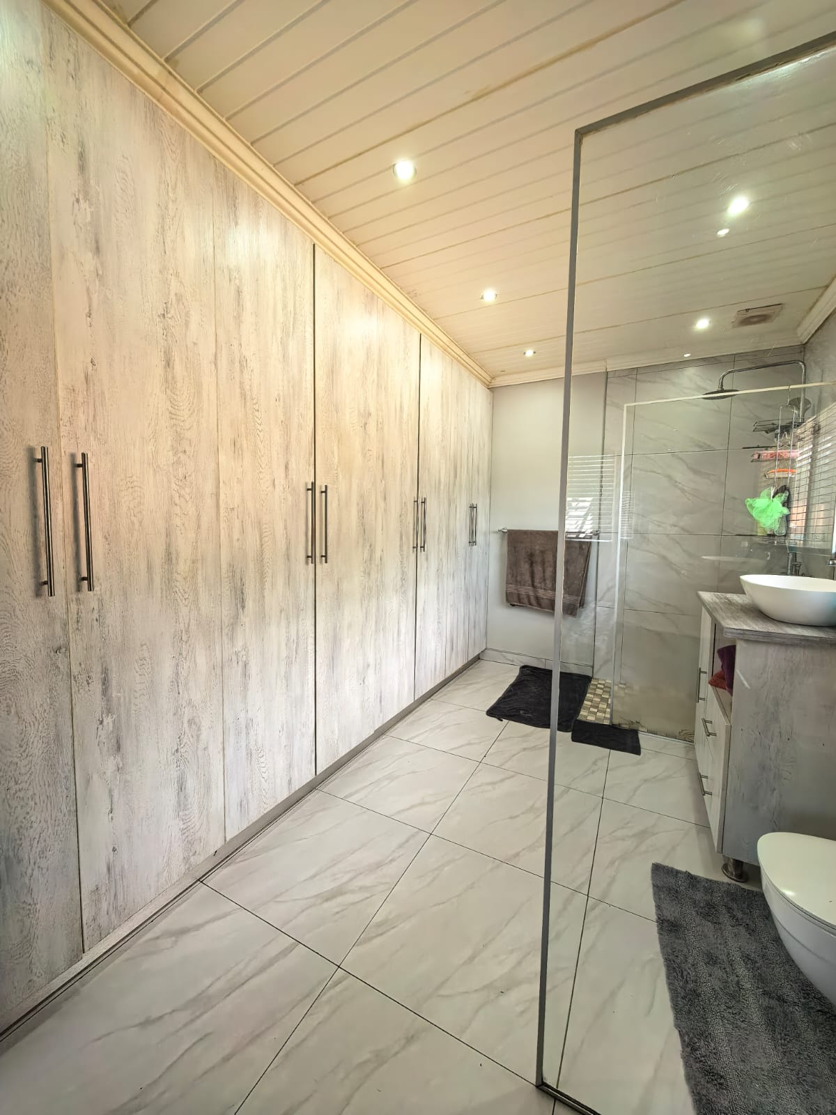 3 Bedrooms with build in closets. 2 Beautiful bathrooms from which one is en-suite. Main bedroom has ample closet space in the en-suite bathroom.