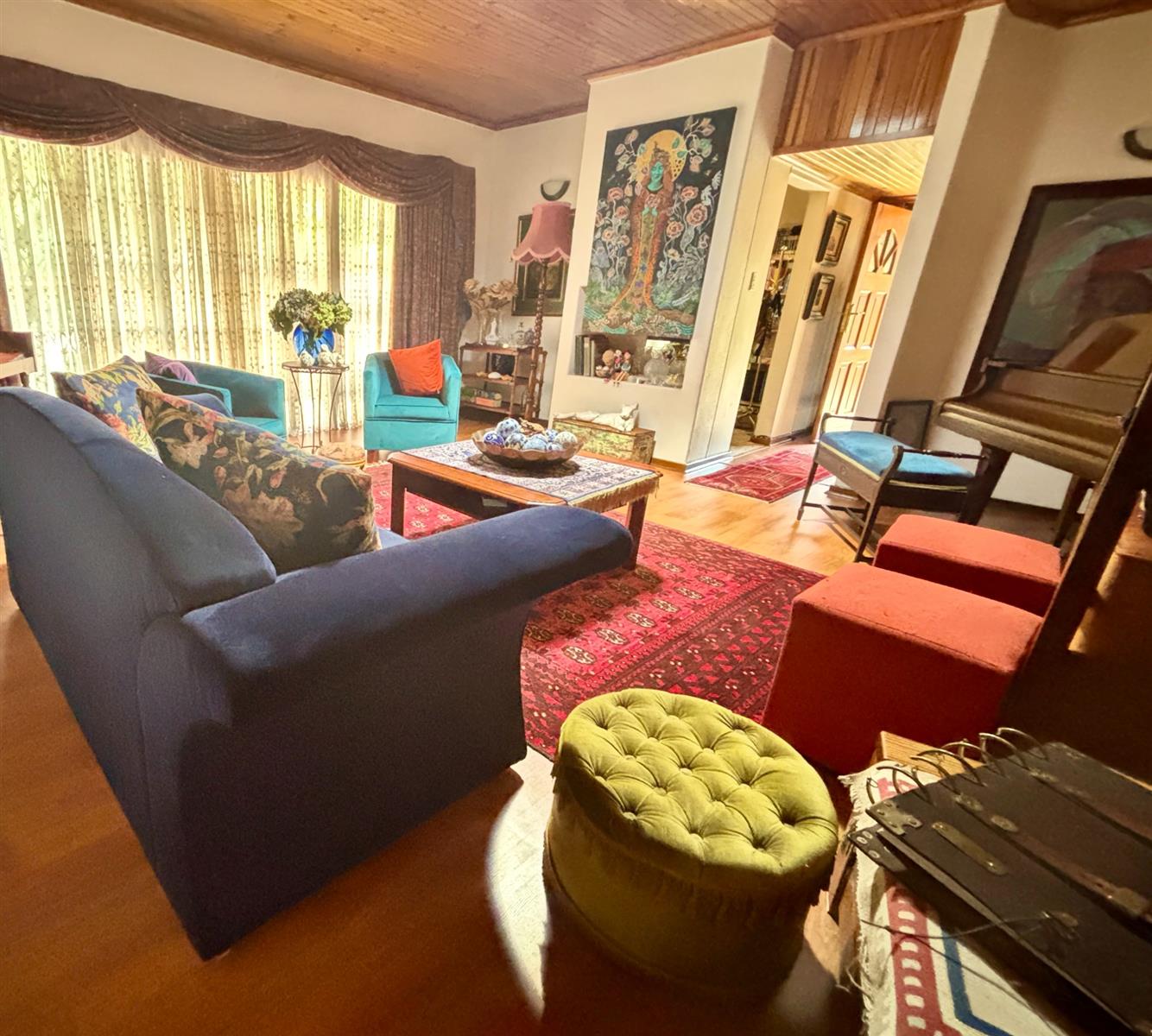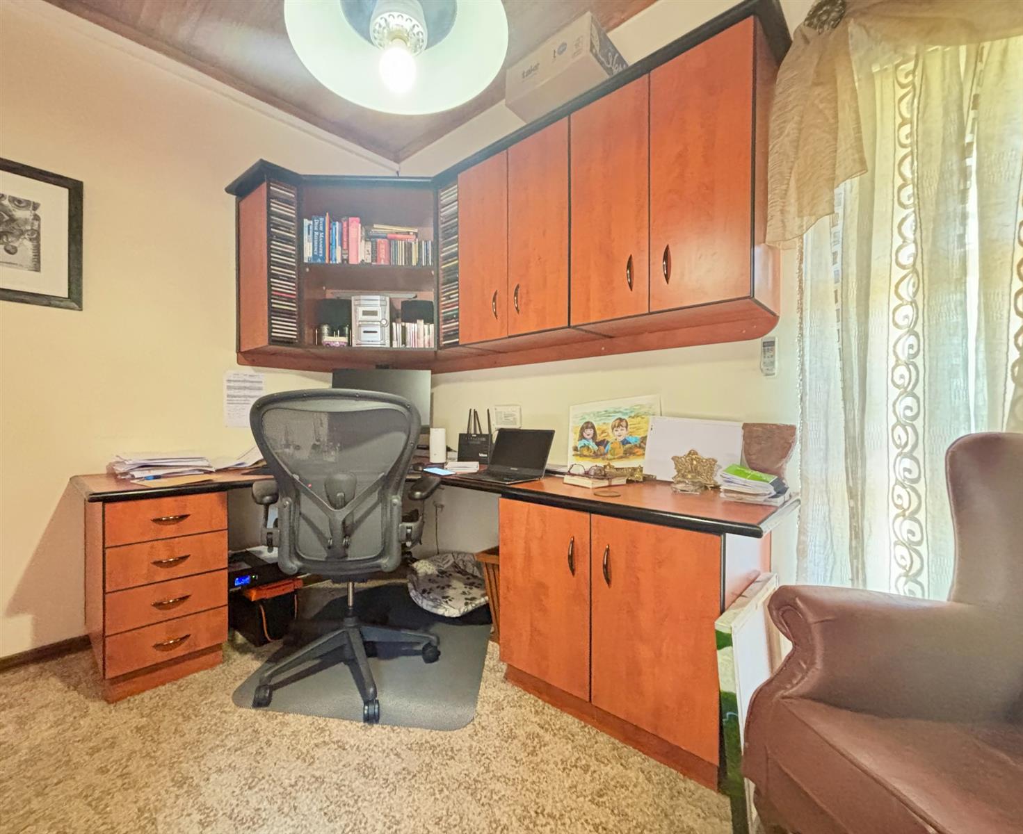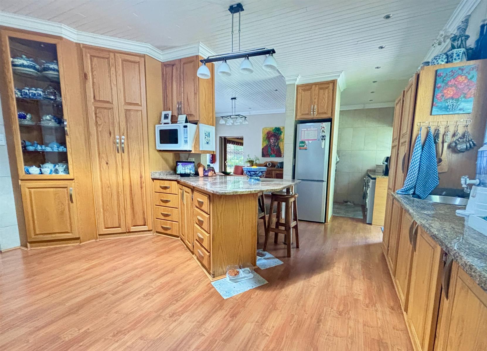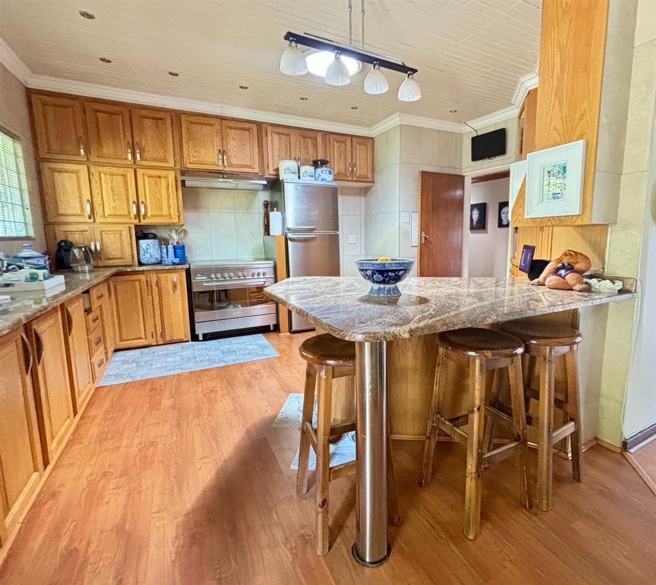 The heart of the home boasts a naturally lit living area complemented by tiled floors, carpets and laminated flooring. Enjoy the convenience of built-in cupboards and air conditioning throughout, creating a comfortable environment year-round. The kitchen and dining areas are designed for functionality, perfect for family gatherings and entertaining guests.