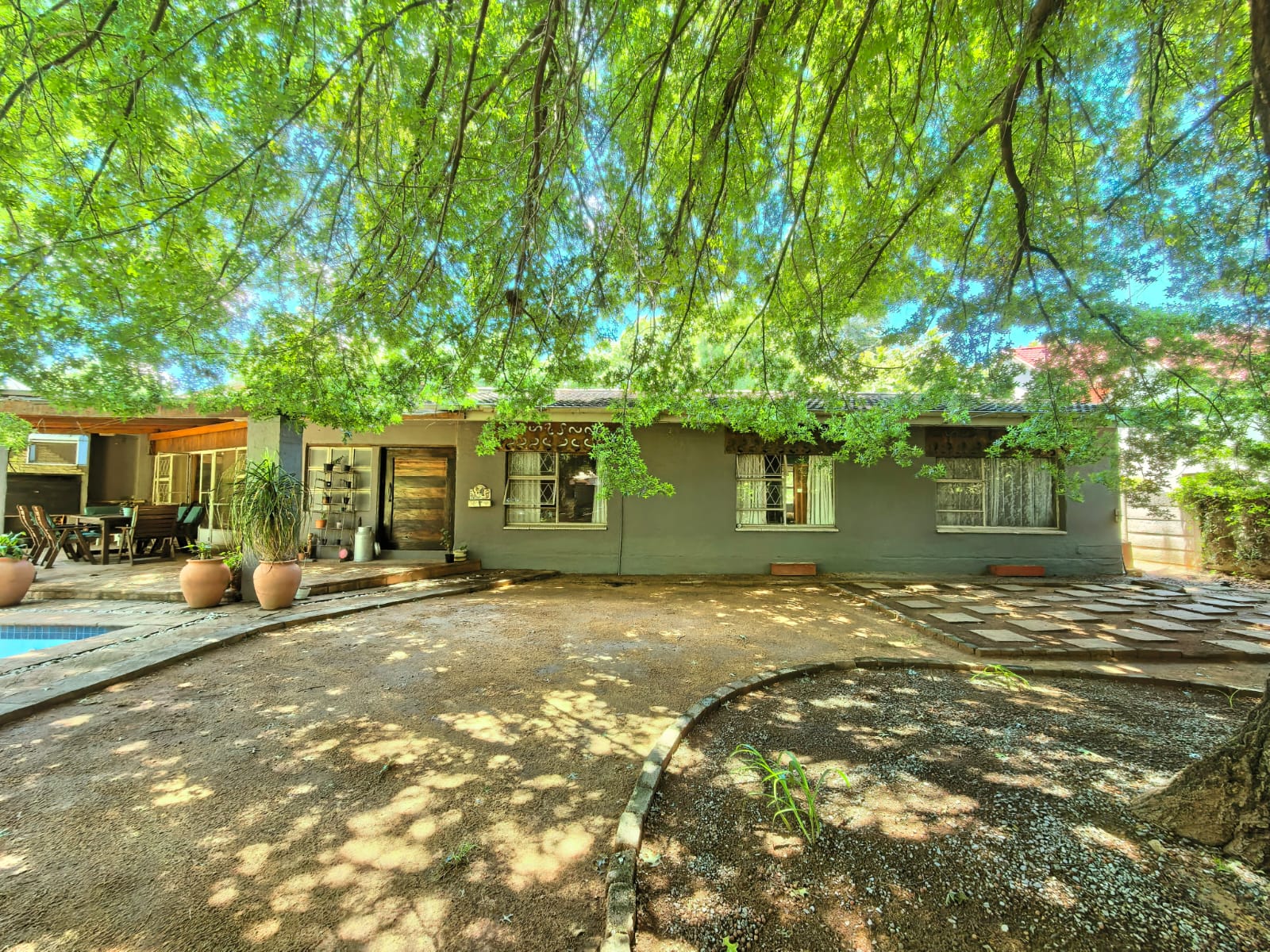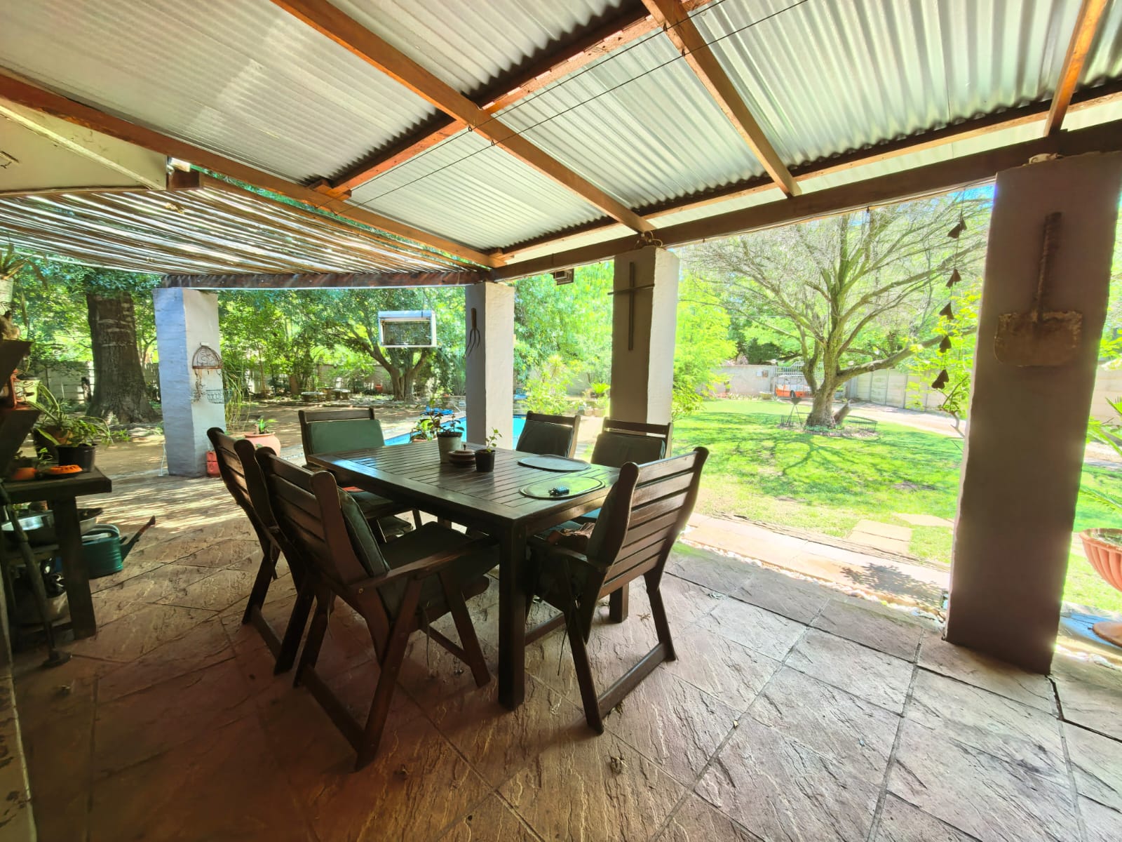 The patio has a built-in braai and is overlooking the beautiful garden with sprinkler system and the swimming pool.