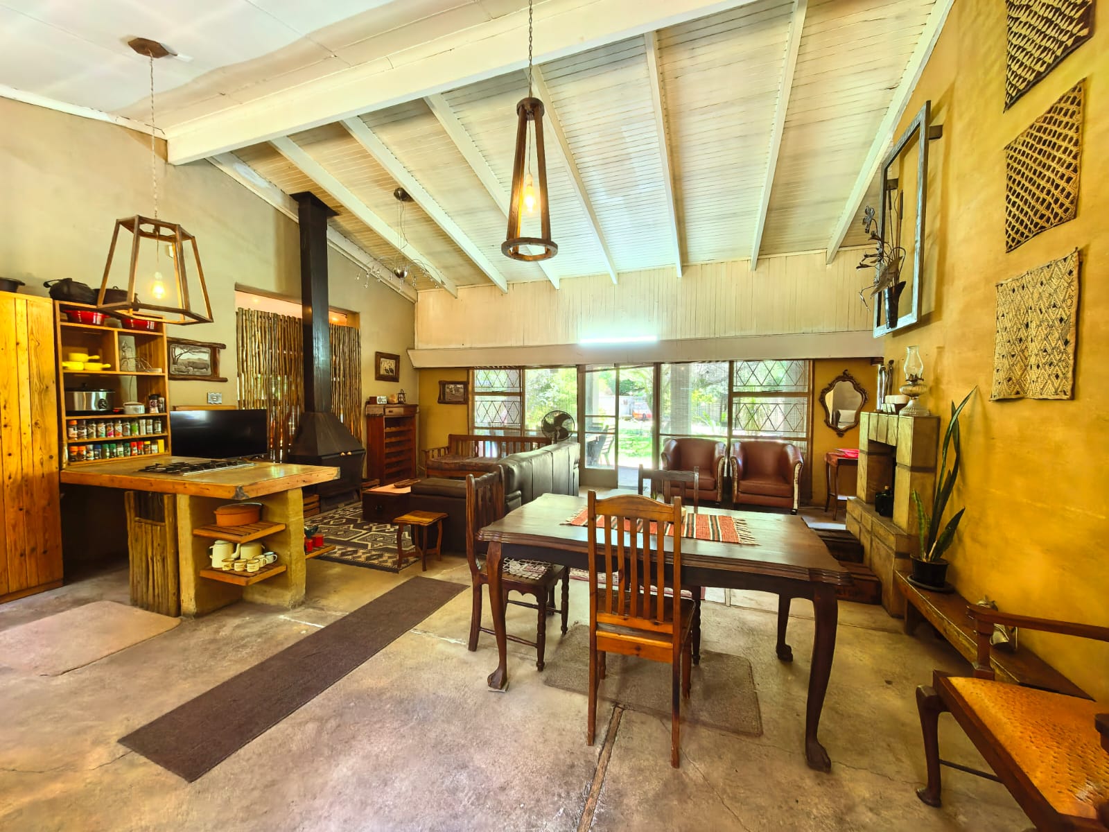 Spacious open plan living areas with a gas plus wood fireplace. Lovely kitchen with ample cupboard space, air conditioning, gas stove top, separate scullery and laundry.