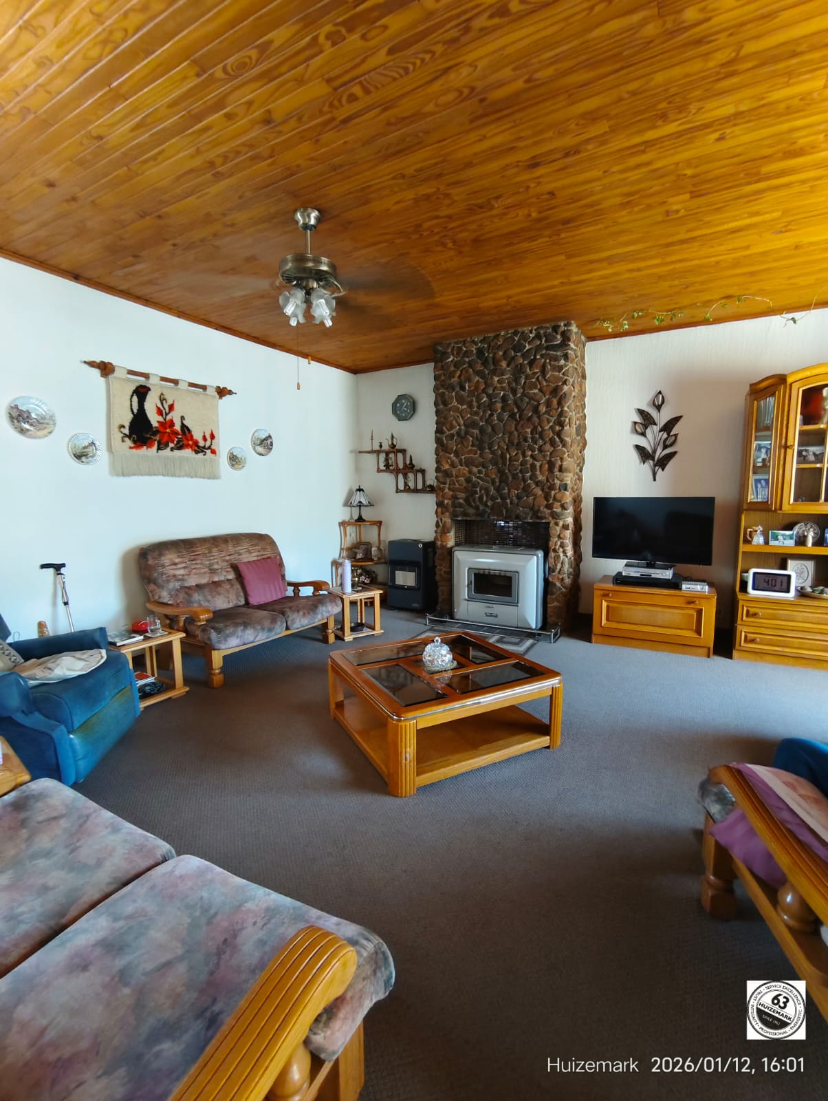 The home welcomes you with warm and inviting living areas, complete with a cozy fireplace ideal for relaxed family evenings. The charming wooden kitchen features a gas stove and ample cupboard space, while the installed solar system ensures secure and reliable electricity.