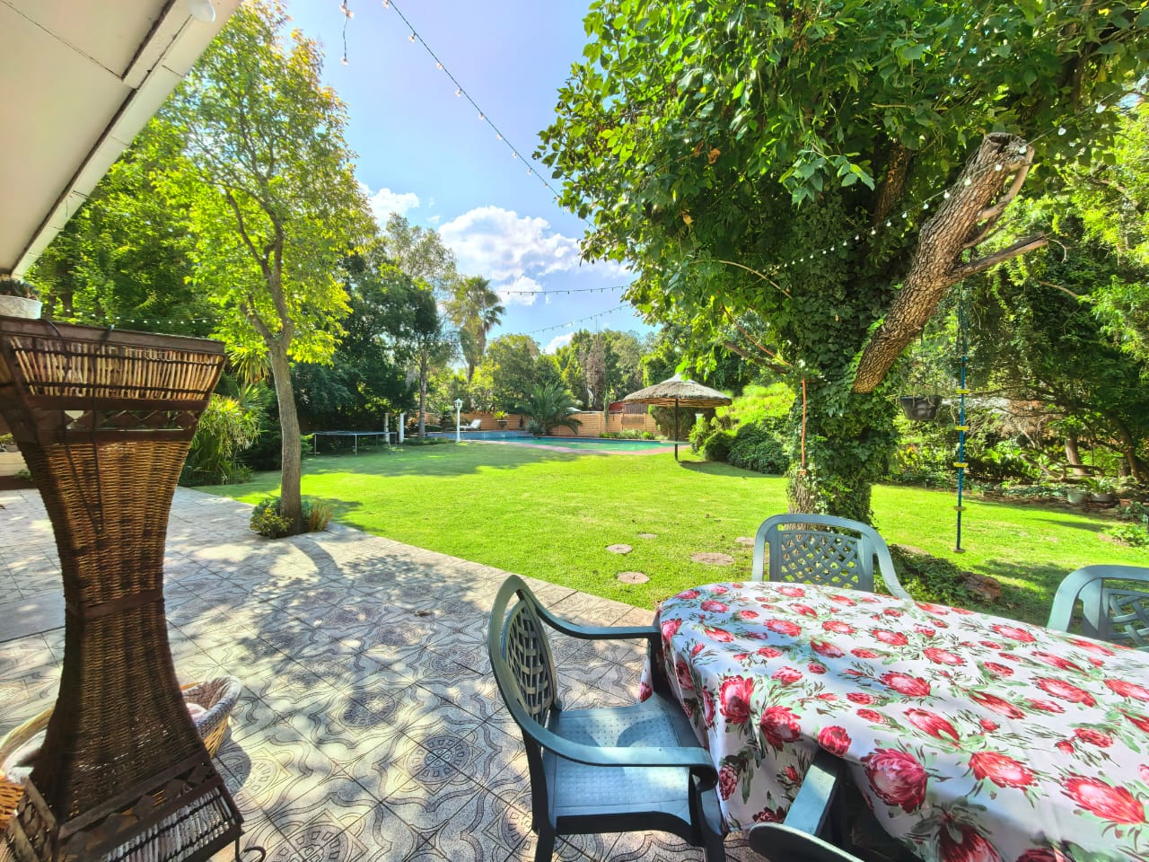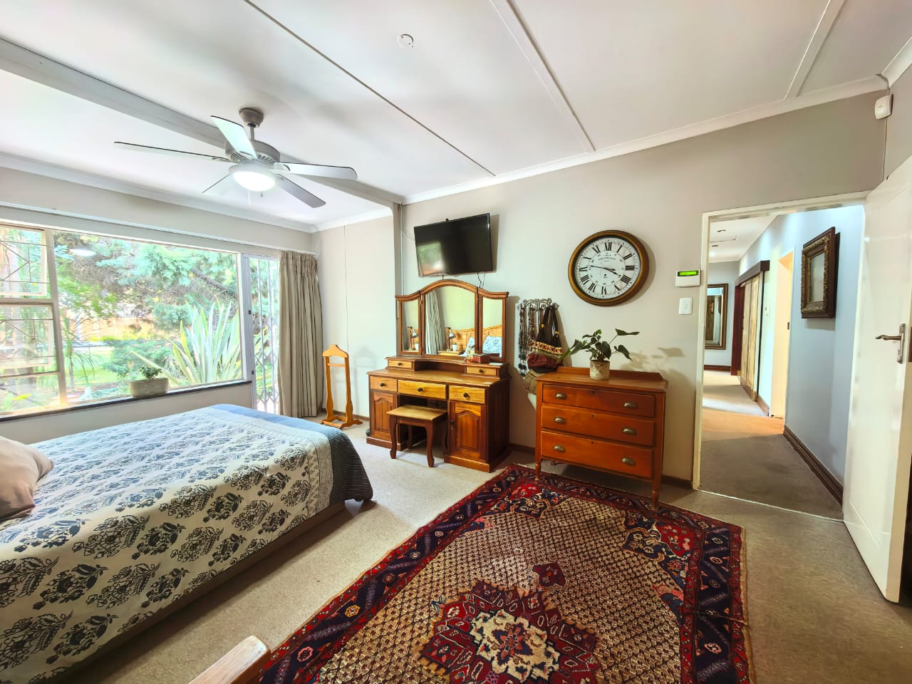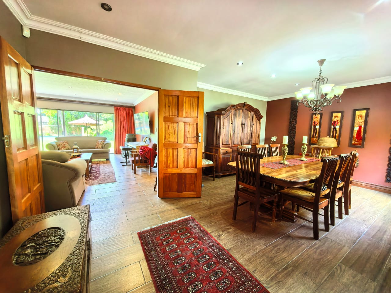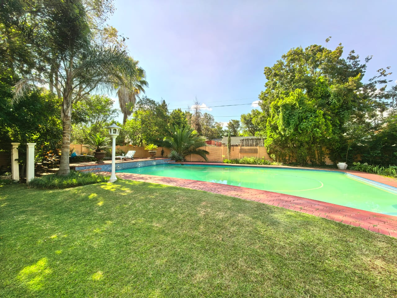The property has a expansive yard, featuring a large swimming pool, borehole, and automated sprinkler system, ensuring a lush and vibrant outdoor space perfect for alfresco dining and entertainment. Secure parking is provided by double garages and three carports, offering ample space for vehicles and storage.