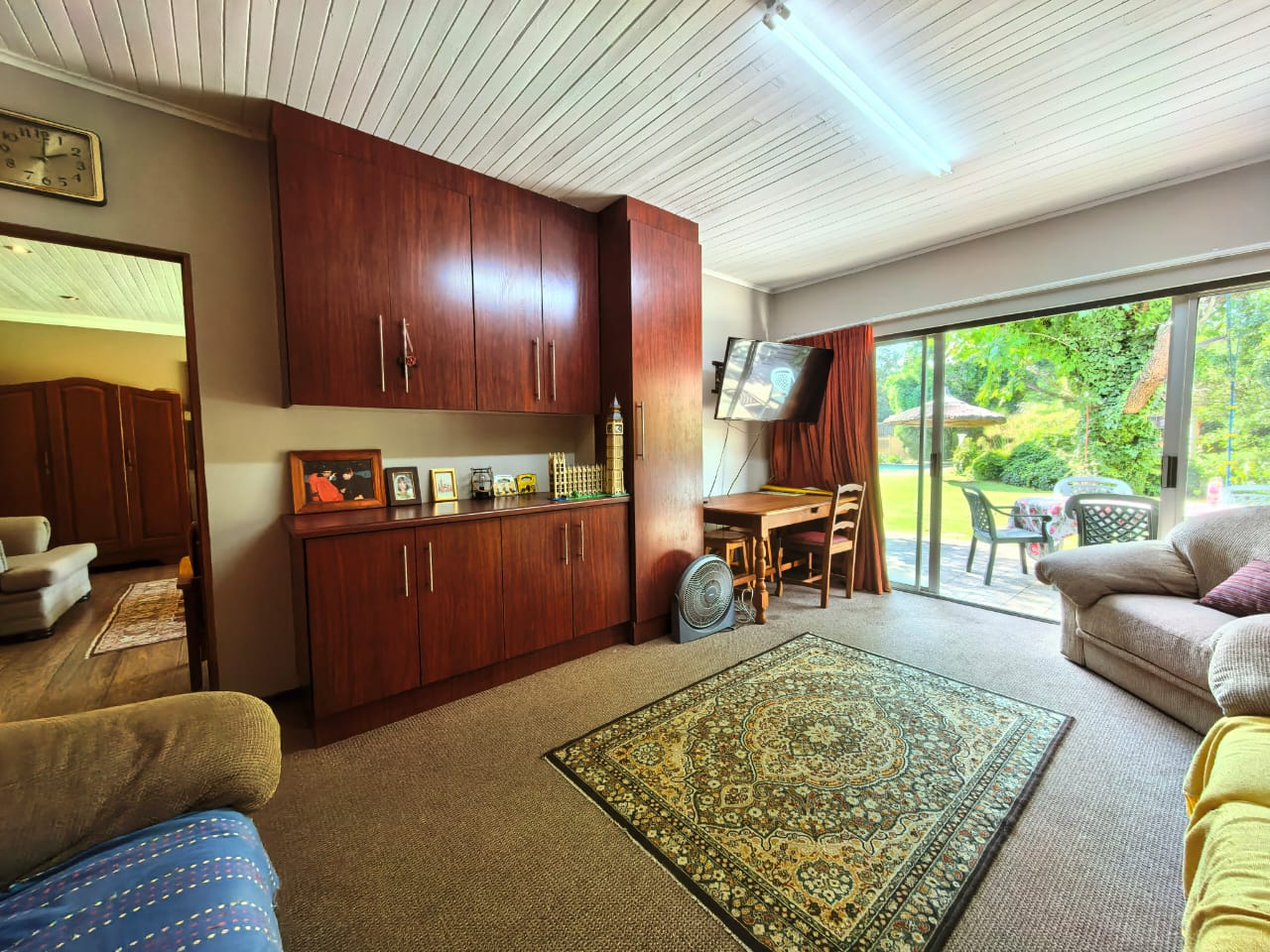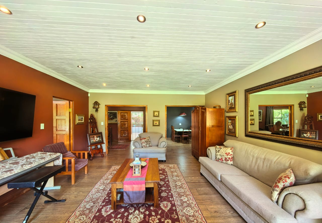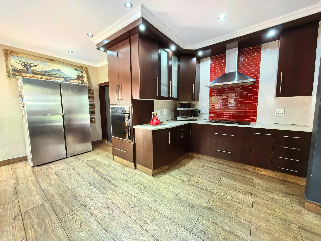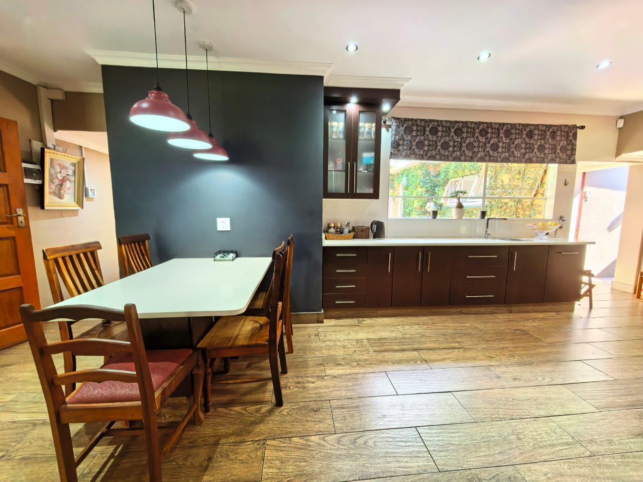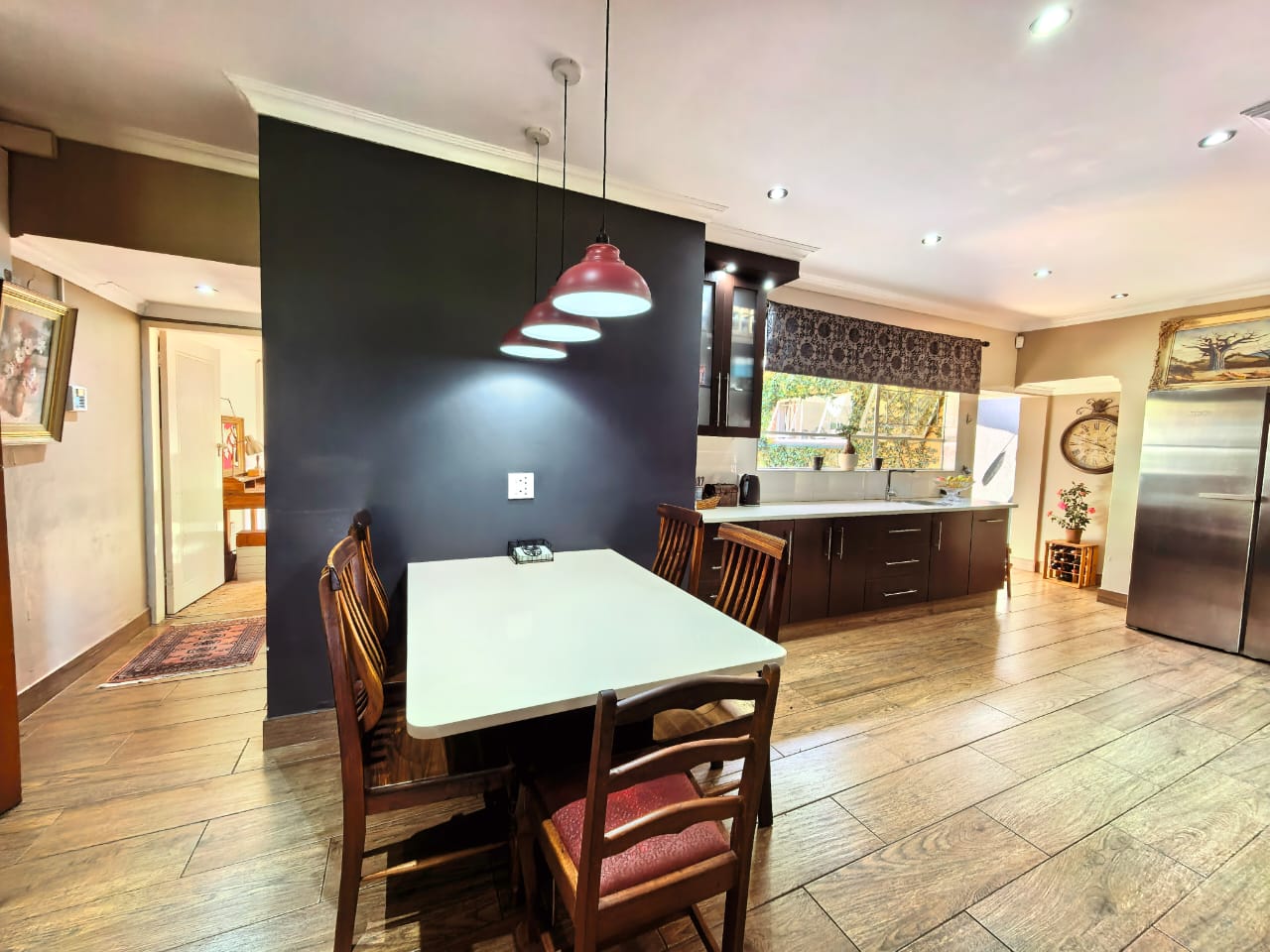 The property has a expansive yard, featuring a large swimming pool, borehole, and automated sprinkler system, ensuring a lush and vibrant outdoor space perfect for alfresco dining and entertainment. Secure parking is provided by double garages and three carports, offering ample space for vehicles and storage.