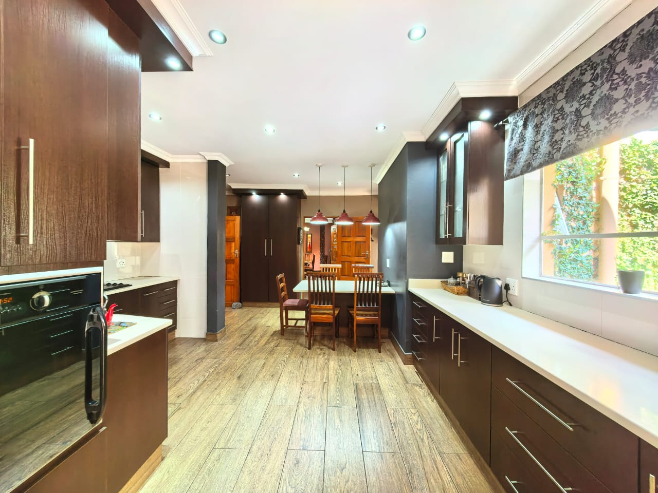 The beautifully appointed home offers a spacious lounge, dining room, and TV room, providing ample space for relaxation and entertainment. The heart of the home is a stunning kitchen, equipped with sleek granite countertops, a cosy breakfast nook, perfect for starting the day. Separate laundry and scullery. Two generously sized studies offer flexibility for remote work or home schooling.