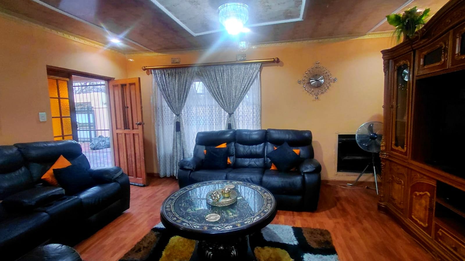As you enter the home, you are welcomed by a bright and neat interior featuring tiled floors throughout, making it both stylish and low-maintenance—perfect for busy, first-time homeowners. The house offers three spacious bedrooms; all fitted with built-in cupboards to give you plenty of storage and comfort. The 1.5 bathrooms include a main bathroom with a bath and basin, as well as a separate toilet for added convenience.
