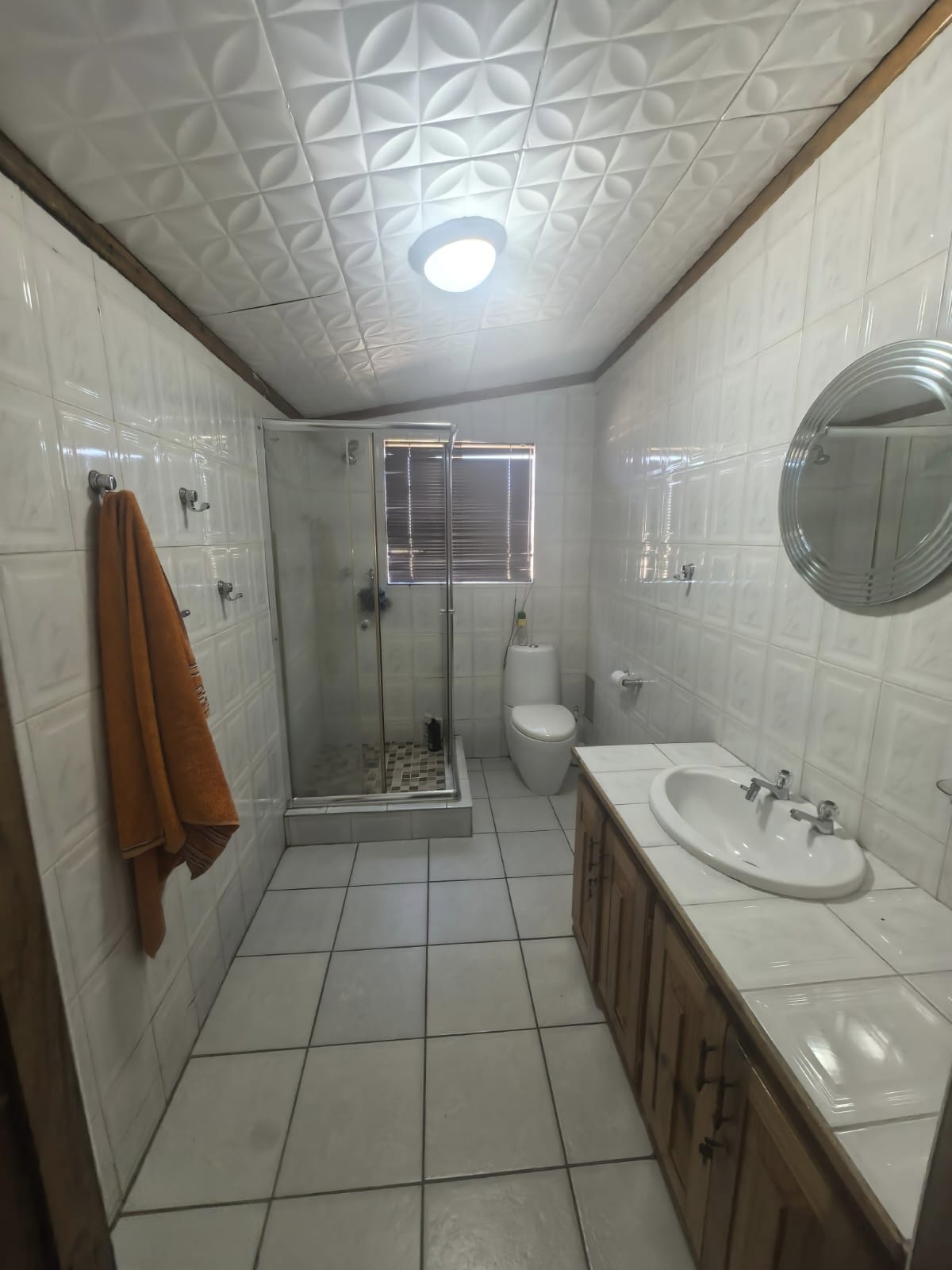 The property features three well-appointed bedrooms, including an en-suite with a full bathroom, ensuring privacy and convenience. Each bedroom is fitted with built-in cupboards, providing ample storage space.