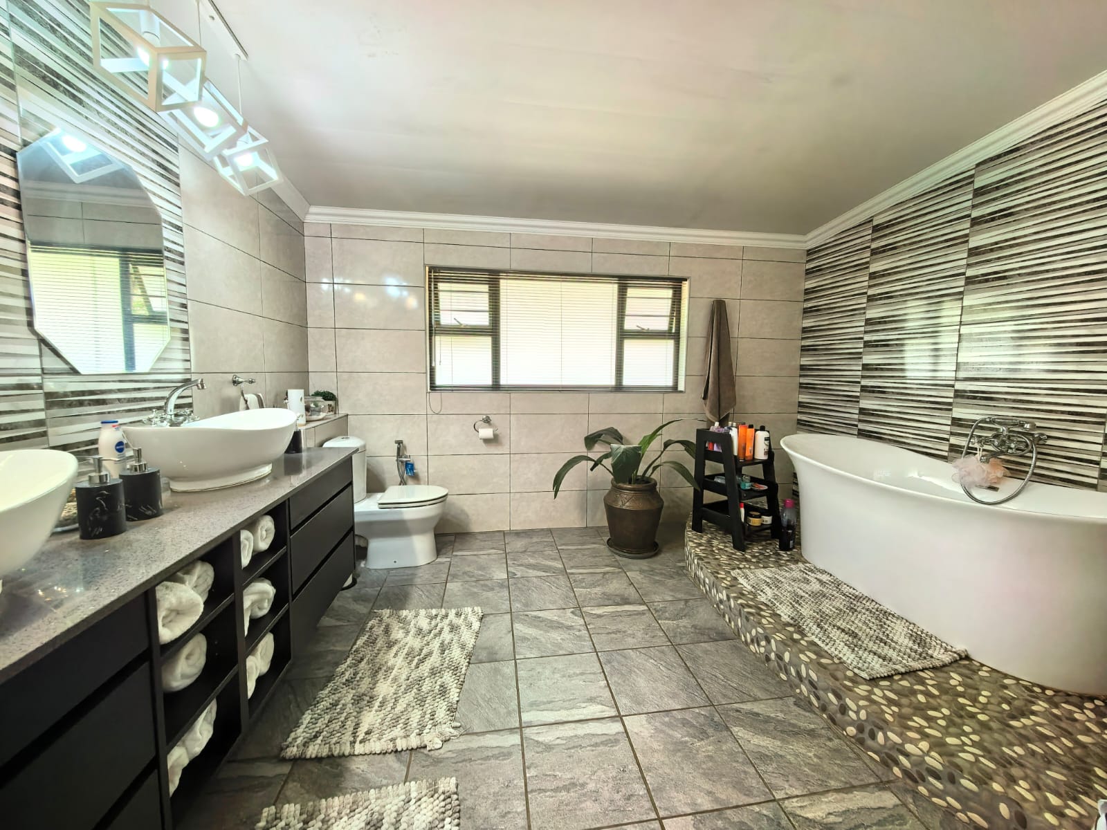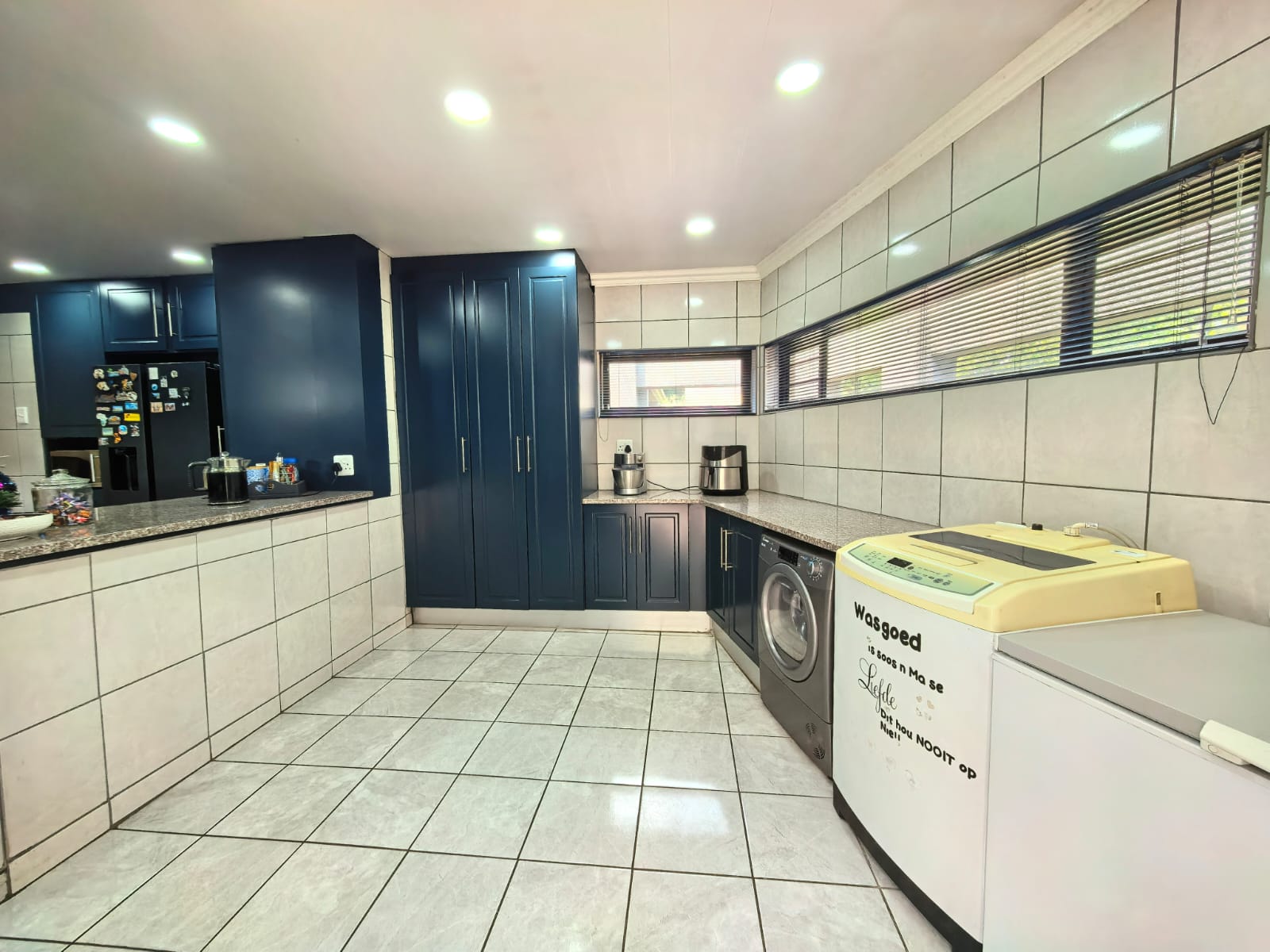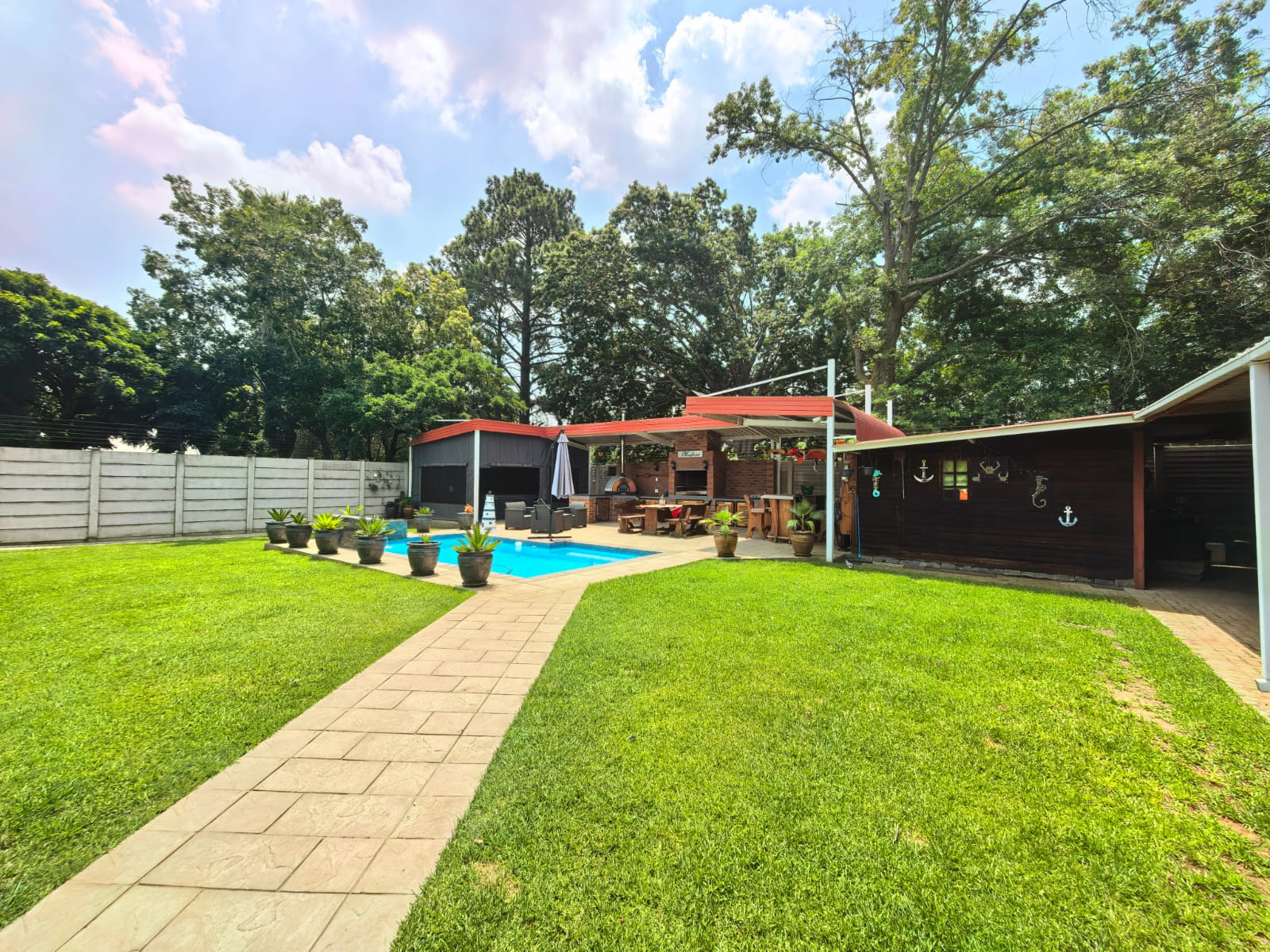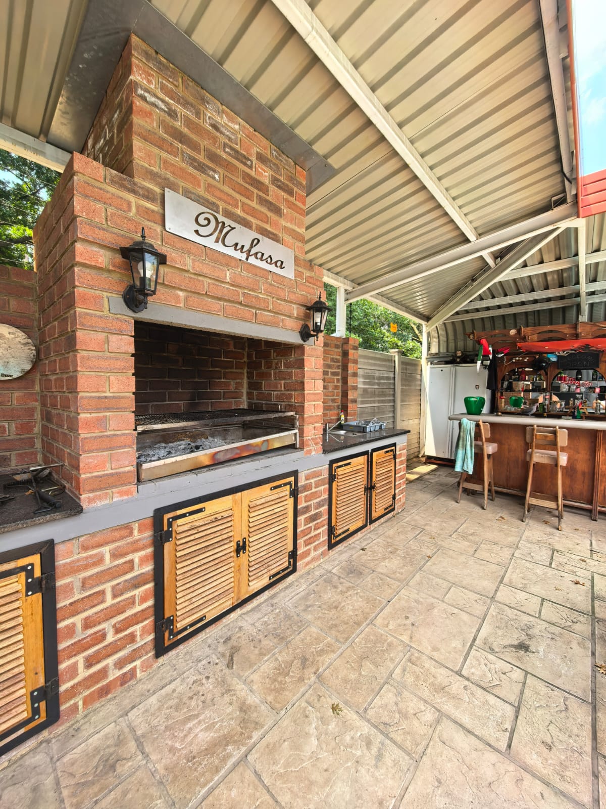 Stunning entertainment area with a built-in braai, built-in bar, pizza oven, a 10 seater jacuzzi, and a lovely sparkling swimming pool. Big yard with a borehole and sprinkler system.
