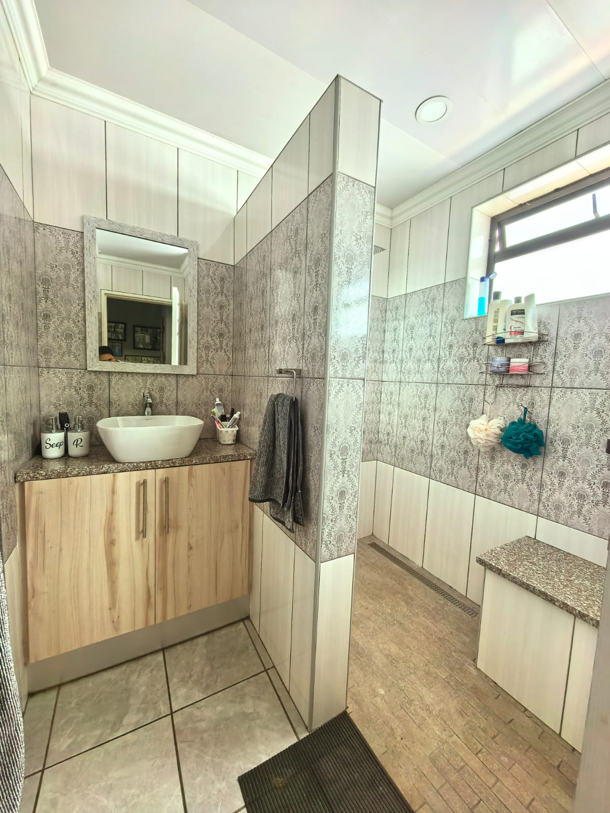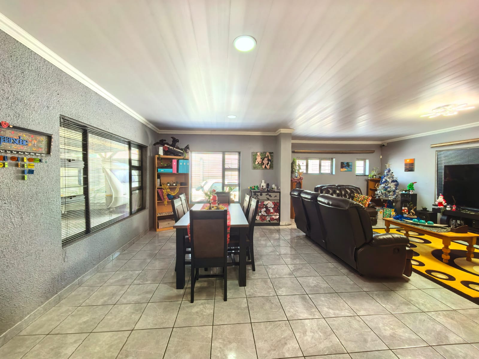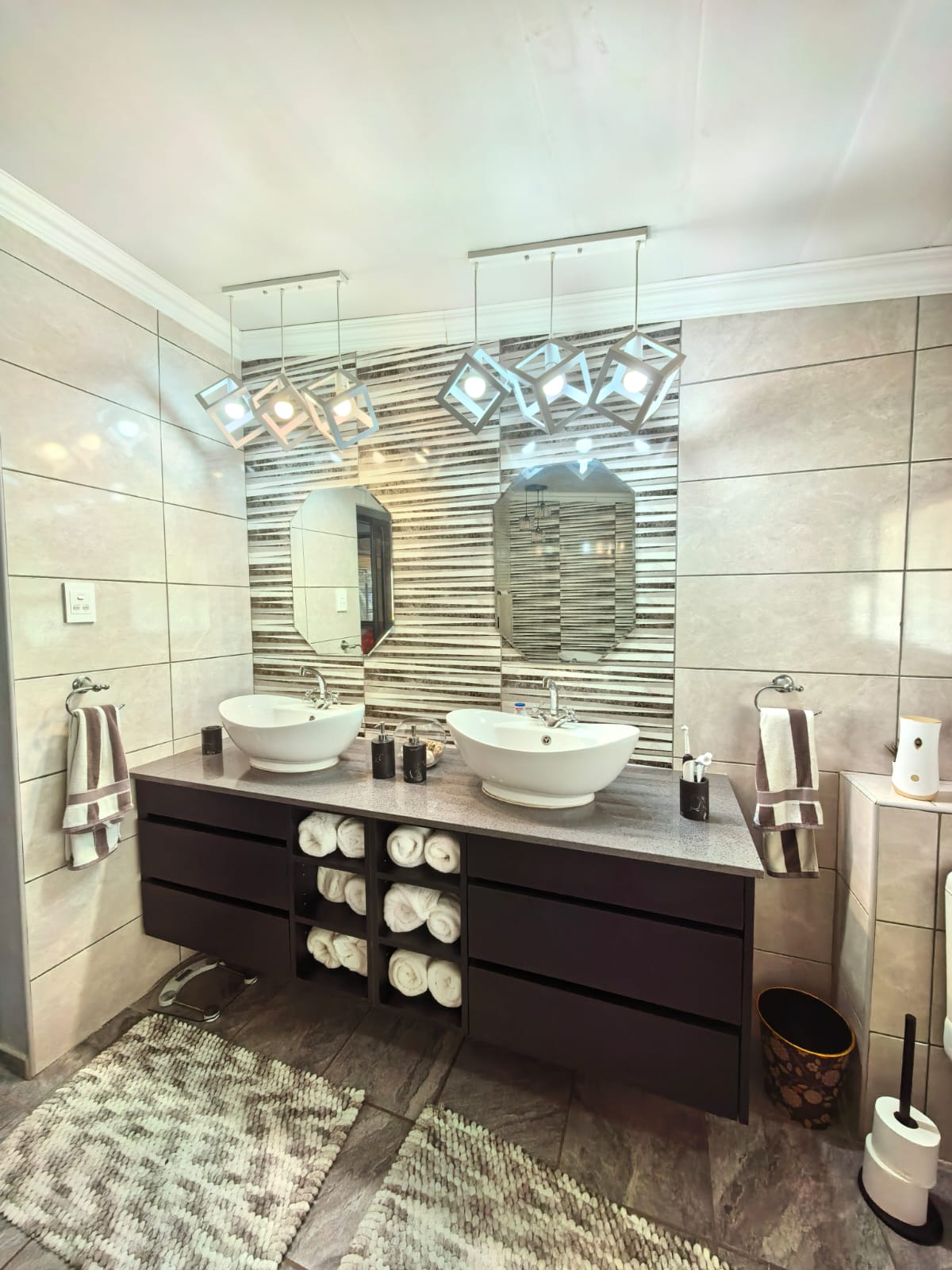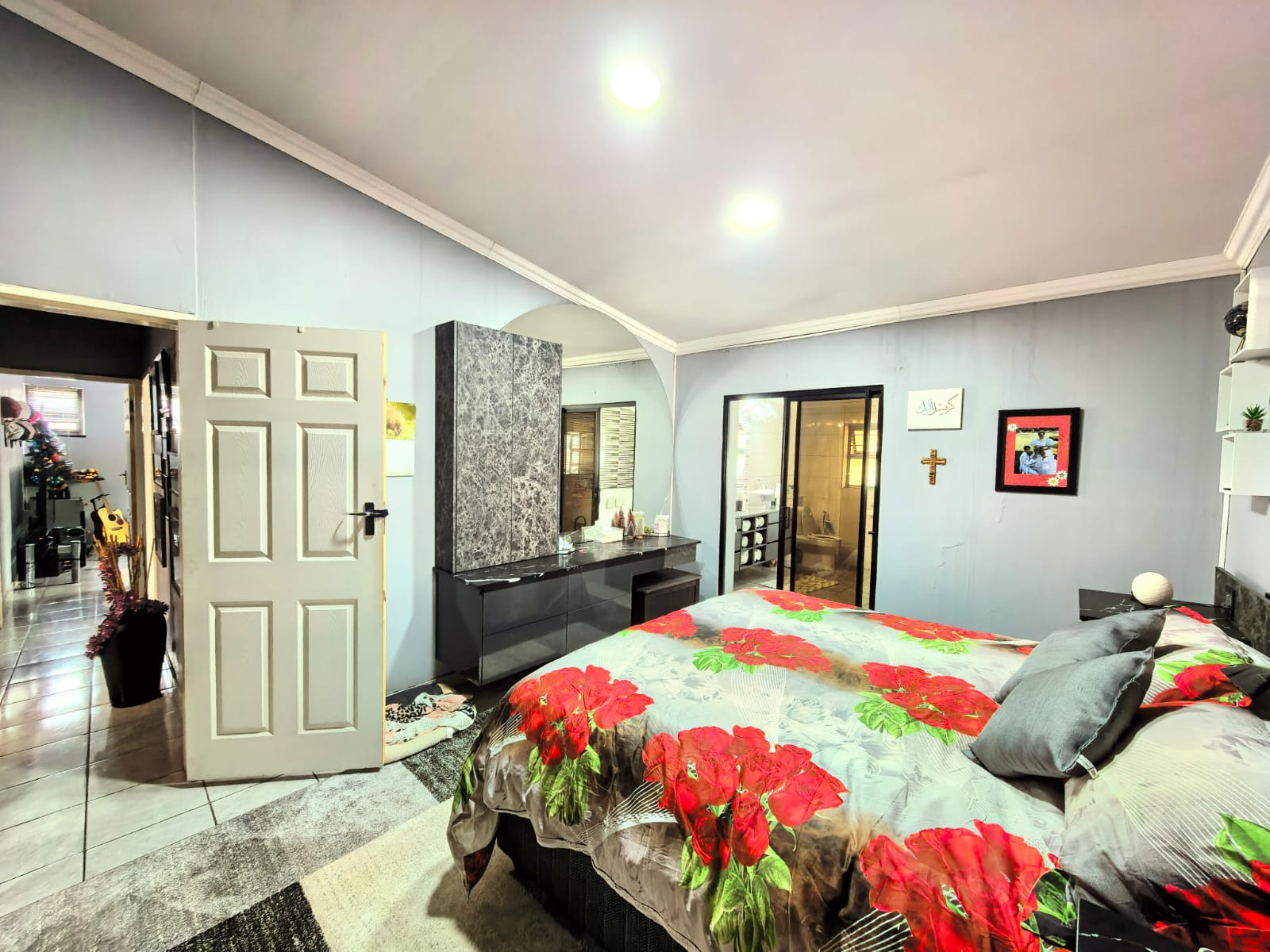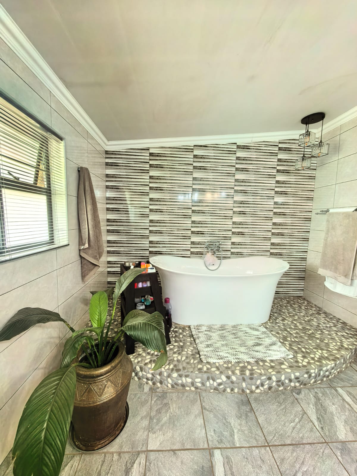 Stunning entertainment area with a built-in braai, built-in bar, pizza oven, a 10 seater jacuzzi, and a lovely sparkling swimming pool. Big yard with a borehole and sprinkler system.