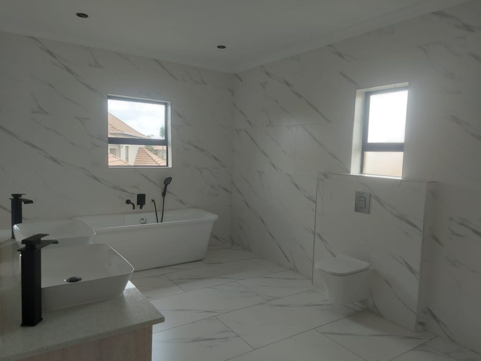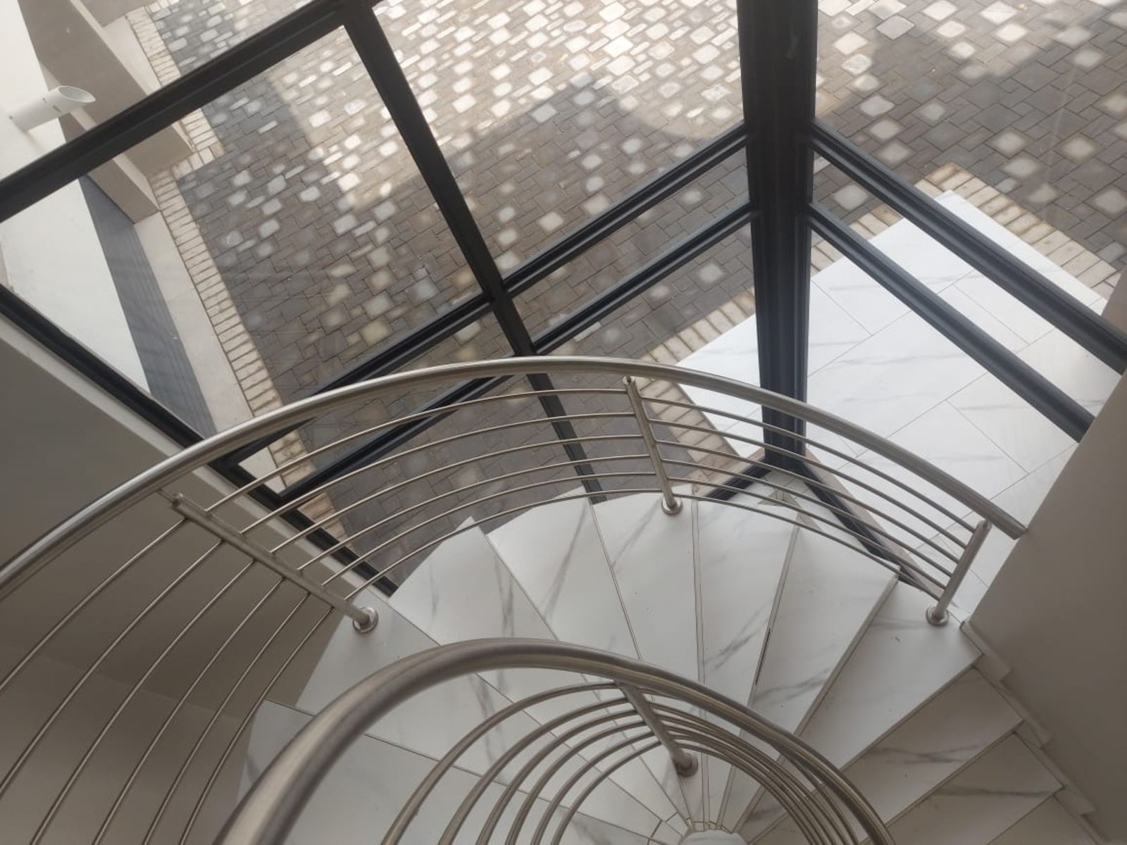 This modern masterpiece boasts six luxurious en-suite bedrooms, including a grand master suite with a walk-in closet and a beautifully finished bathroom leading to a private balcony with breathtaking estate views. The sixth bedroom serves as staff accommodation with its own en-suite. Designed for both comfort and functionality.