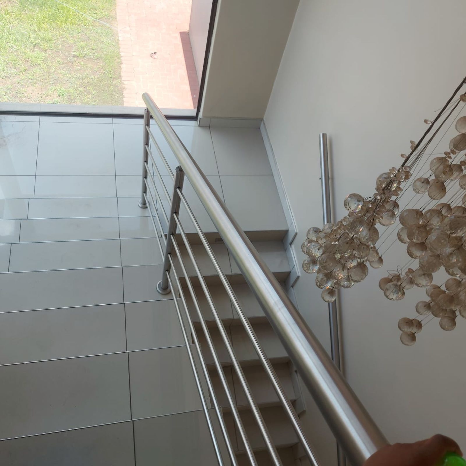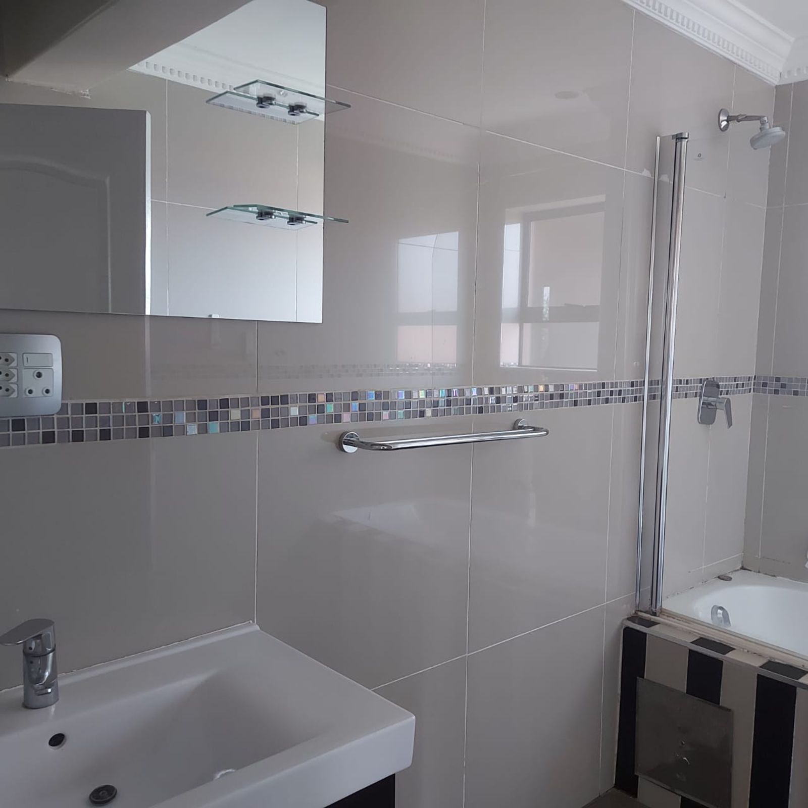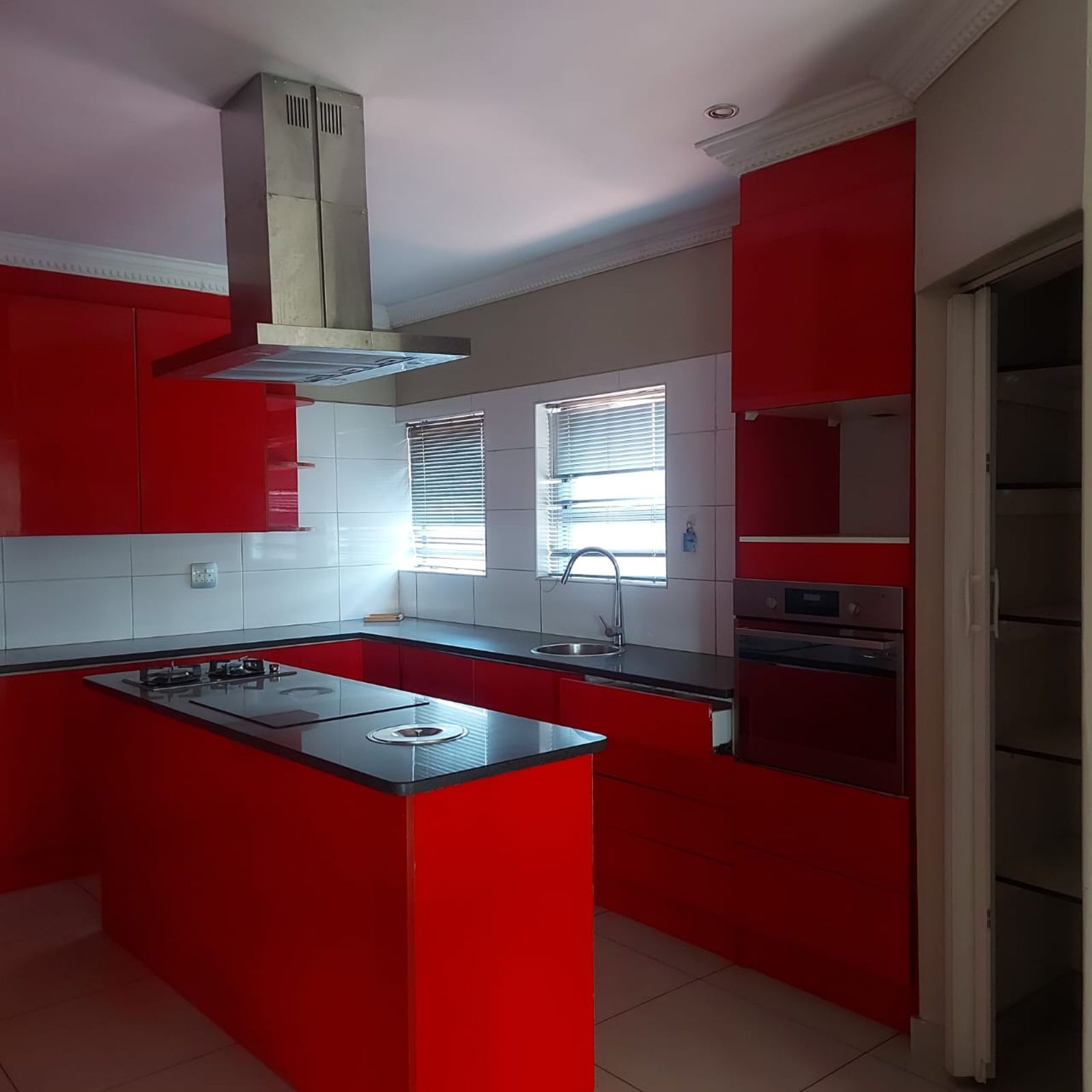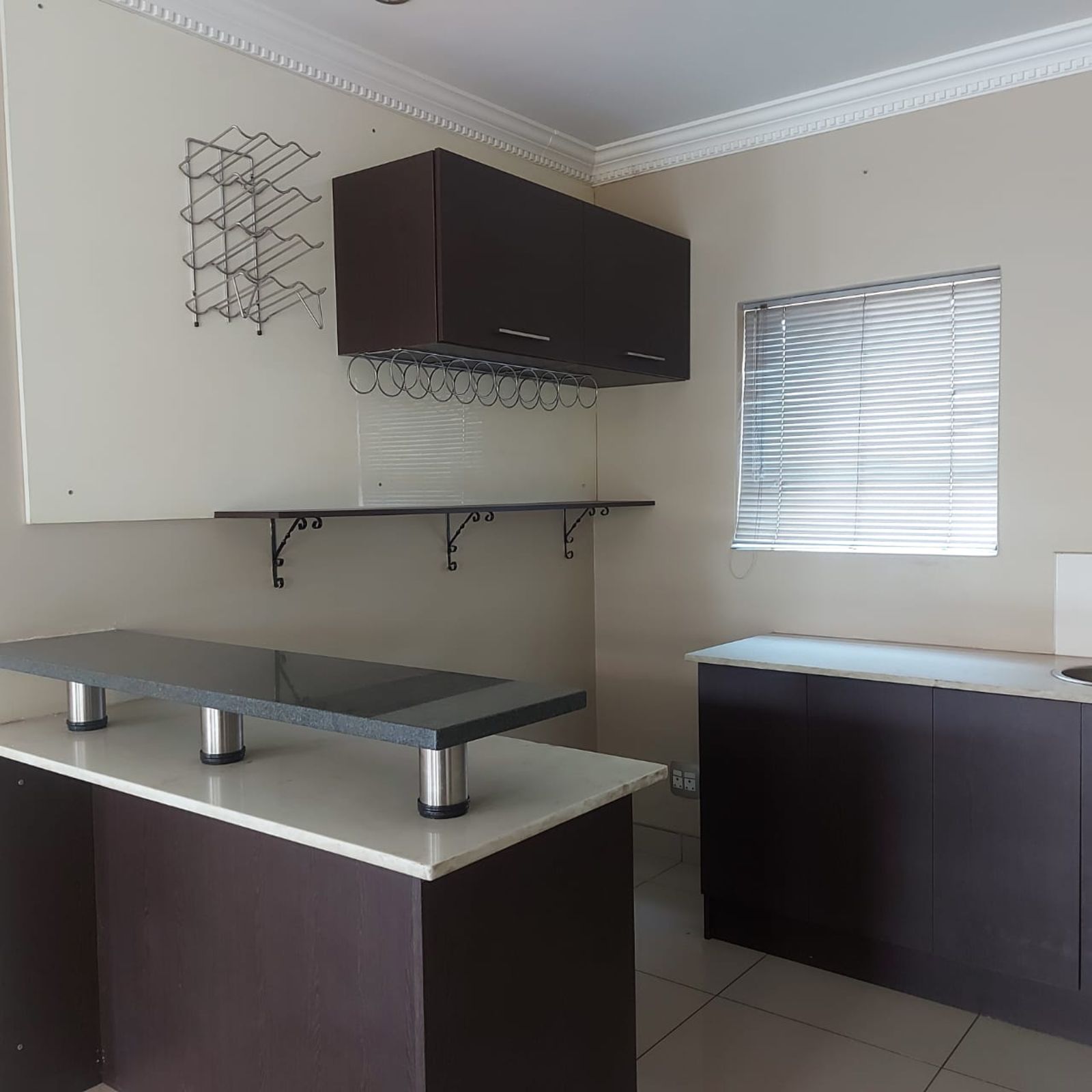 The modern kitchen is equipped with a pantry, eye-level oven, microwave, and a separate scullery. A dedicated bar area adds to the home’s entertainment appeal. The ground floor also offers a guest bedroom with an en-suite bathroom.