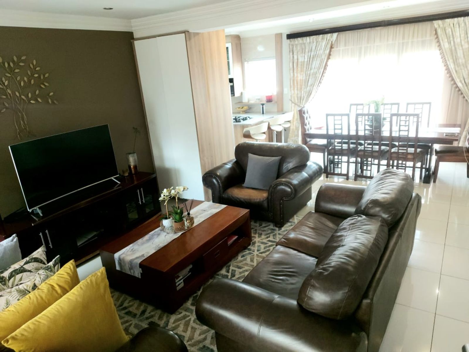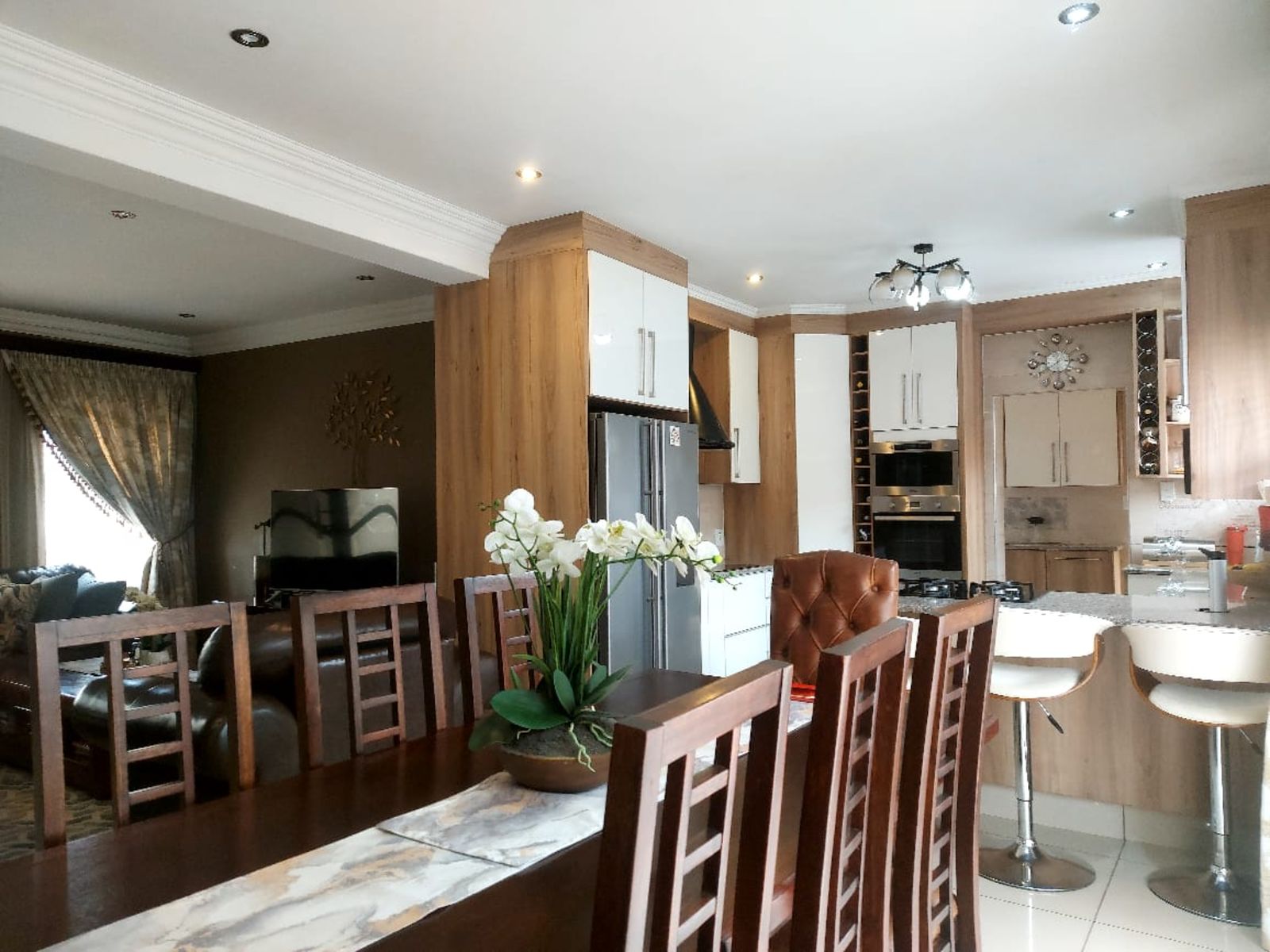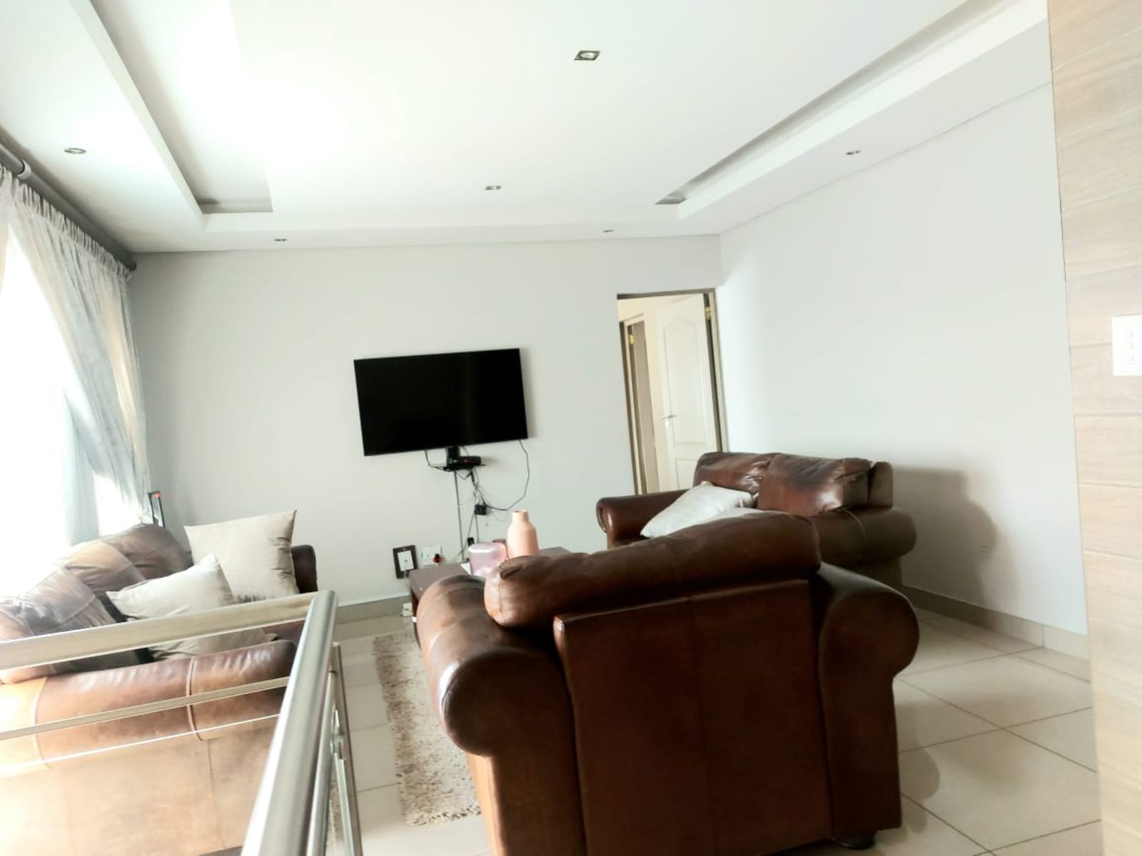 The ground floor features seamless open-plan lounges, dining area, and a contemporary kitchen fitted with quality finishes and complemented by a separate scullery for added convenience. Two generously sized bedrooms are located on the ground level, one with its own en-suite bathroom, making it ideal for guests or extended family.