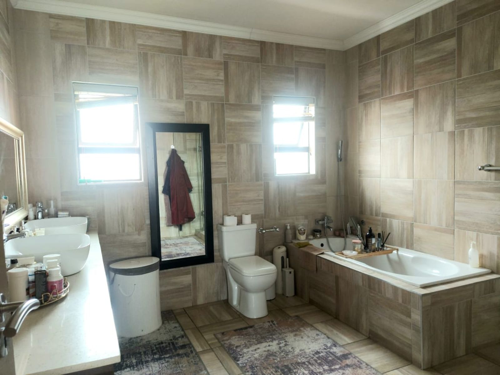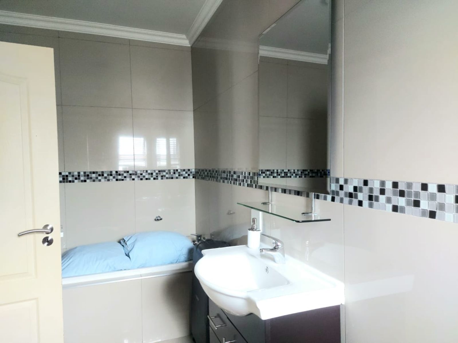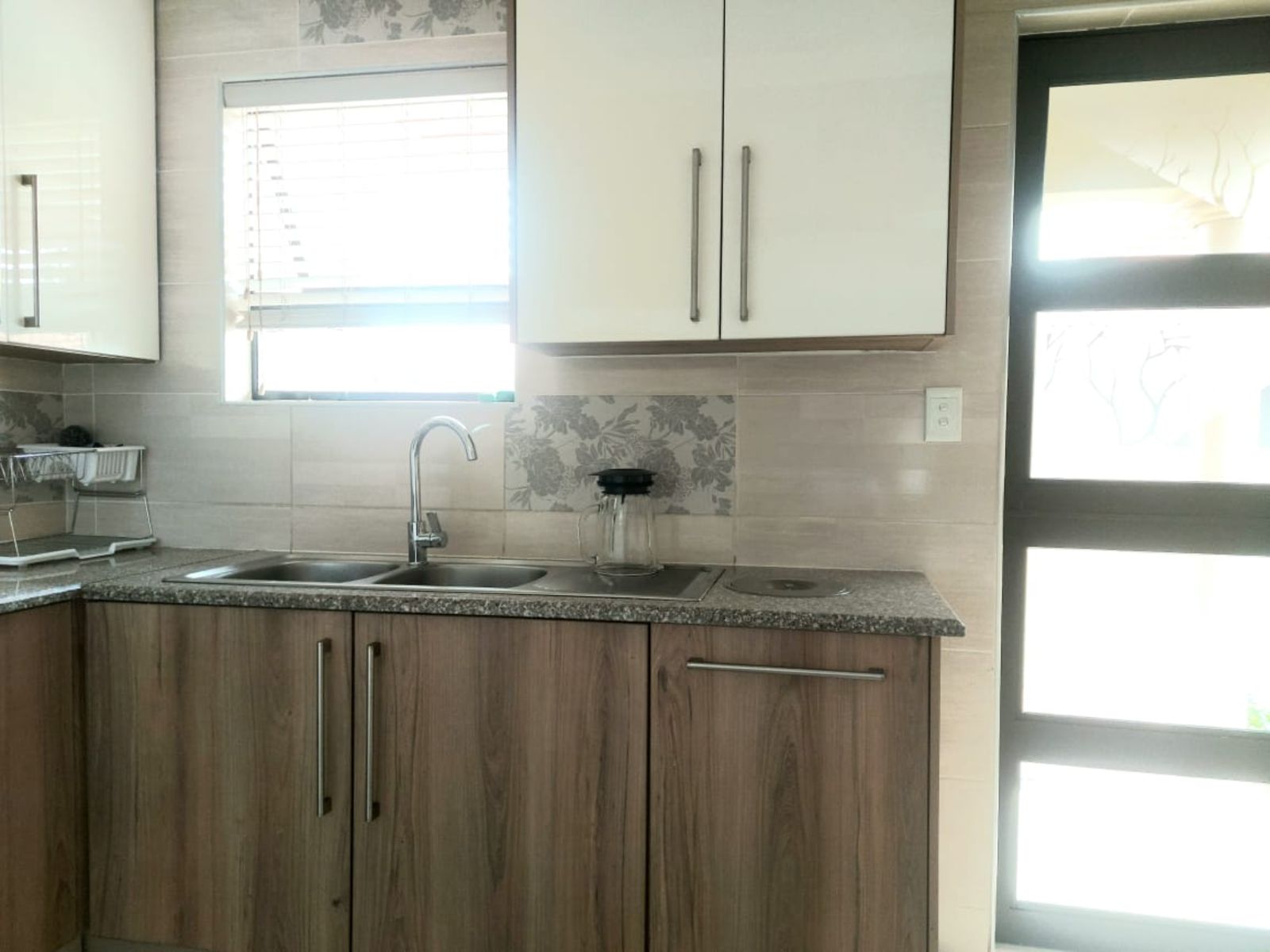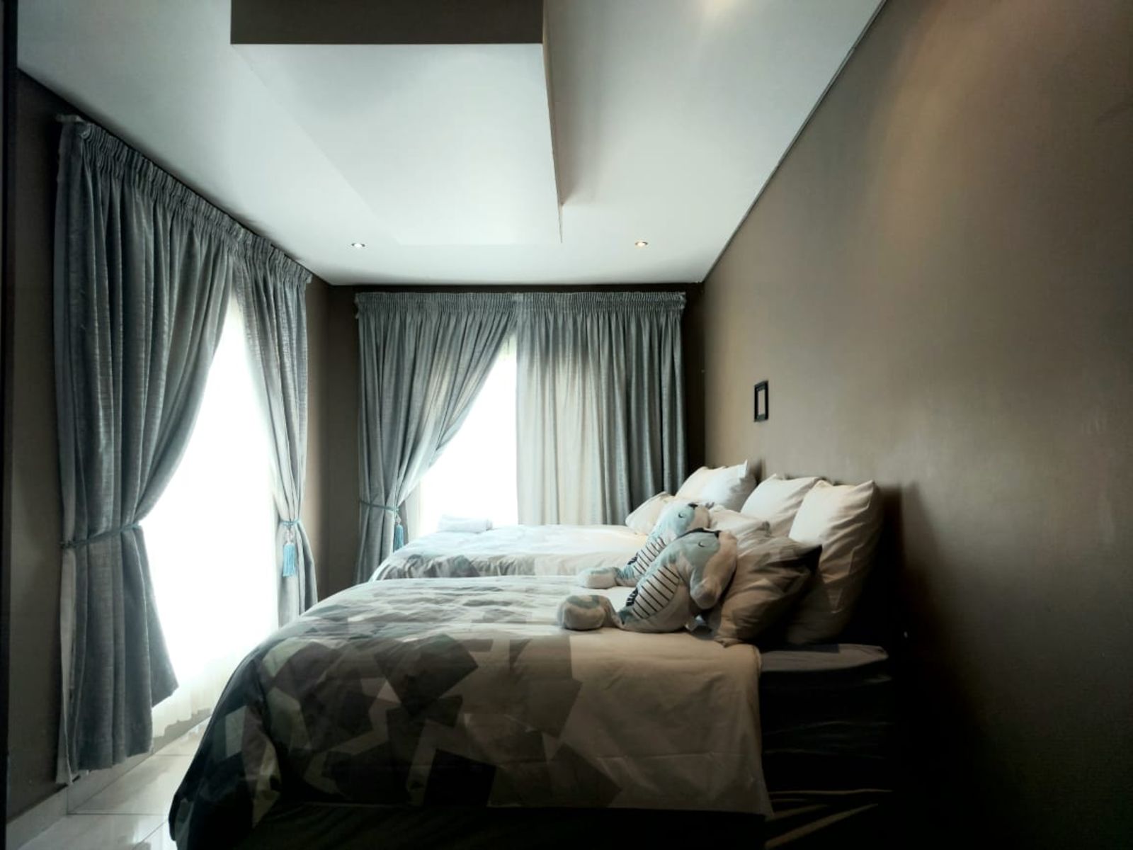 The ground floor features seamless open-plan lounges, dining area, and a contemporary kitchen fitted with quality finishes and complemented by a separate scullery for added convenience. Two generously sized bedrooms are located on the ground level, one with its own en-suite bathroom, making it ideal for guests or extended family.