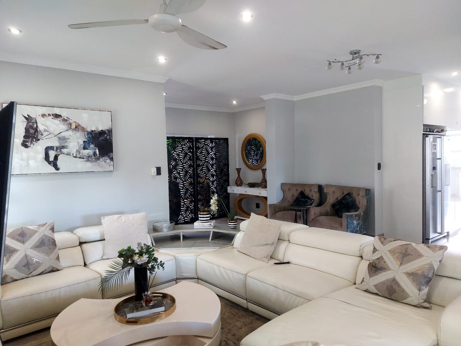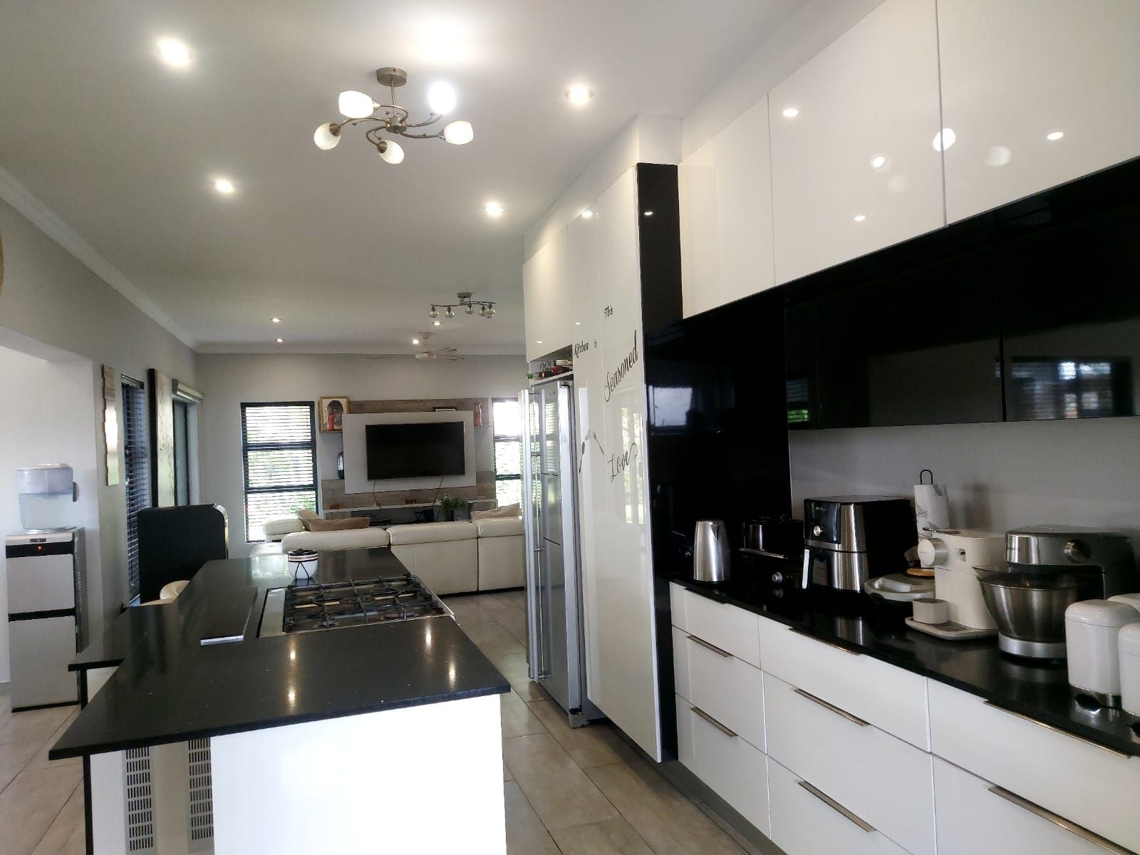 This stunning modern home is situated in the sought-after Savannah Country Estate and offers an impressive double-volume entrance that creates a warm and welcoming first impression. The residence boasts spacious open-plan living areas, seamlessly combining the dining and lounge spaces with a sleek, modern kitchen complete with a separate scullery.