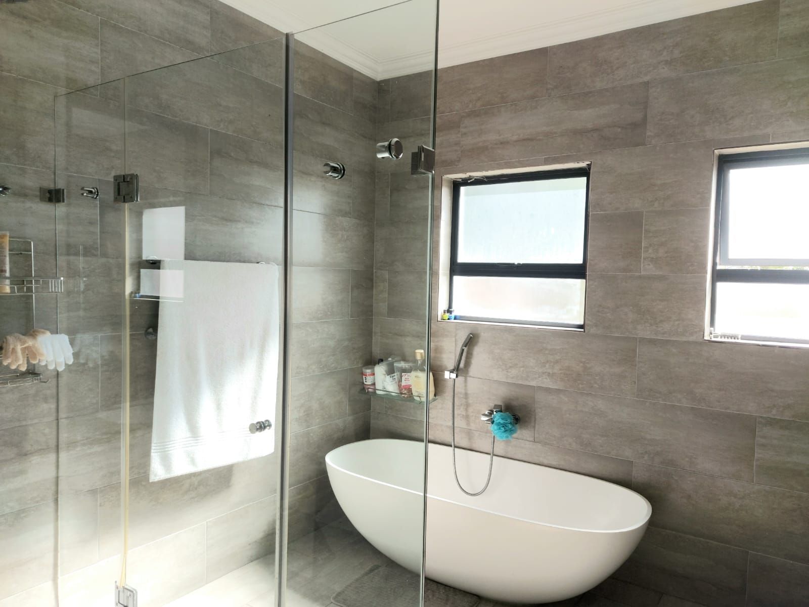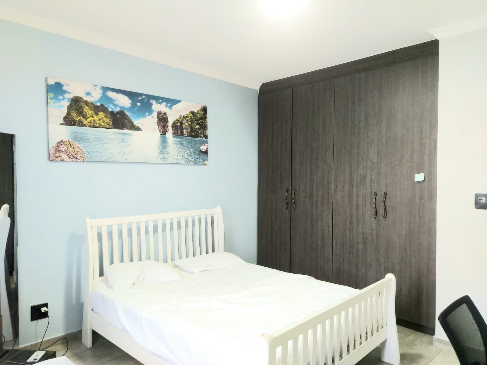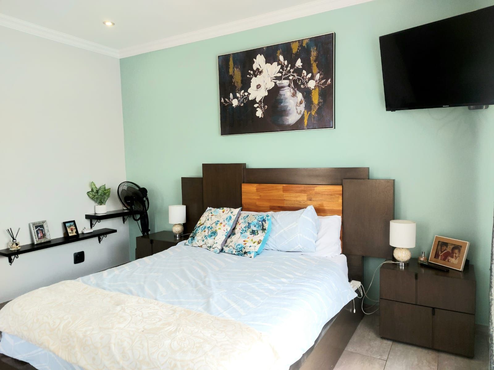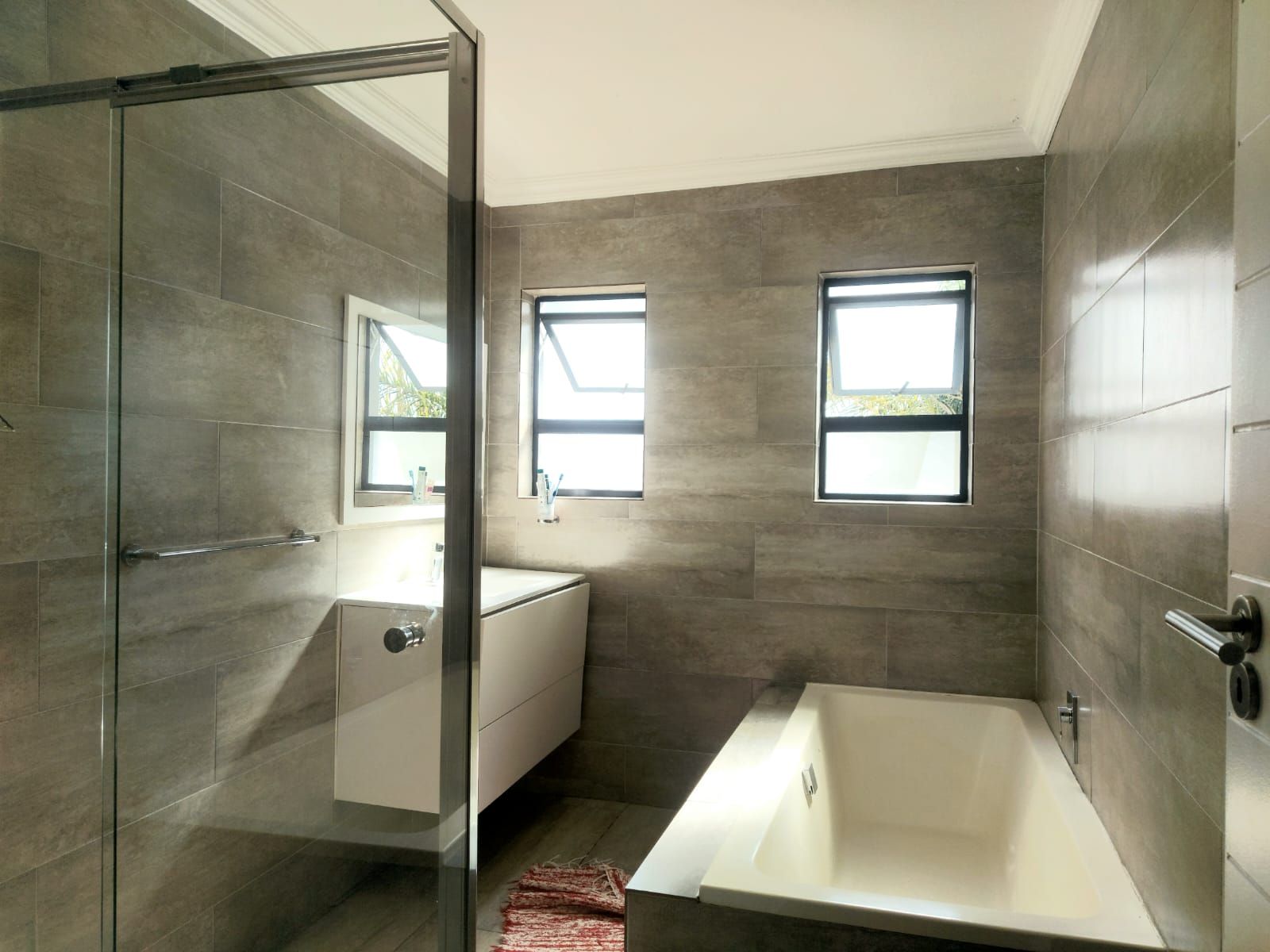 An enclosed patio with a built-in braai provides the perfect setting for year-round entertaining, overlooking a sparkling swimming pool and an immaculate, well-maintained garden. Upstairs, the home features five generously sized bedrooms. The luxurious main bedroom includes a walk-in closet and a full en-suite bathroom. Two additional bedrooms share a full bathroom, while a private office offers an ideal work-from-home space. The fifth bedroom, with its own en-suite bathroom, is perfectly suited as staff quarters or guest accommodation.