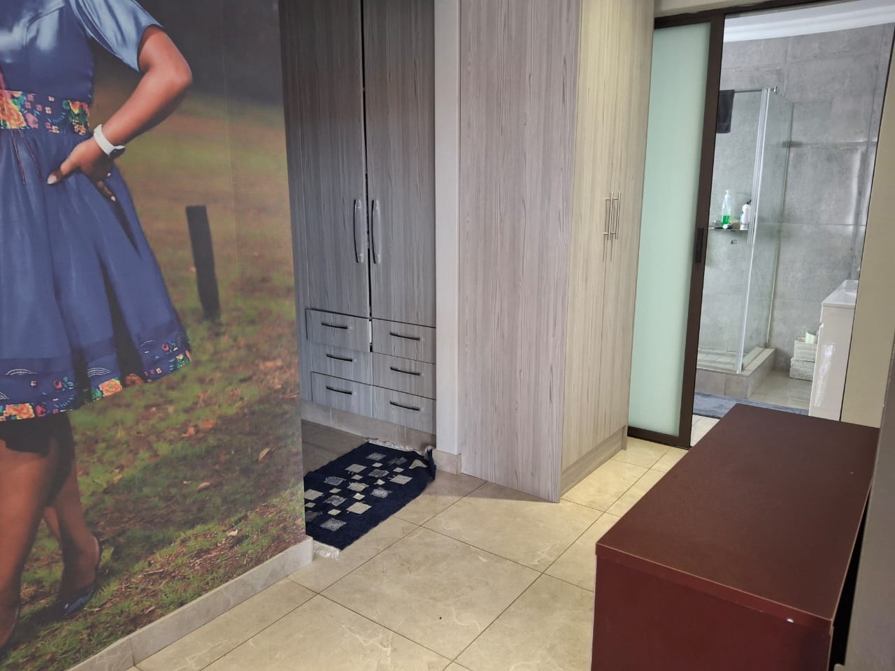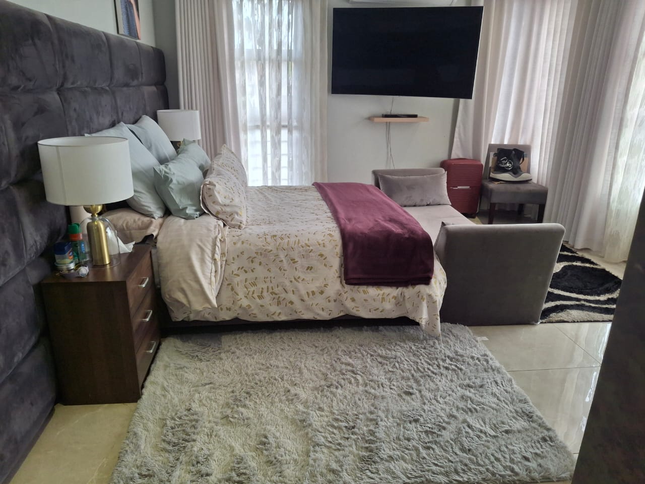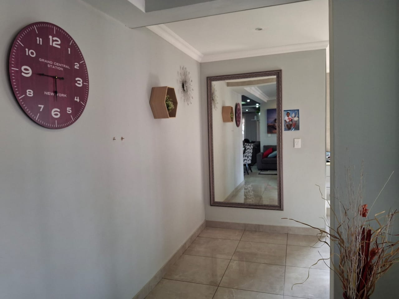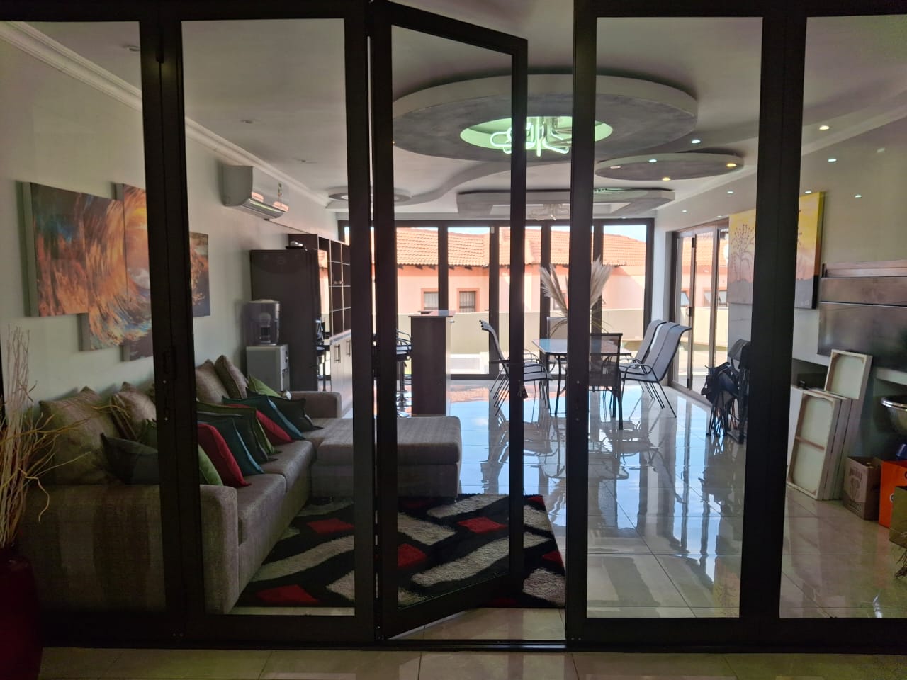 The entrance flows seamlessly into a stunning open-plan dining area and an expansive TV lounge, ideal for both relaxed family living and stylish entertaining. A well-positioned guest bedroom and guest toilet add convenience, while the elegant kitchen, complete with a scullery, blends functionality with timeless design.