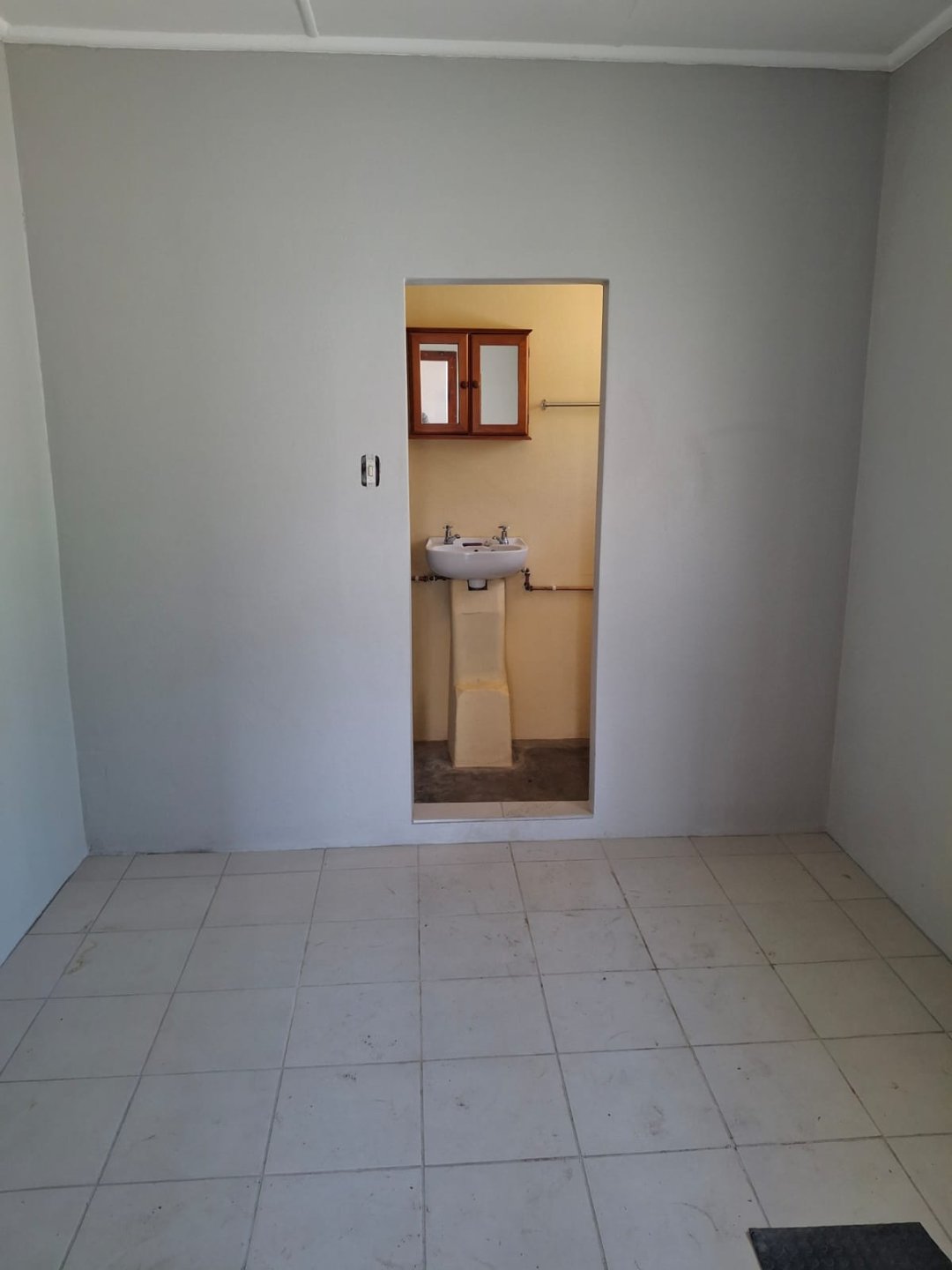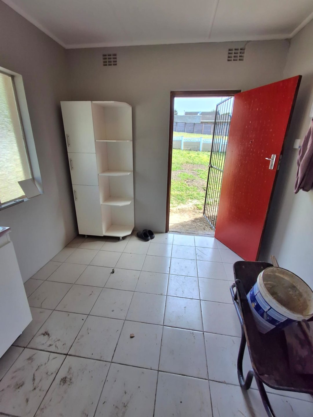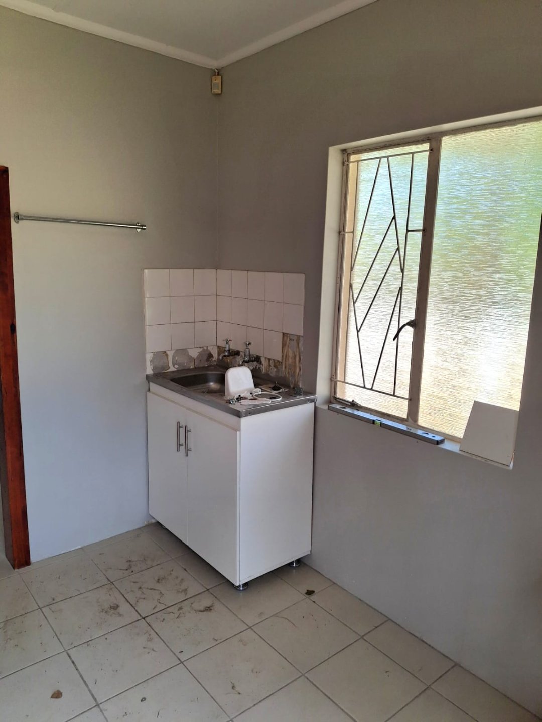 Back through the passage, discover a modern kitchen fitted with built-in cupboards and direct access to the outdoors, where thoughtful design continues.