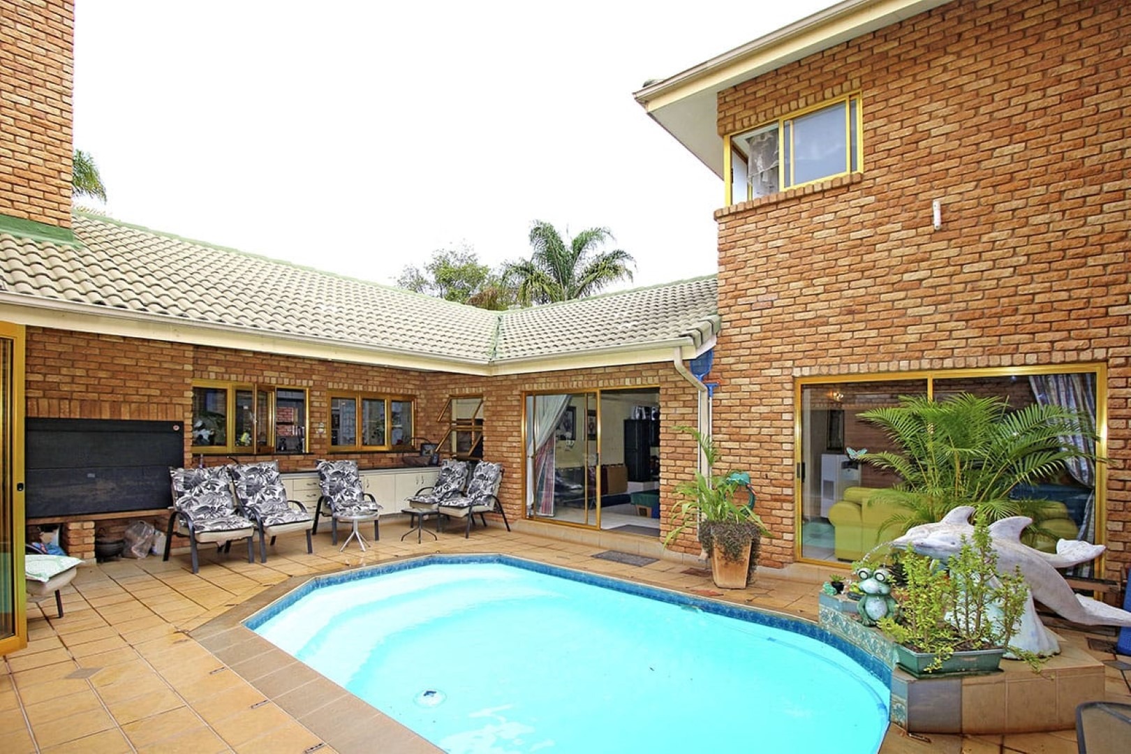 Entertainment options abound with an indoor gas braai, a charming breakfast nook overlooking the enclosed heated pool, and a modern fireplace creating a cozy ambiance. An outdoor food prep area, complemented by a secondary sink, further enhances the allure of alfresco dining.