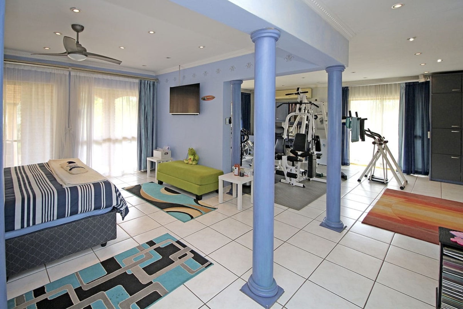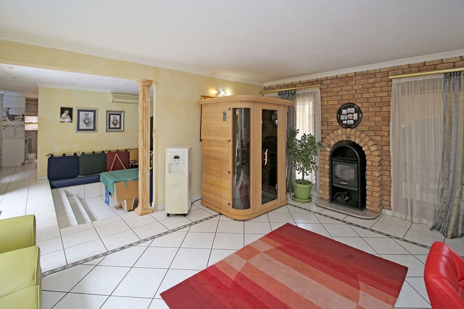 This residence epitomizes modern comfort with underfloor heating, air-conditioning, and solar power ensuring year-round comfort and sustainability. A borehole water supply and automatic garden sprinkler system cater to the property's outdoor needs. Innovative Android-controlled lighting system illuminates the interiors, while passive solar lights adorn the landscaped garden.