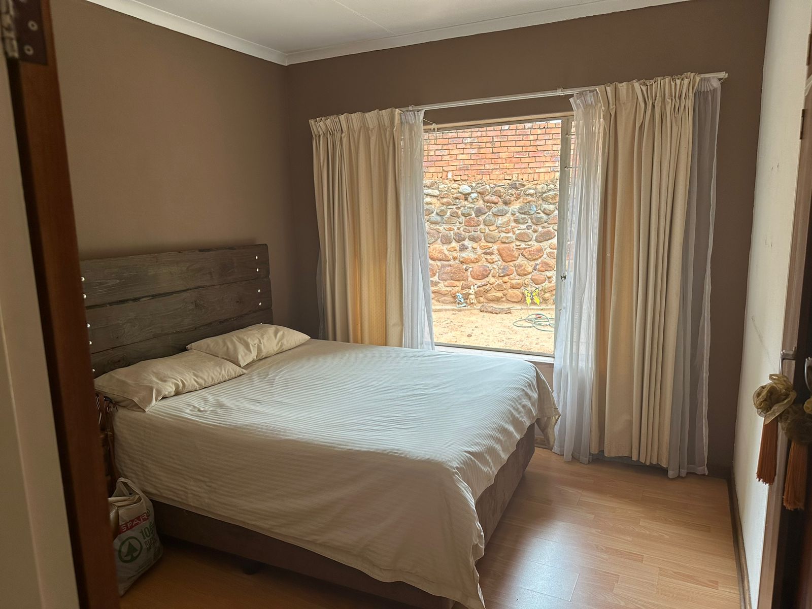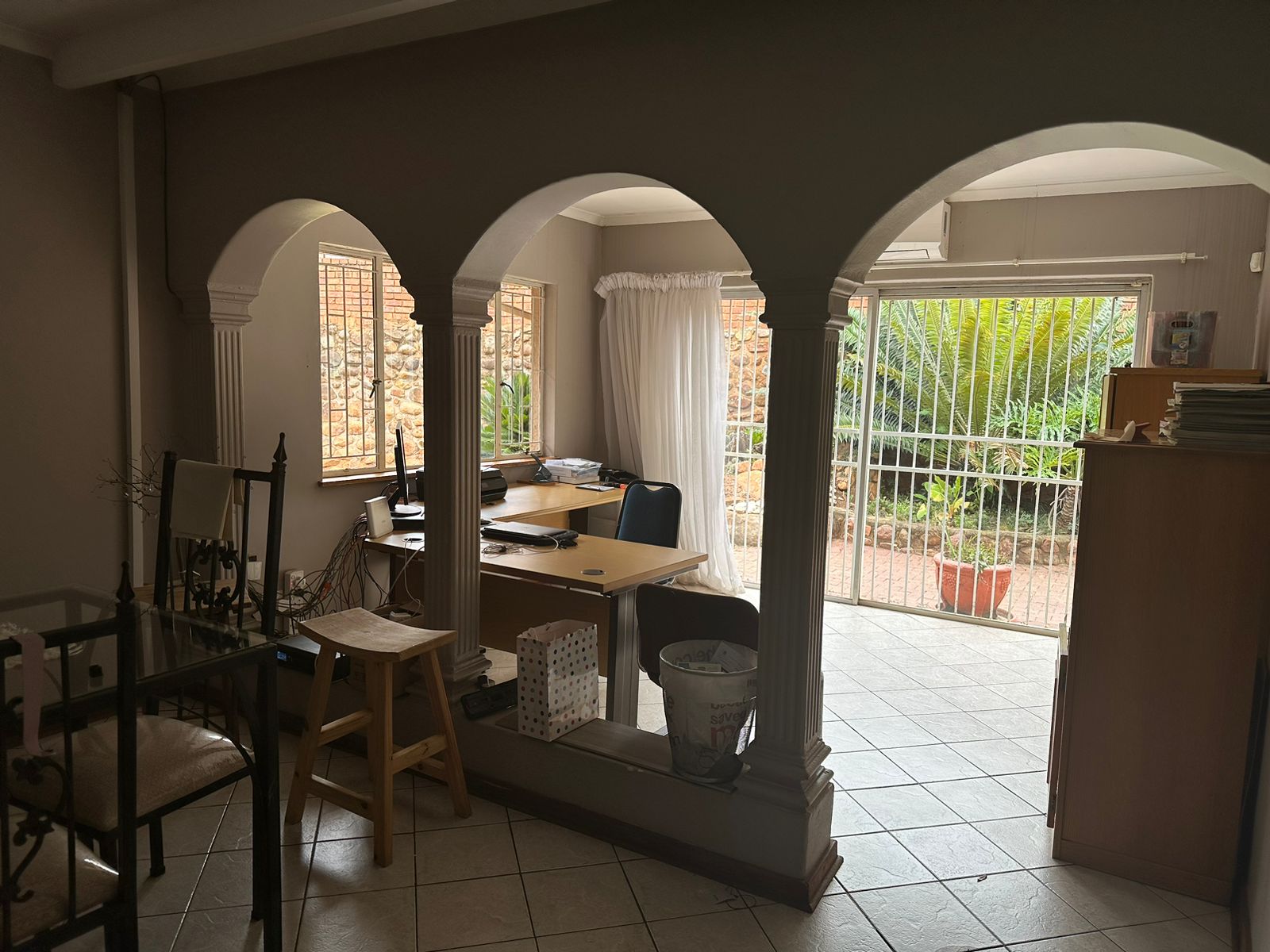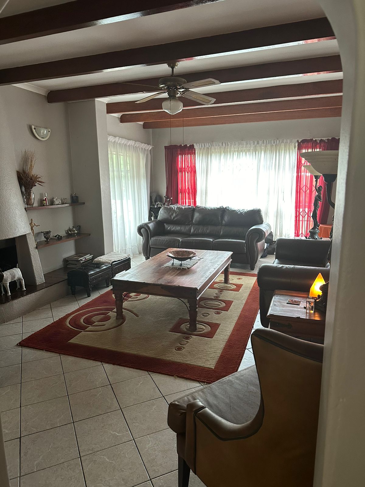 Entertaining is effortless with a built-in braai area and sliding doors that open onto a sunny patio, surrounded by a lush garden and a sparkling swimming pool — perfect for relaxed weekends and family fun.