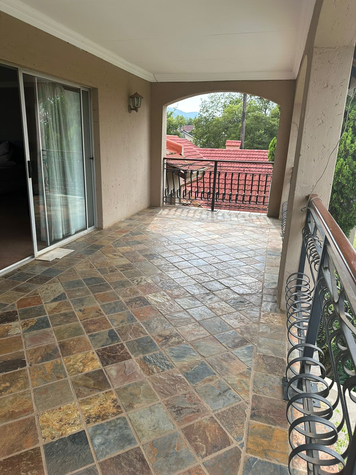The downstairs area offers three comfortable bedrooms and two well-appointed bathrooms, while the spacious main suite upstairs provides a true sanctuary with a walk-in closet, en-suite bathroom, and a private balcony overlooking the tranquil garden.