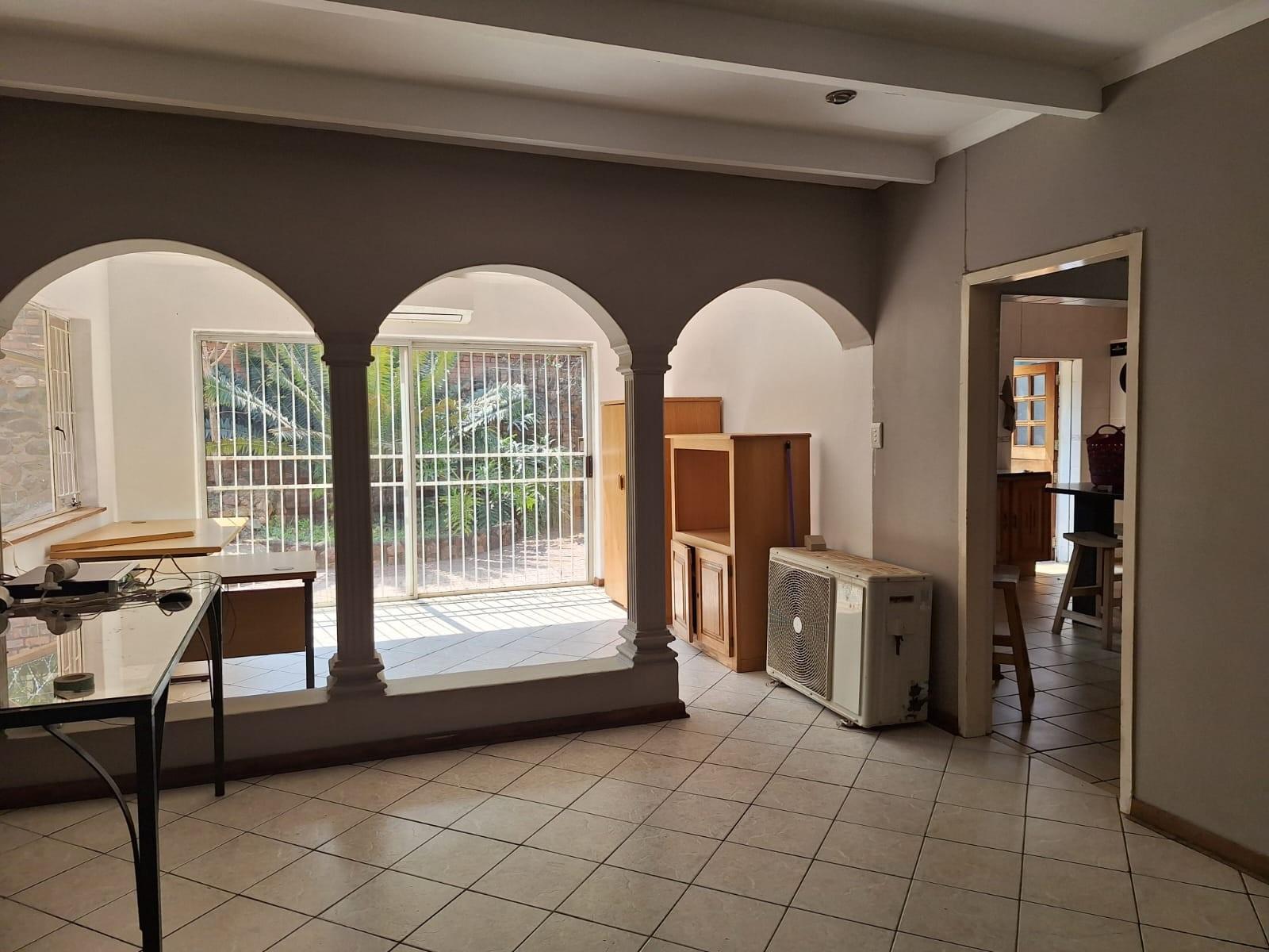 A large family room opening onto a covered patio with built-in braai, perfect for entertaining while overlooking the pool.