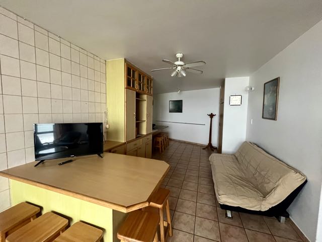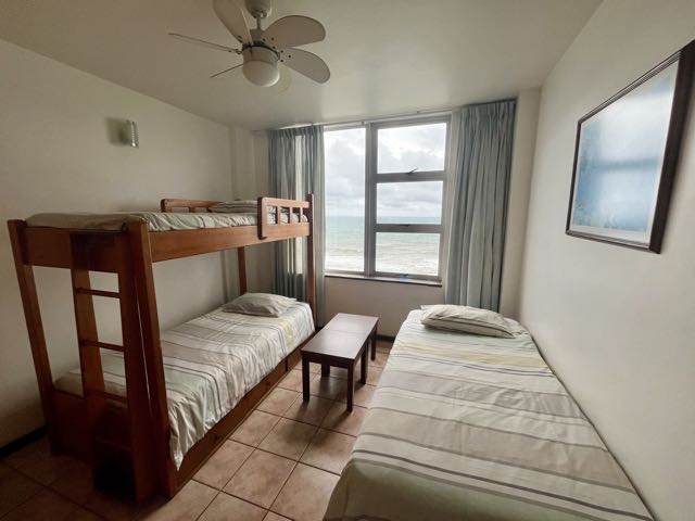 The Apartment consists of 2 bathrooms and 3 bedrooms, which are well sized, have curtains, built-in cupboards, tiled floors and sea views. The kitchen and lounge are open planned with a neat finish to the apartment.