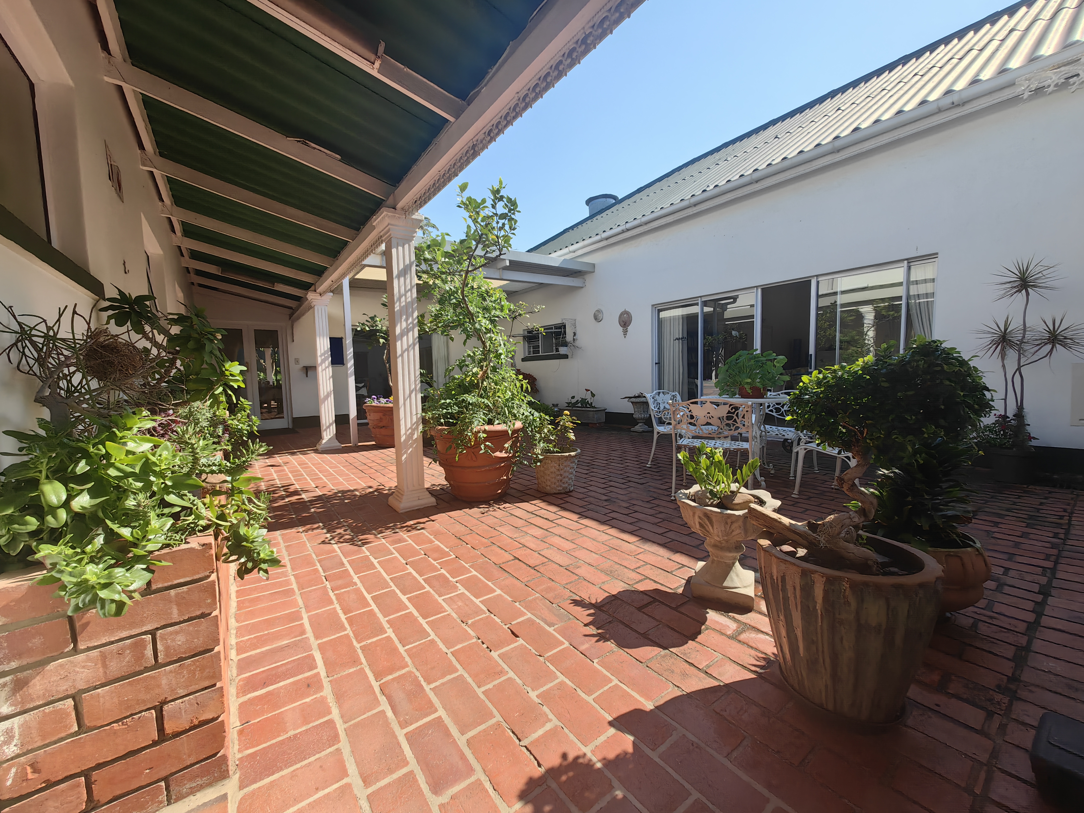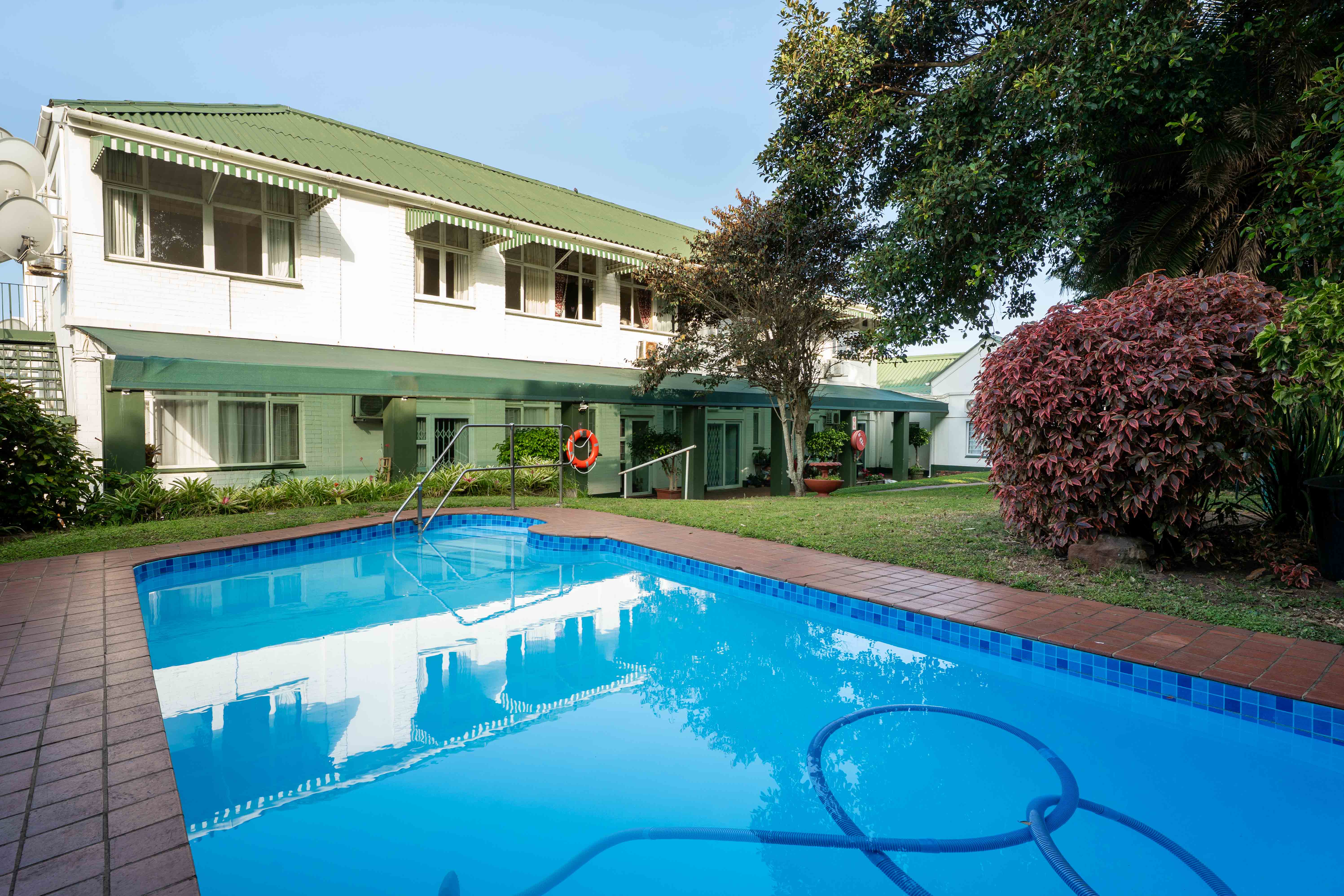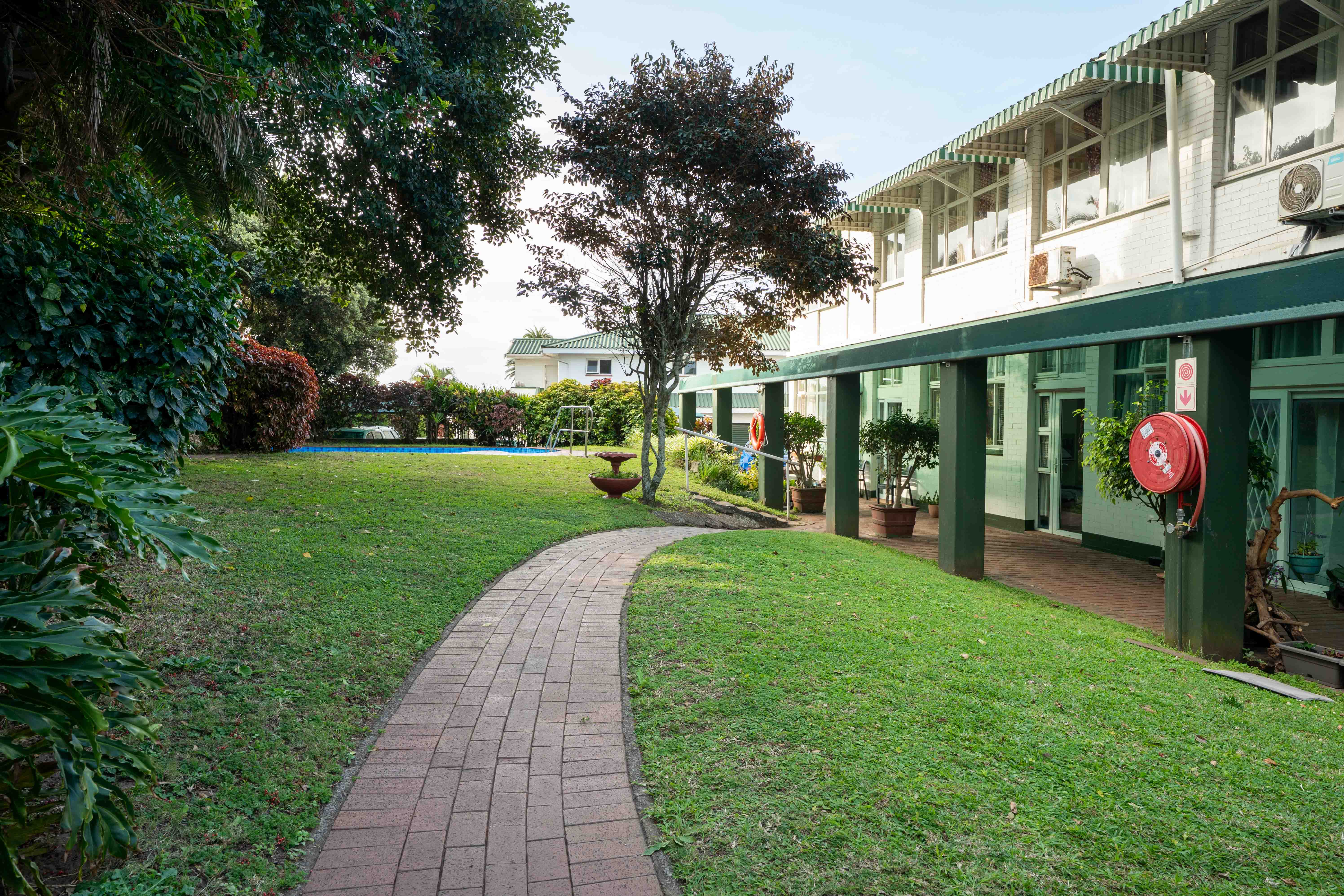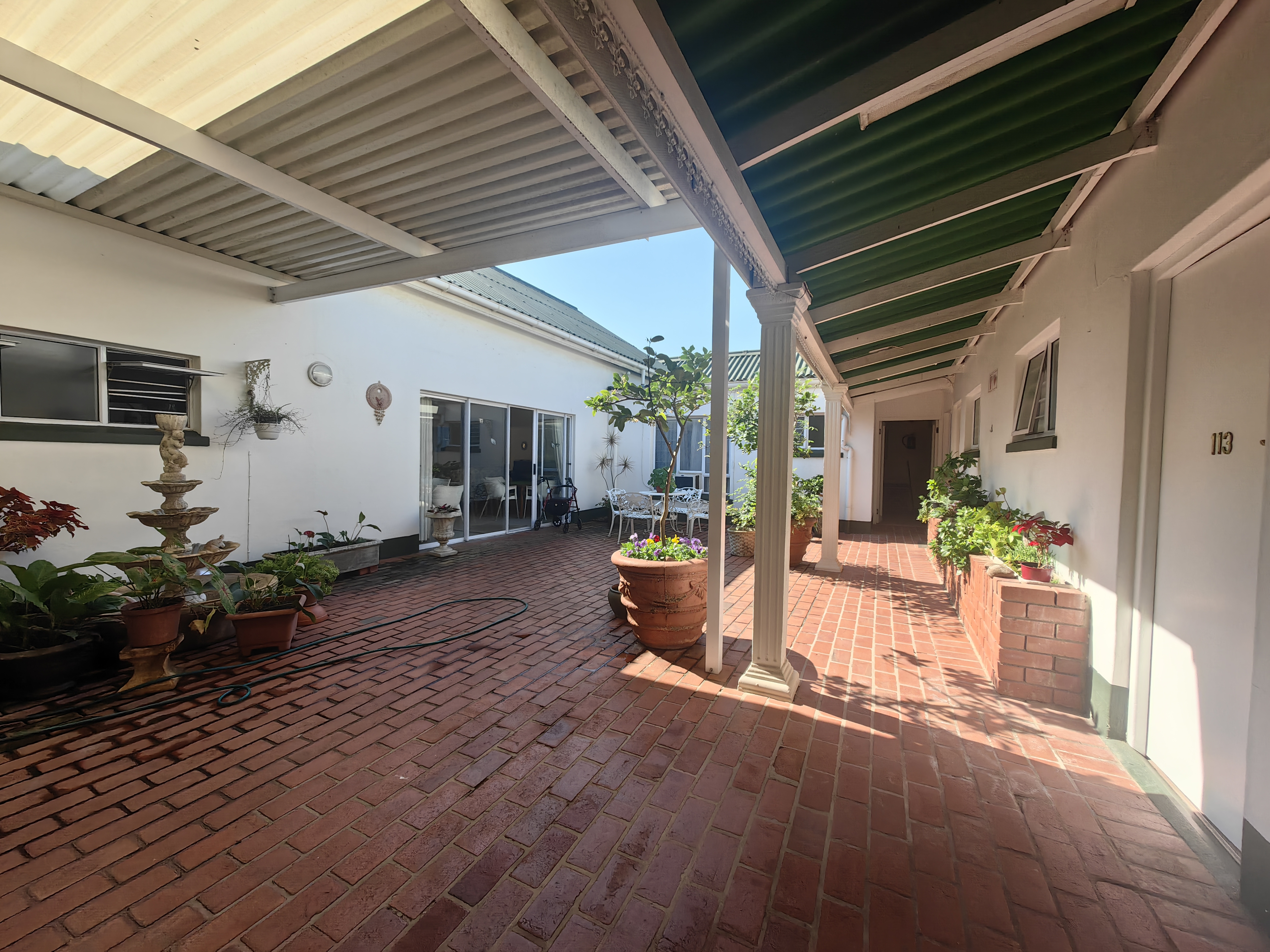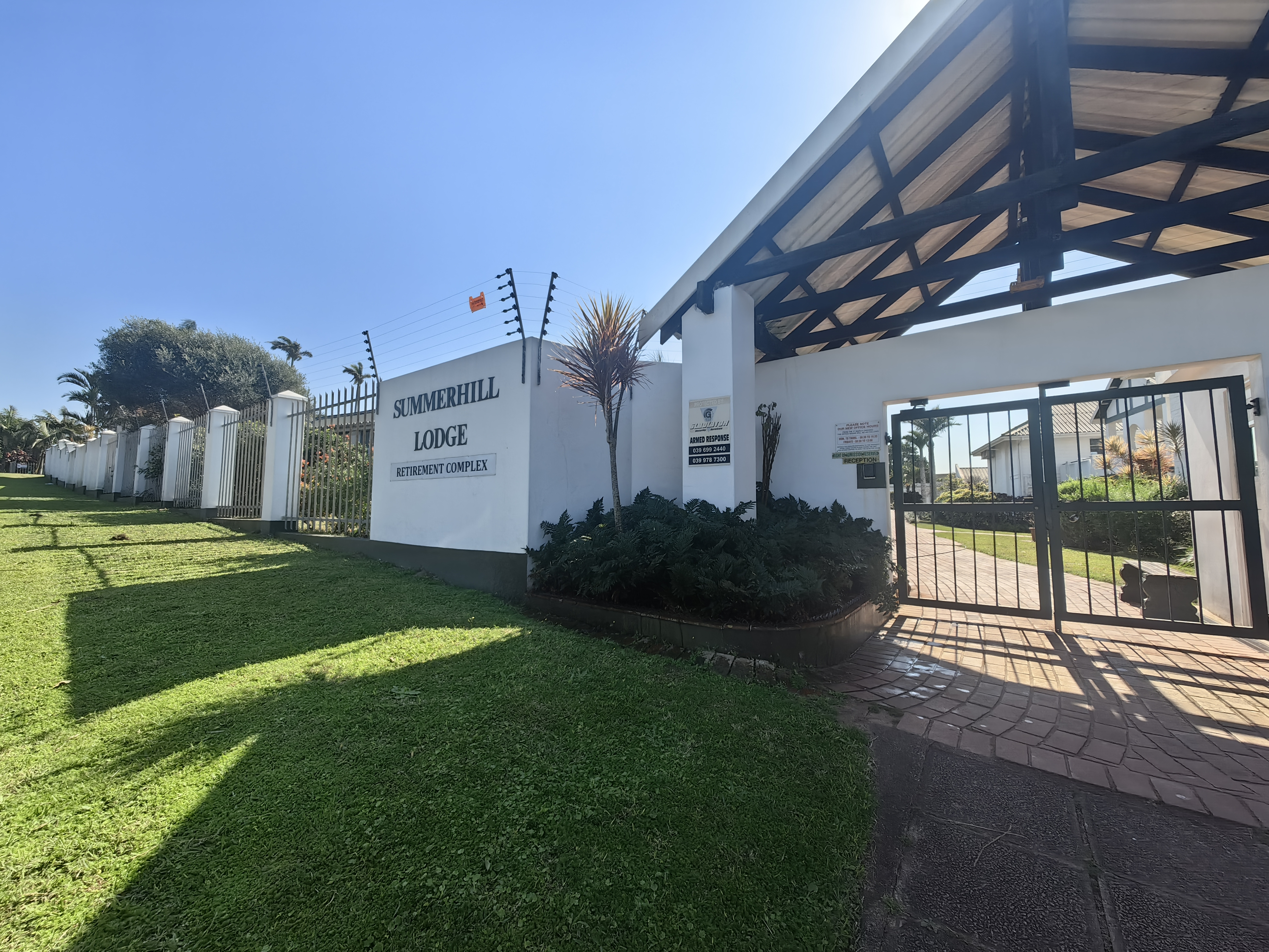 The complex is fully secured with a motorised security gate, high perimeter walls, and electric fencing, giving residents complete peace of mind. Stroll along the long, level pathways meandering through the professionally landscaped communal gardens, perfect for daily exercise or simply appreciating the lush greenery and colourful blooms. For those who enjoy socialising, there’s a sparkling outdoor pool and a covered entertainment area with a built-in braai, available for all residents to enjoy.