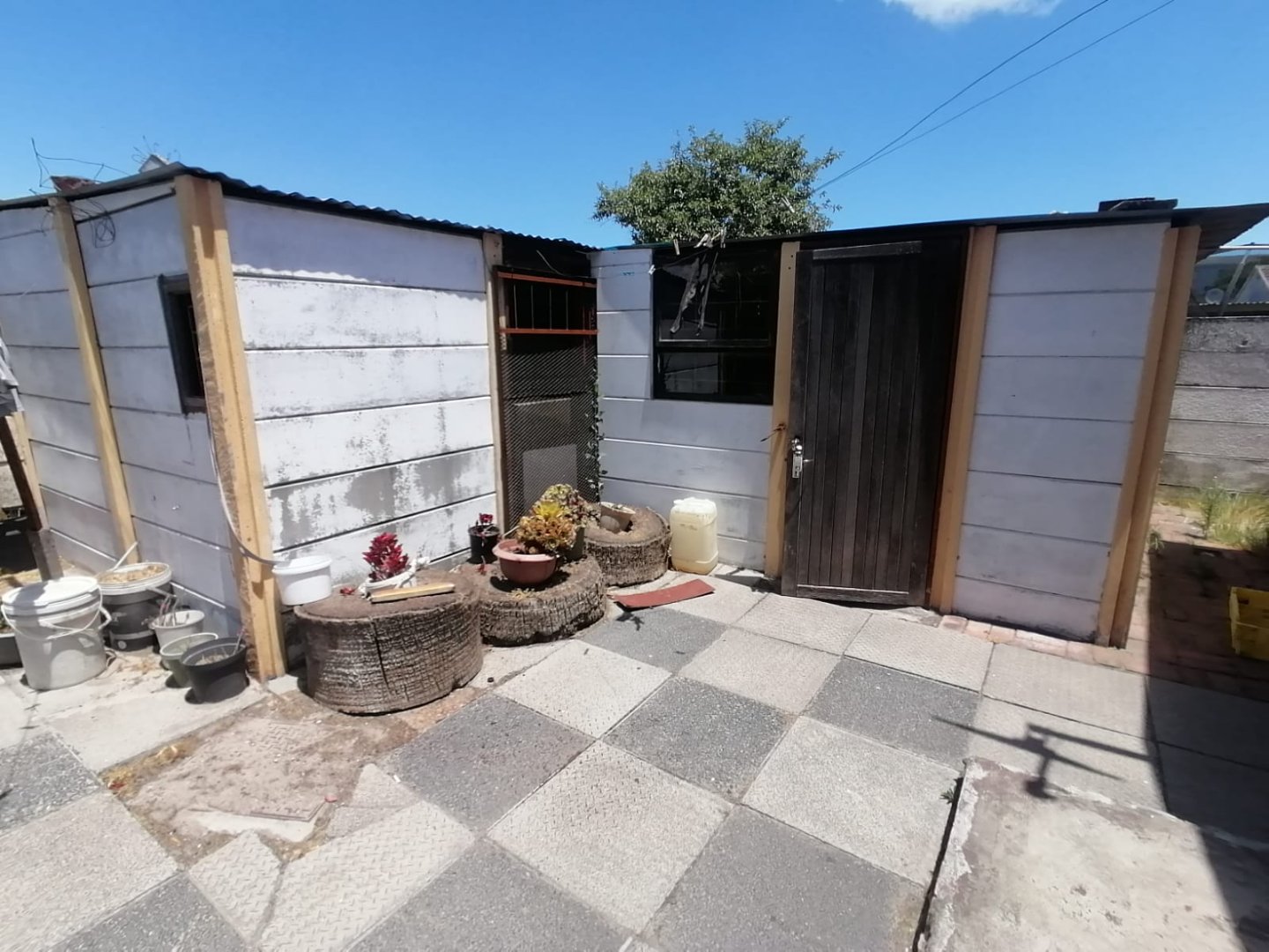 Outside braai in the yard with workshop/storage shed with toilet facilities