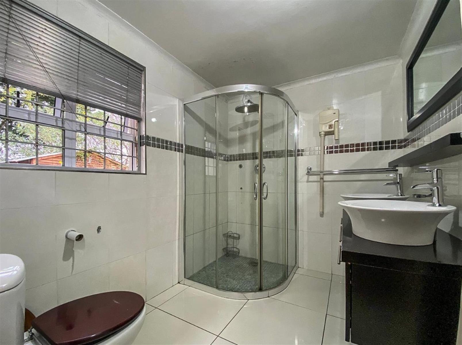 The main residence boasts a contemporary design with a stylish TV lounge, a modern 5-star kitchen, and four generously sized bedrooms, complete with built-in cupboards. Multiple bathrooms, including en-suites, ensure convenience and comfort for all.