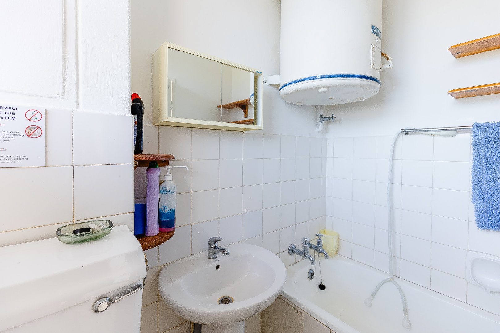 The unit has a spacious lounge and ample kitchen space. There is a bathroom with a bath, basin and toilet.