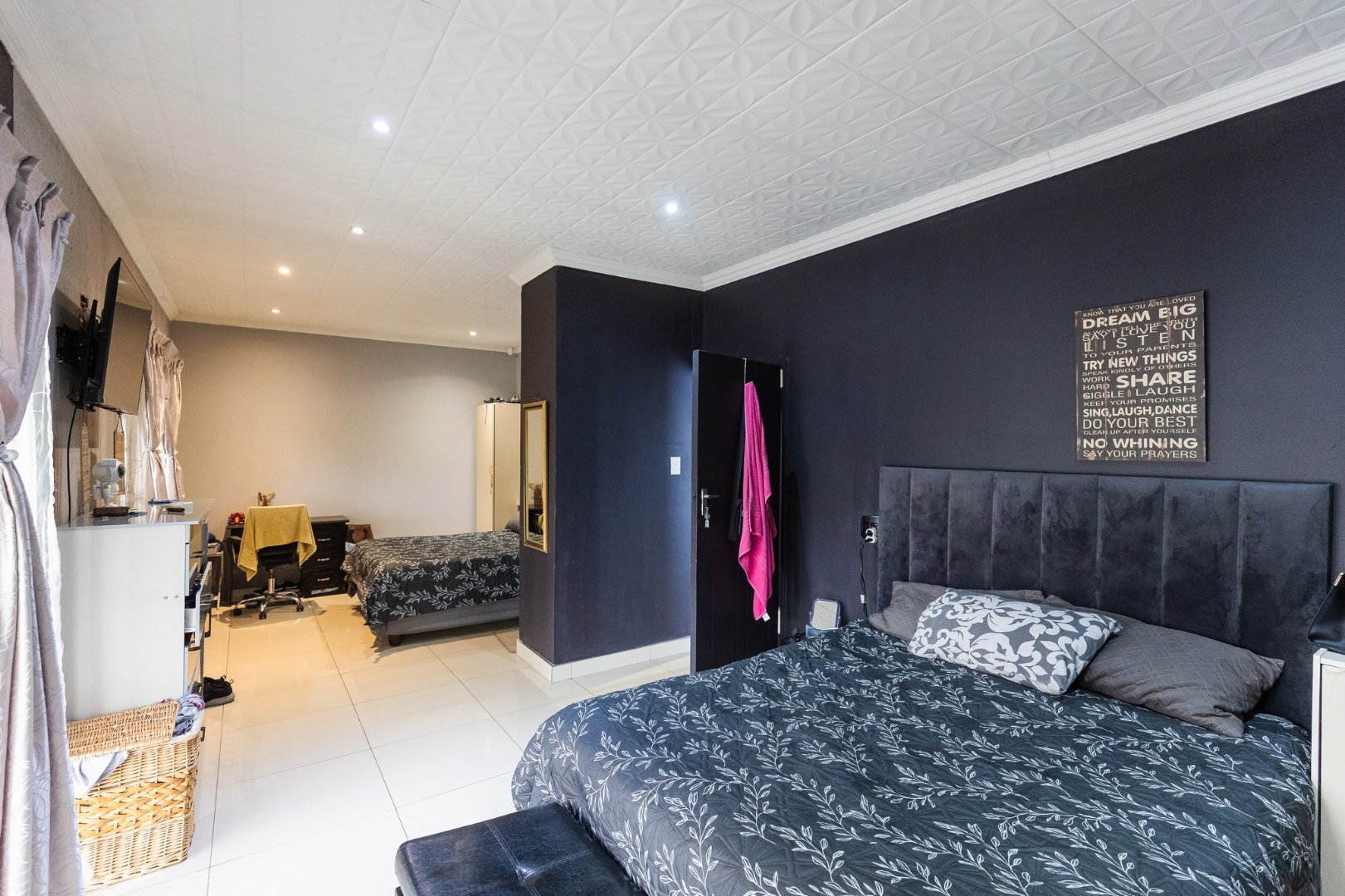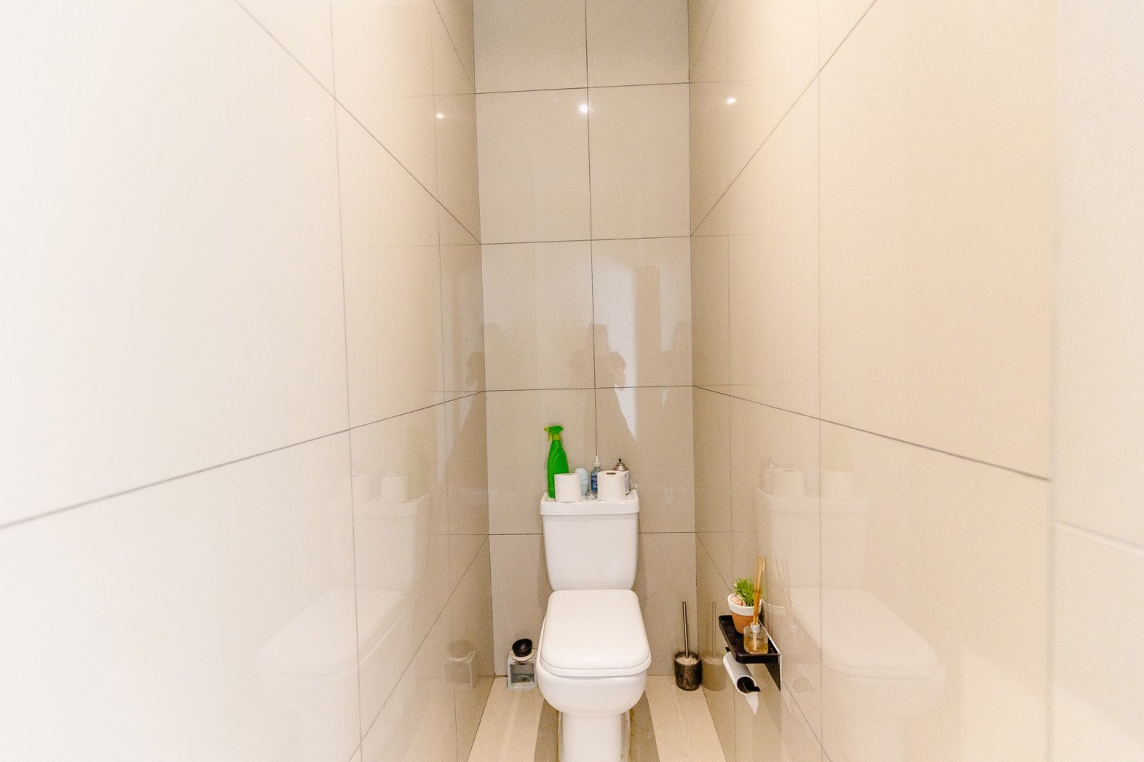 The house has two bedrooms. One of the bedrooms was originally two rooms and has been opened up into one large space, but it can easily be converted back if needed. The main bedroom has a walk-in cupboard and an en-suite bathroom.