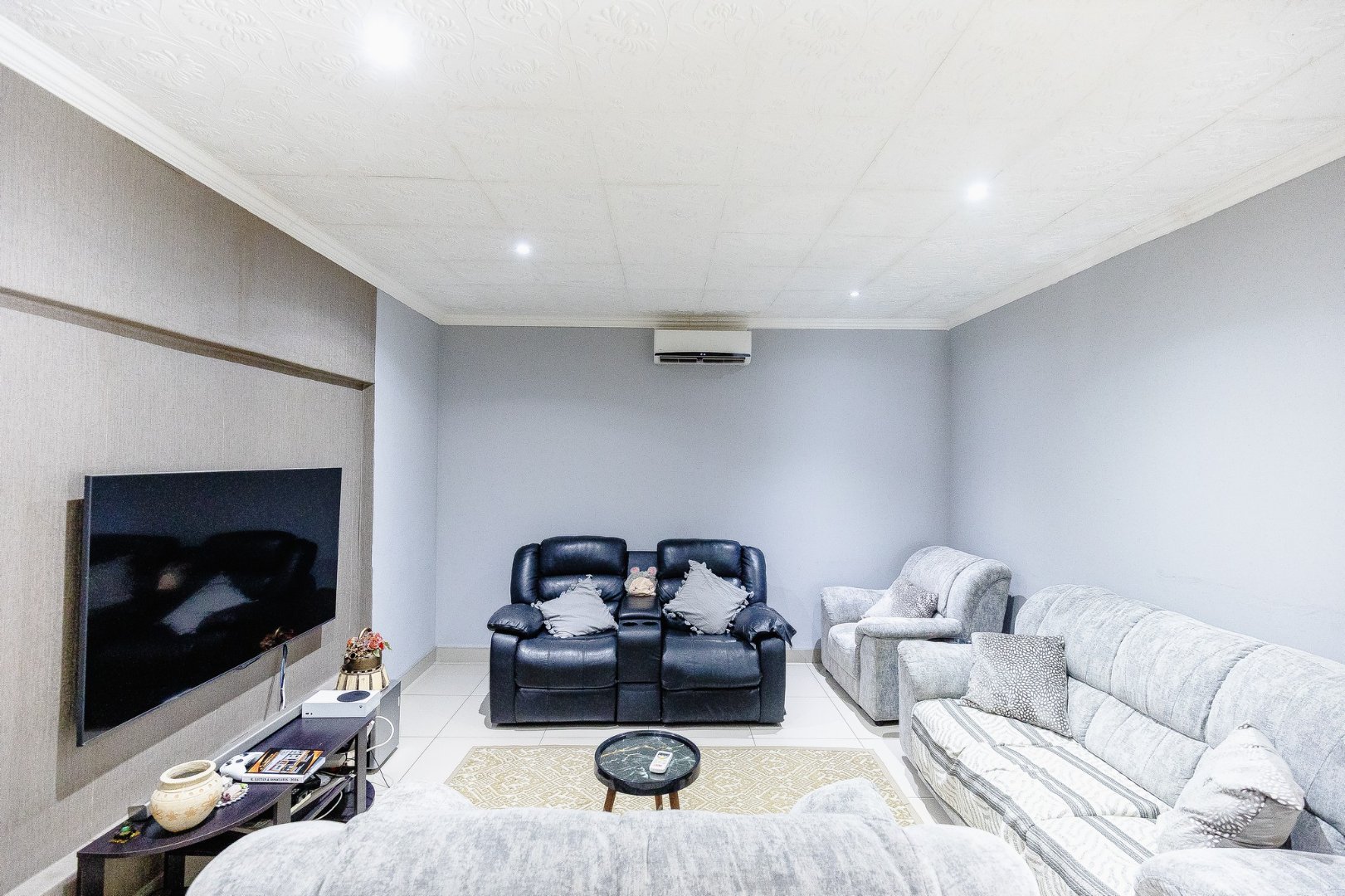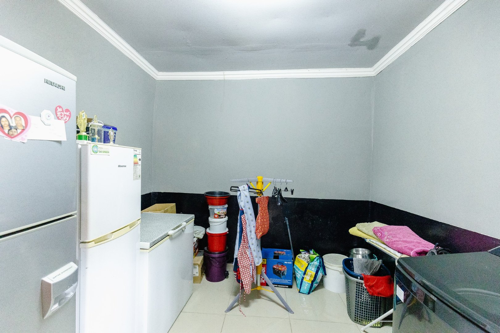 This modern home is set on a large stand in Seapark and offers a spacious layout with two lounges and an open-plan dining and kitchen area. The kitchen is very big with lots of countertop space and includes two hobs – one electric and one gas and one undercounter oven. There is also a separate laundry room.