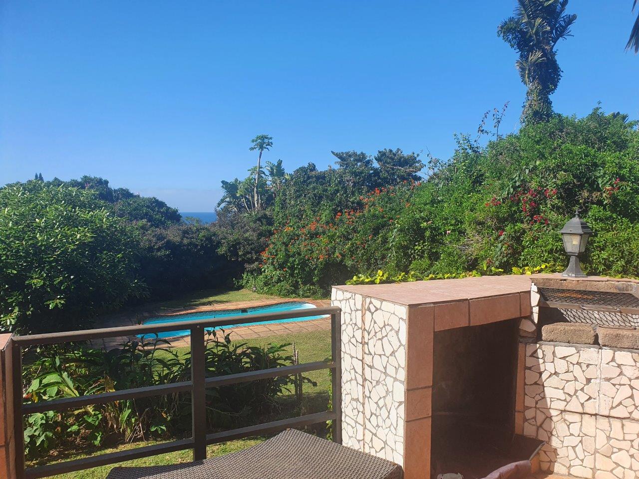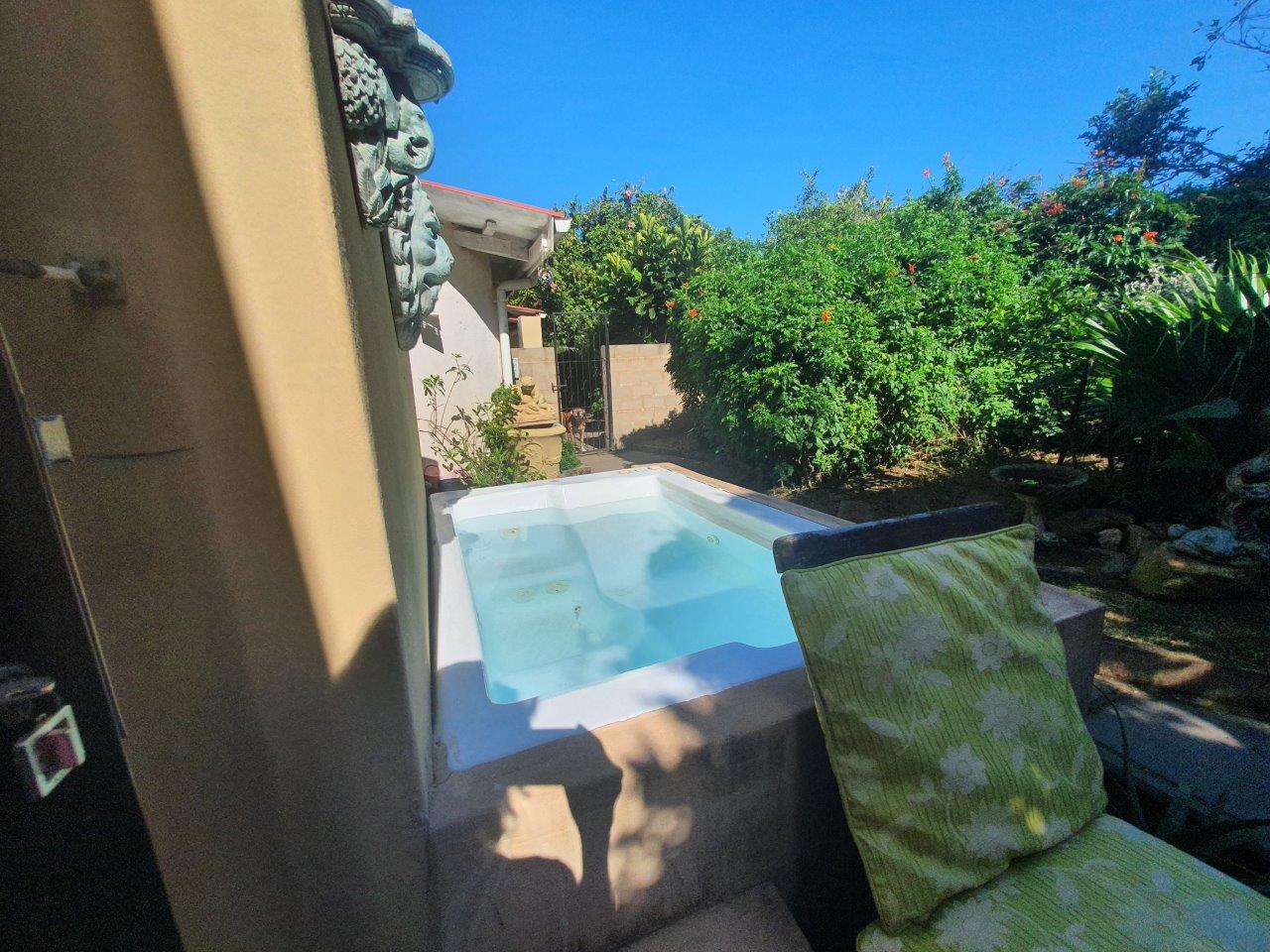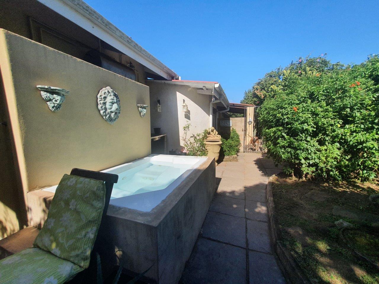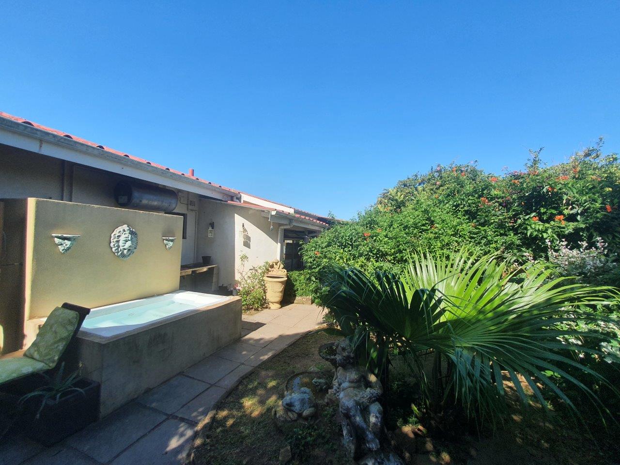 This uniquely designed home is set in the heart of Sea Park and is designed with comfort and style in mind. Main House offers you 3 spacious Bedrooms, 2 bathrooms (main en-suite), well sized kitchen, spacious lounge, sunroom and a patio with built in braai facilities and partial sea views! The main bedroom leads to a large balcony with distant sea views, separate outside laundry, closed courtyard with jacuzzi and many more futures. Earn extra income with the flatlet which offers you a private garden with jacuzzi and braai, spacious tiled lounge area & patio. kitchenette, 1.5 bedrooms and 1 bathroom with shower, toilet, and basin. The garden is well maintained, and the sparkling swimming pool and braai area is just a bonus to this lovely property. Pond, Double automated garage with direct access to the house. Parking Bay. Fully walled. Good security, Quiet suburb. Few minutes away from the beach and other amenities, which make this the perfect home for buyers looking for comfort, luxury, and space.