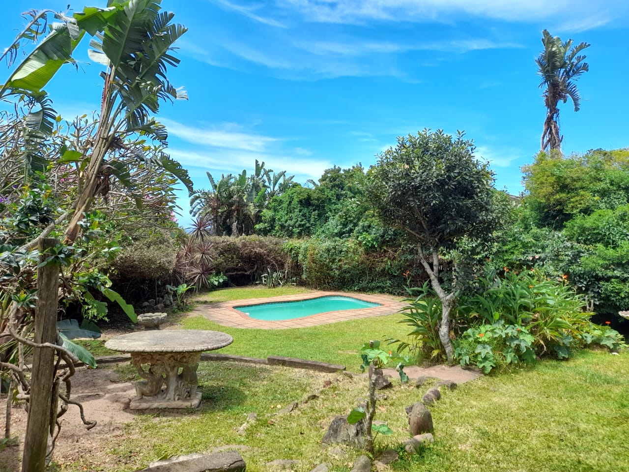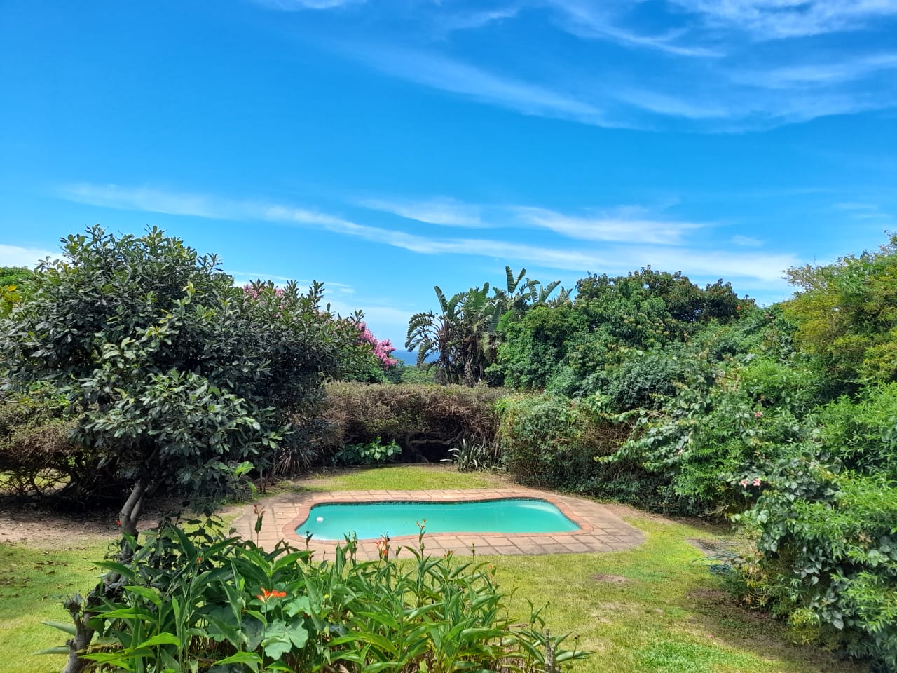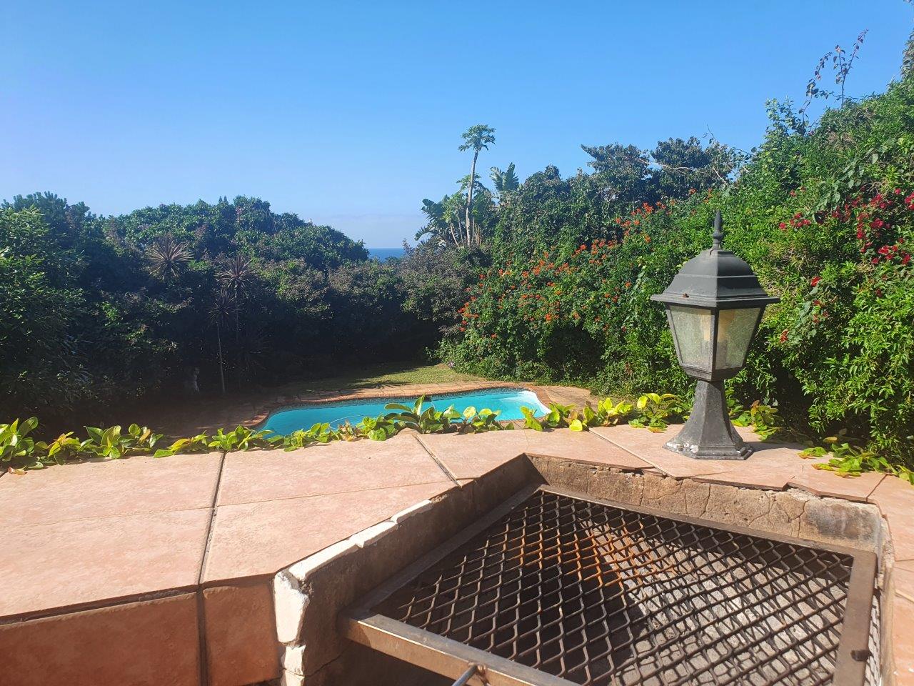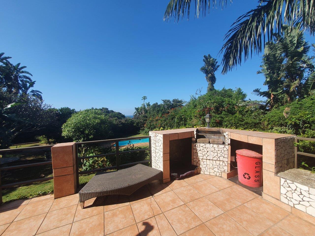 This uniquely designed home is set in the heart of Sea Park and is designed with comfort and style in mind. Main House offers you 3 spacious Bedrooms, 2 bathrooms (main en-suite), well sized kitchen, spacious lounge, sunroom and a patio with built in braai facilities and partial sea views! The main bedroom leads to a large balcony with distant sea views, separate outside laundry, closed courtyard with jacuzzi and many more futures. Earn extra income with the flatlet which offers you a private garden with jacuzzi and braai, spacious tiled lounge area & patio. kitchenette, 1.5 bedrooms and 1 bathroom with shower, toilet, and basin. The garden is well maintained, and the sparkling swimming pool and braai area is just a bonus to this lovely property. Pond, Double automated garage with direct access to the house. Parking Bay. Fully walled. Good security, Quiet suburb. Few minutes away from the beach and other amenities, which make this the perfect home for buyers looking for comfort, luxury, and space.