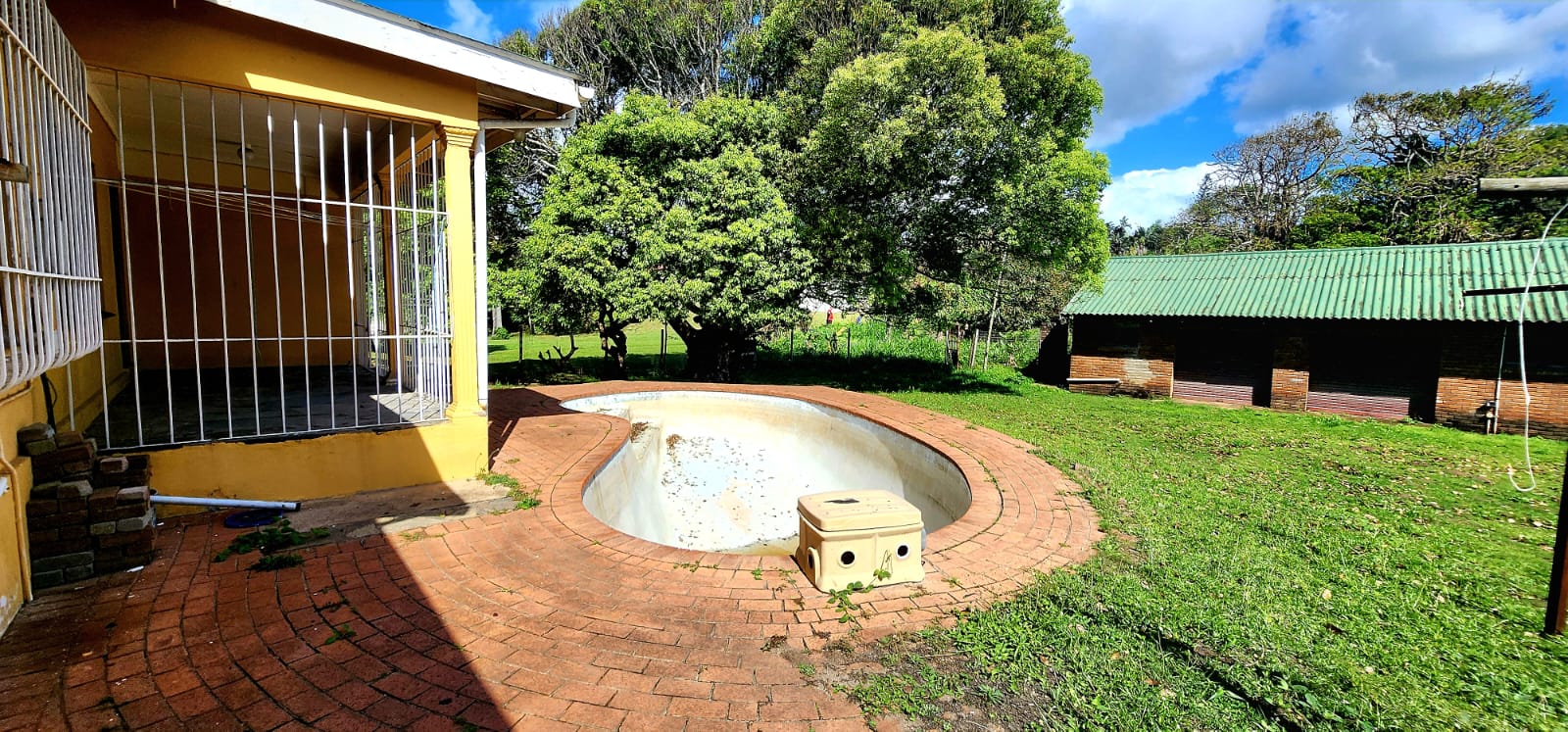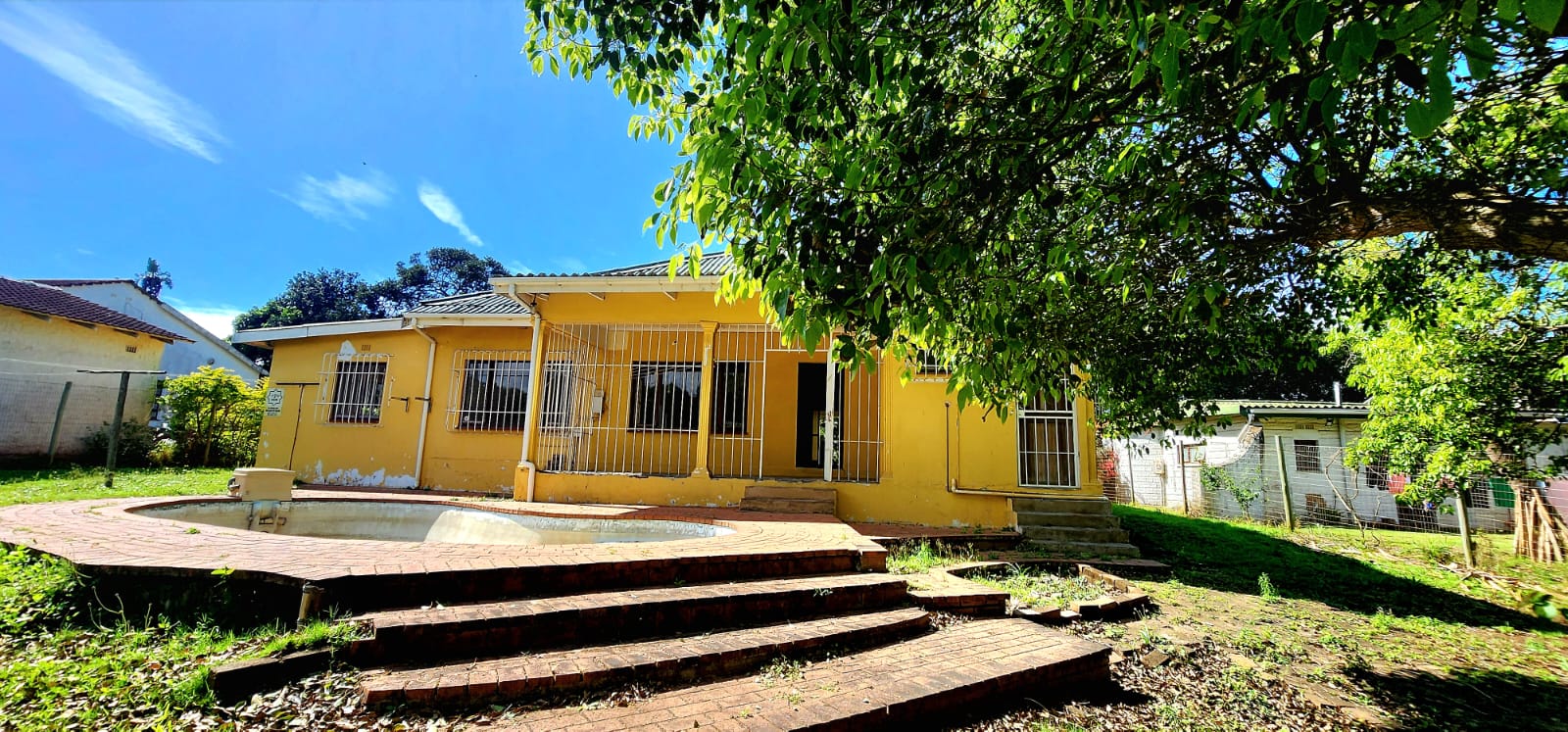 Situated on the beachfront in Sea Park, at a very popular fishing spot on the South Coast, a few minutes walk from local superette and take aways, hardware etc. You are welcomed by a large front patio with security bars, overlooking the garden, enter into an entrance hall, the lounge is to the right and is fitted with a bar, to the left is the first large bedroom, which has a full ensuite bathroom. The lounge is straight ahead and has a door opening to the back patio, overlooking the pool and garden, the patio also has security bars. A further 3 bedrooms and a family bathroom (full) are on the opposite side of the home. At the back of the property is a large double garage with staff rooms on each side, behind that are another 2 staff rooms with a bathroom in the centre, this could all be renovated into additional accommodation, perfect for holiday rentals. The property is fenced, in a prime location, needs some work to bring it up to date, well worth viewing for someone looking for beachfront property. Please contact us ANYTIME to chat further! Matriarch Real Estate powered by Mandated Property Group (Pty)Ltd