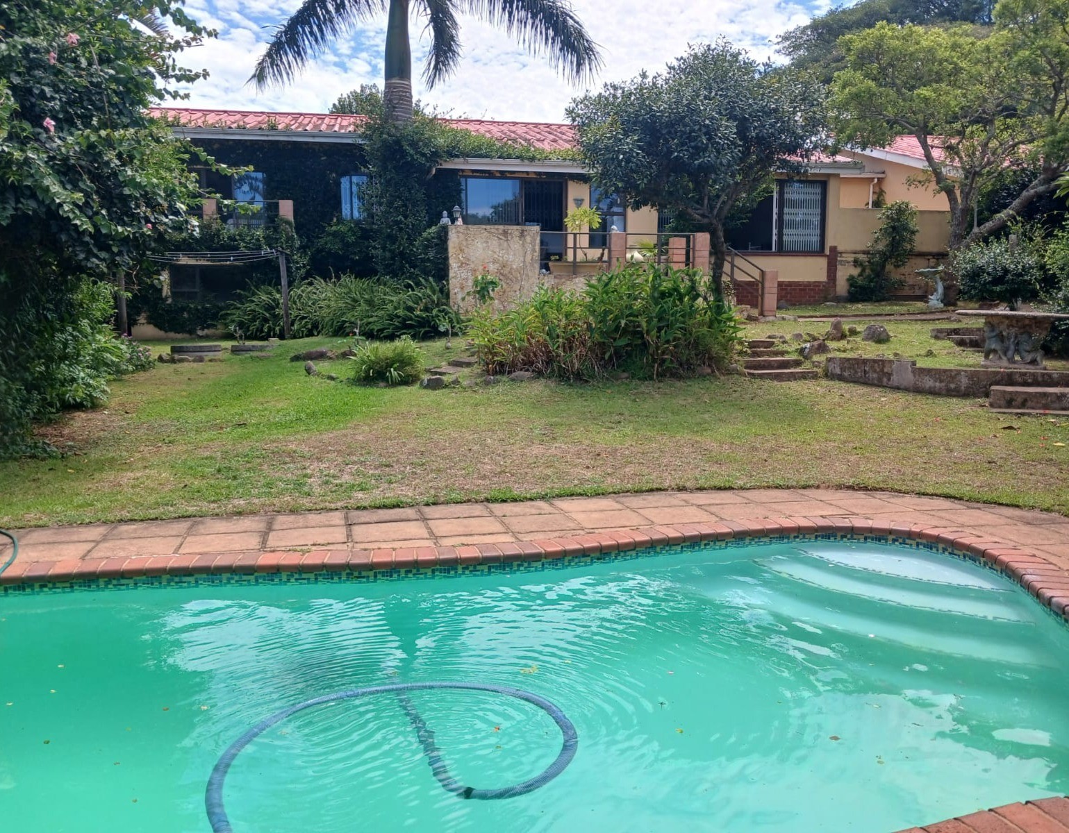 Perched gracefully above road level, this conventionally built residence ensures privacy and potential views. The home boasts classic plaster finishes and is complemented by modern aluminium window frames throughout. A robust roof structure, with details regarding its composition including asbestos roof options, provides practical and enduring shelter.