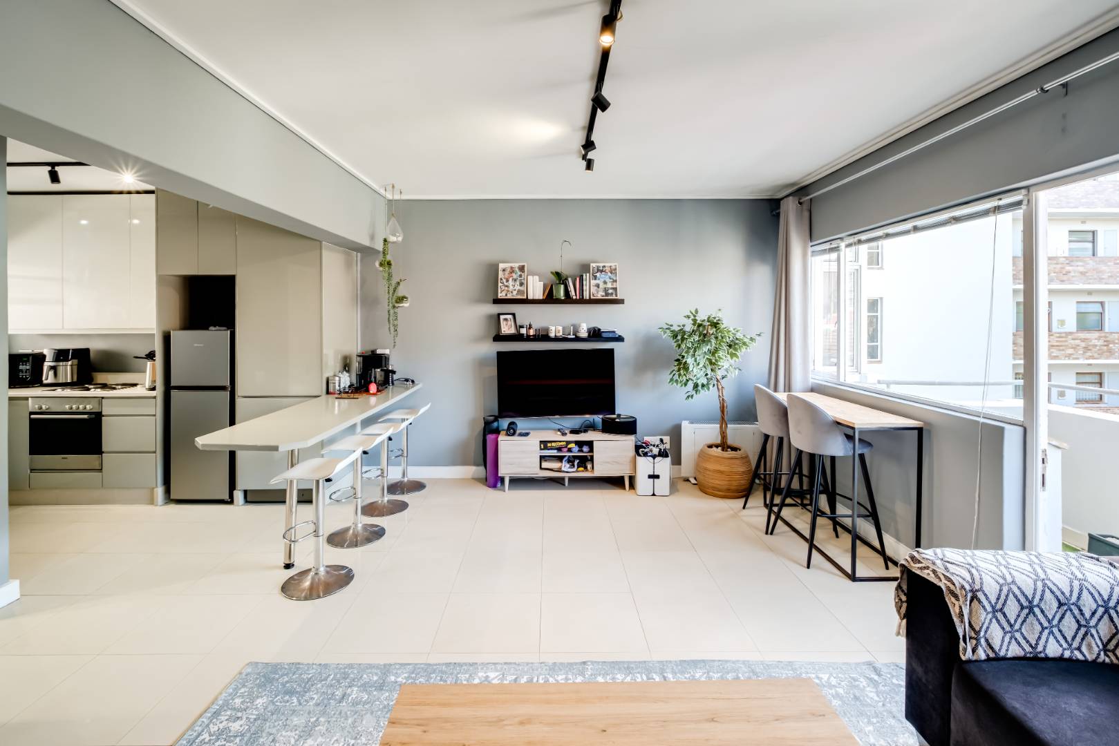 This 2nd floor apartment of 64sqm comprises of one generously sized bedroom with floor to ceiling built-in cupboards, a bathroom with a shower over the bath and stylish open plan living with modern fixtures and finishes. The kitchen consists of double sink, electric stove/ oven, single fridge space, breakfast eat-in counter and plumbing for 1 appliance. The living space is free flowing to a small balcony with pleasing views of Signal Hill, and this unit comes with a dedicated parking bay within the premises giving you peace of mind.