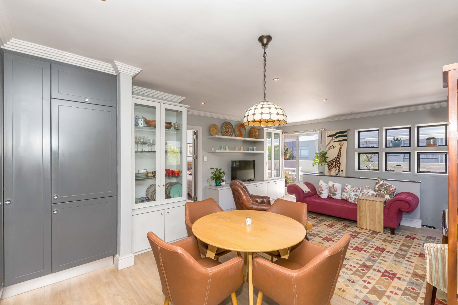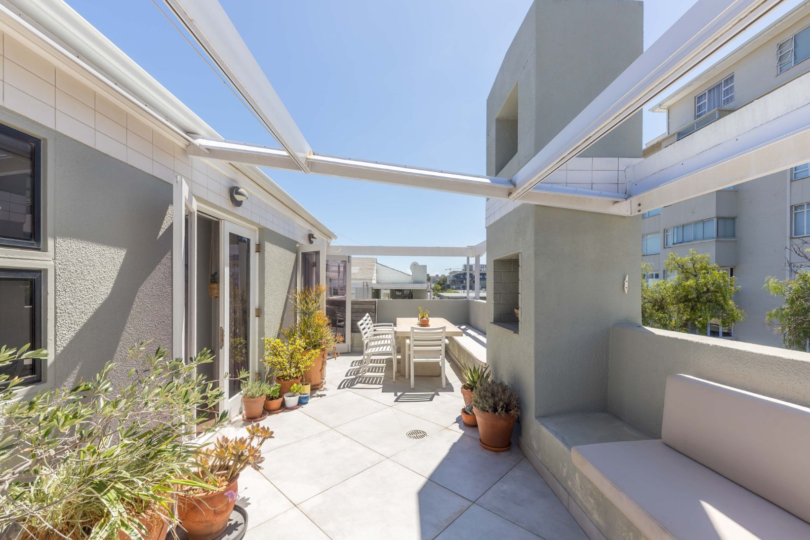 A well-positioned, fully furnished, second-floor apartment in the sought-after Pepper Tree complex on St John’s Road, Sea Point, is available to rent IMMEDIATELY. This one bedroom, one bathroom home features an open plan kitchen, dining and living area, flowing onto a spacious 30sqm sun deck, ideal for outdoor living. The bedroom, with aircon, also opens out to the deck.