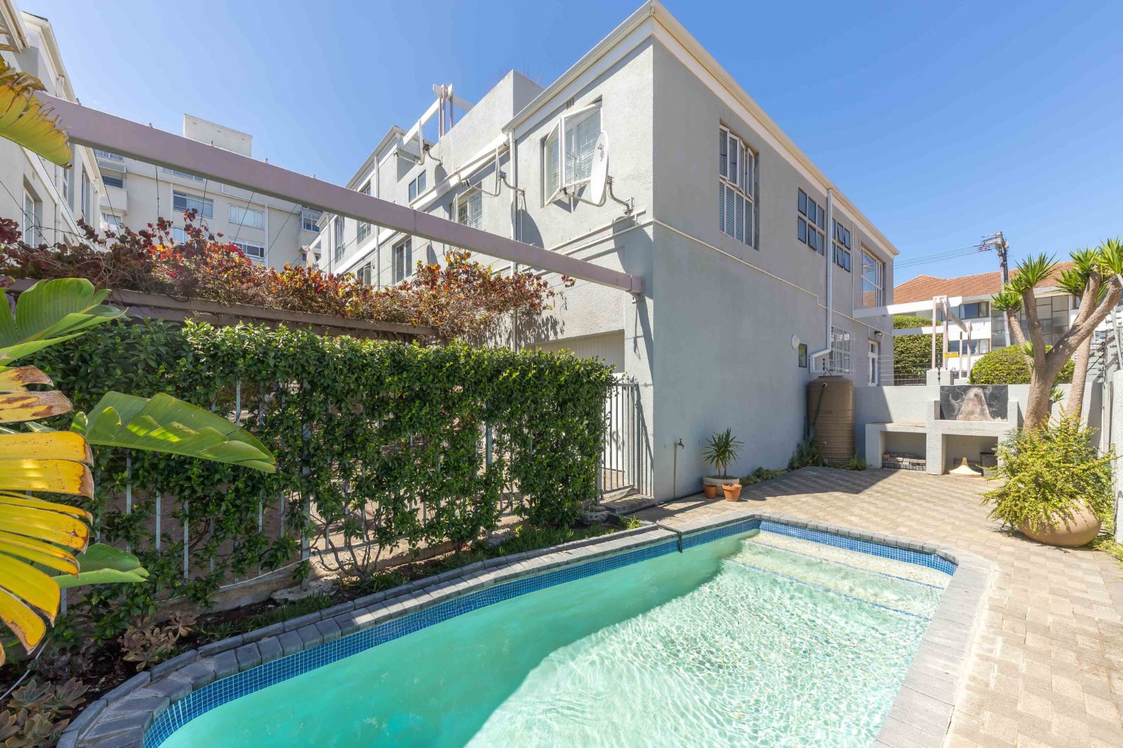 The well-maintained complex offers a communal pool and vine-shaded garage area. A single garage is included. Water, Wi-Fi and a once-weekly housekeeper are included, with electricity charged monthly in arrears.