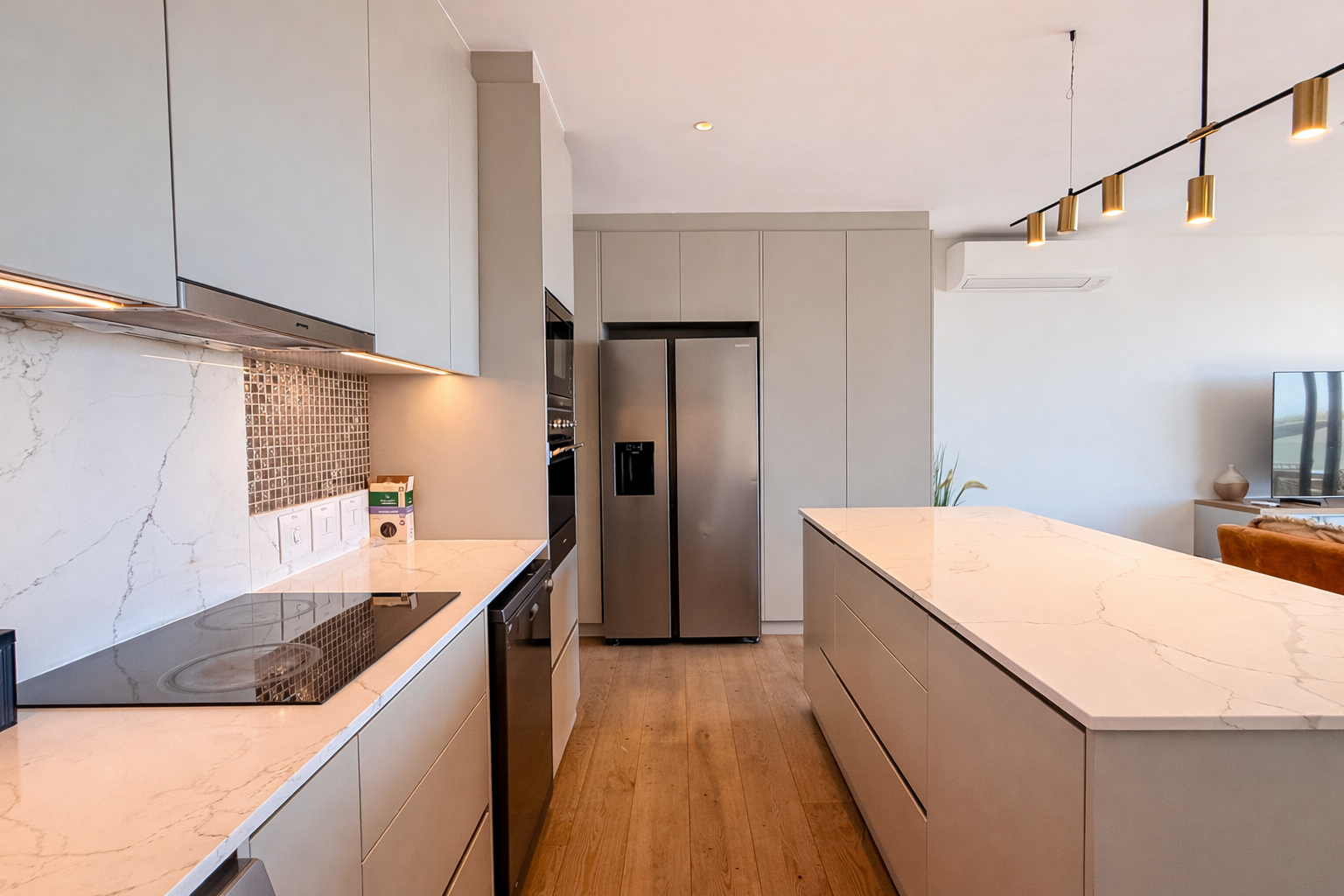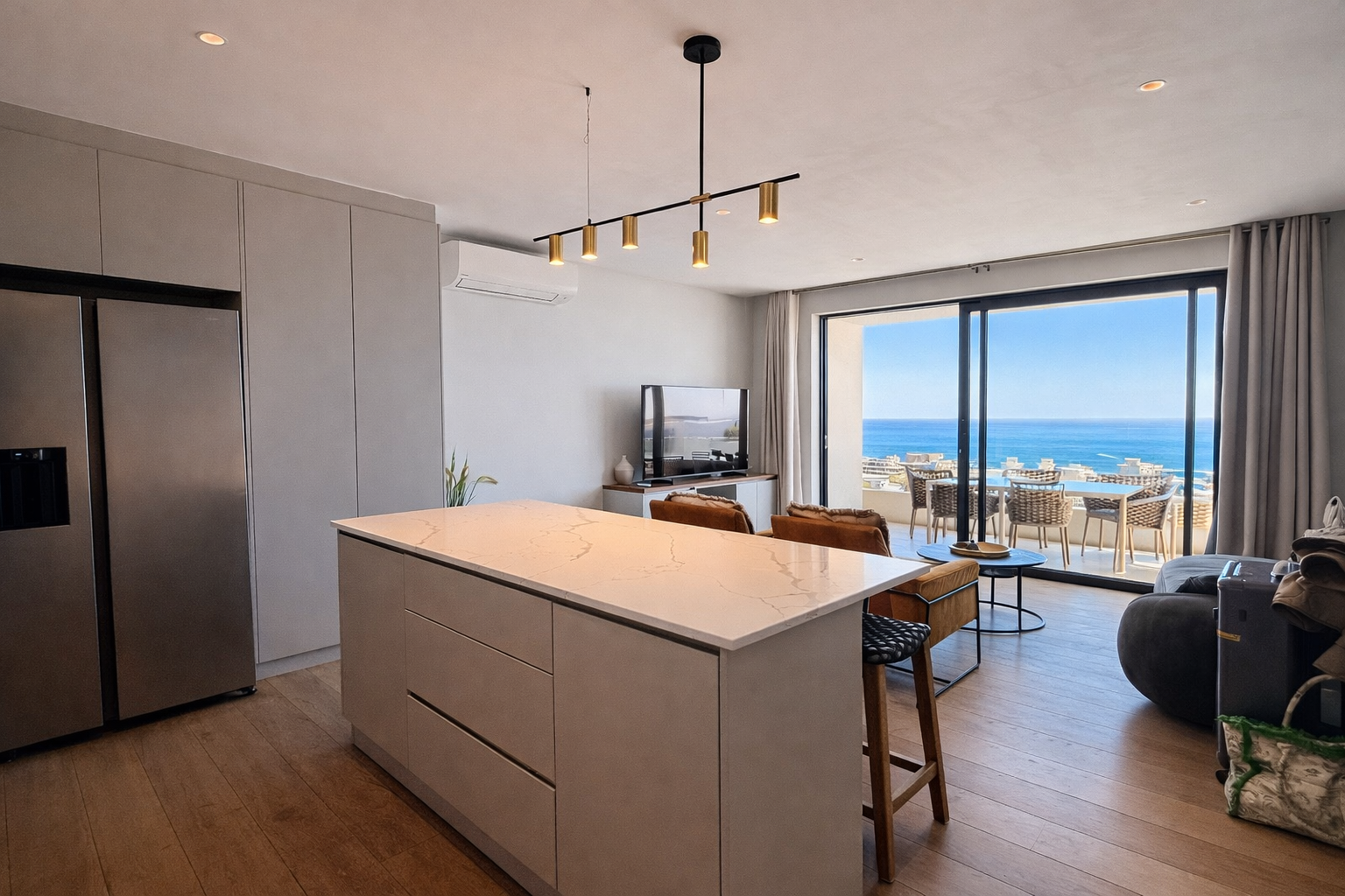 The open-plan living and dining area is generously proportioned and finished with plush, high-end furnishings that complement the refined aesthetic. Every detail has been considered to deliver both comfort and sophistication — ideal for relaxed coastal living or refined entertaining.