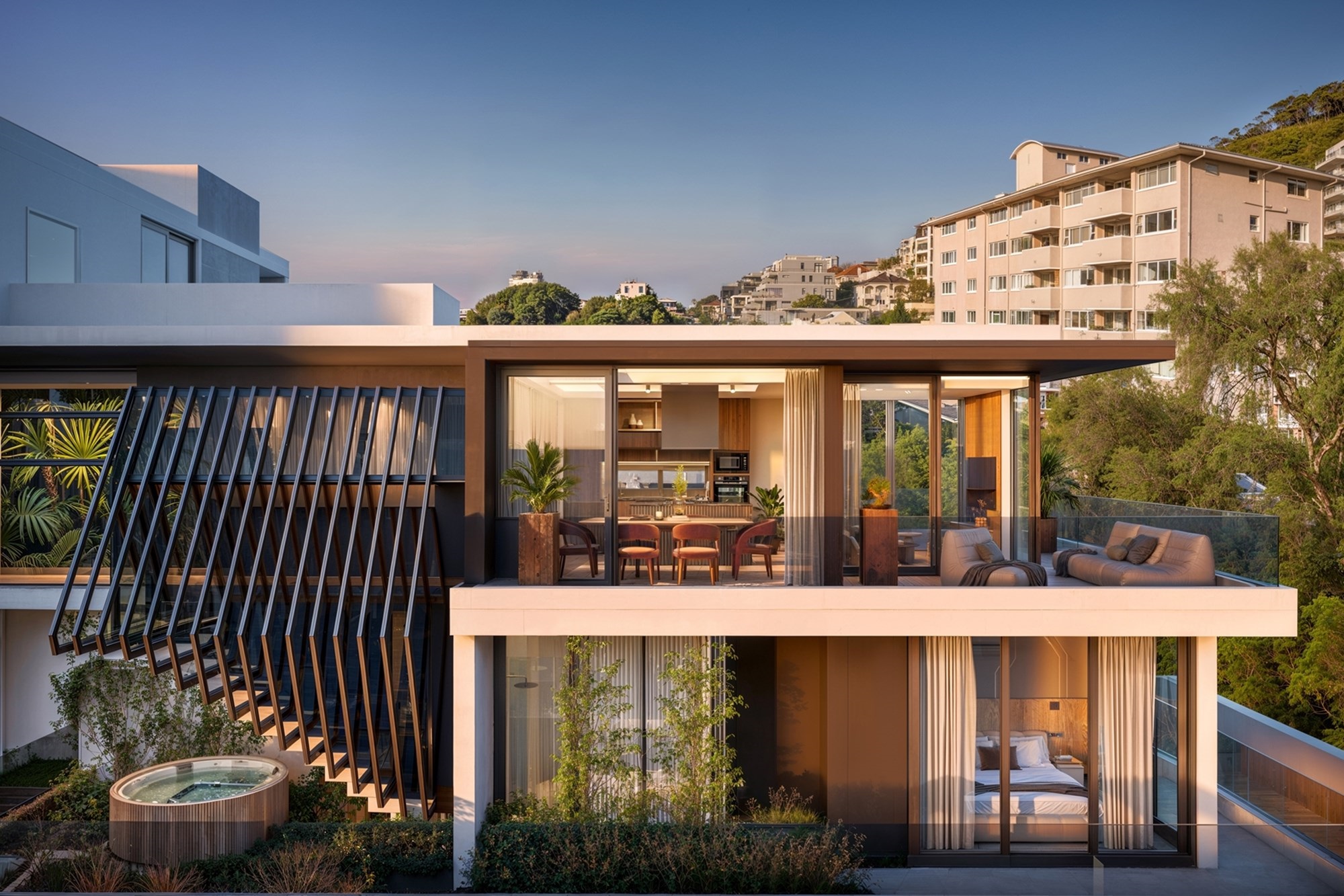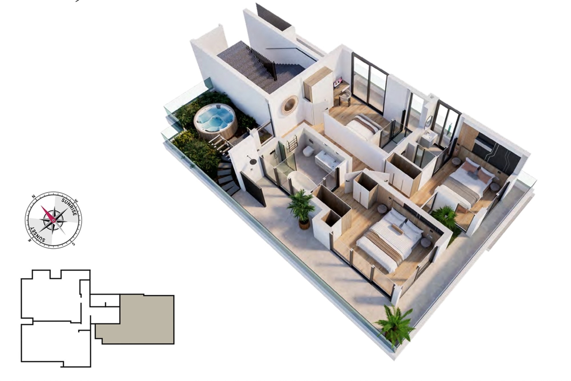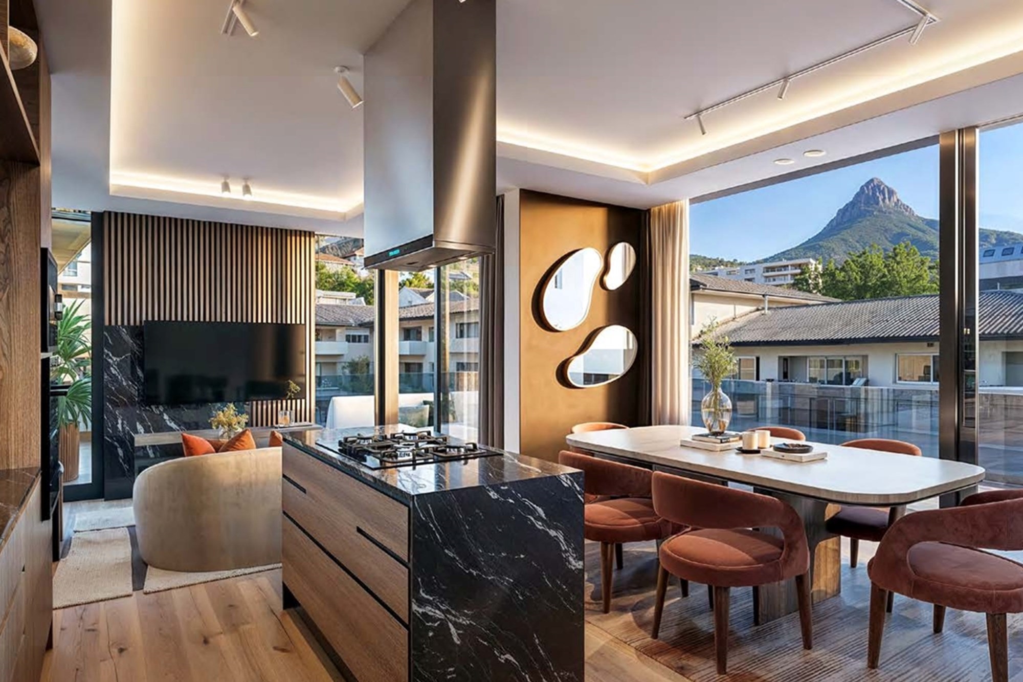This dramatic 3-bed duplex with dual terraces, plunge tub, braai + full mountain views is the soul of slow living and the art of showing off.