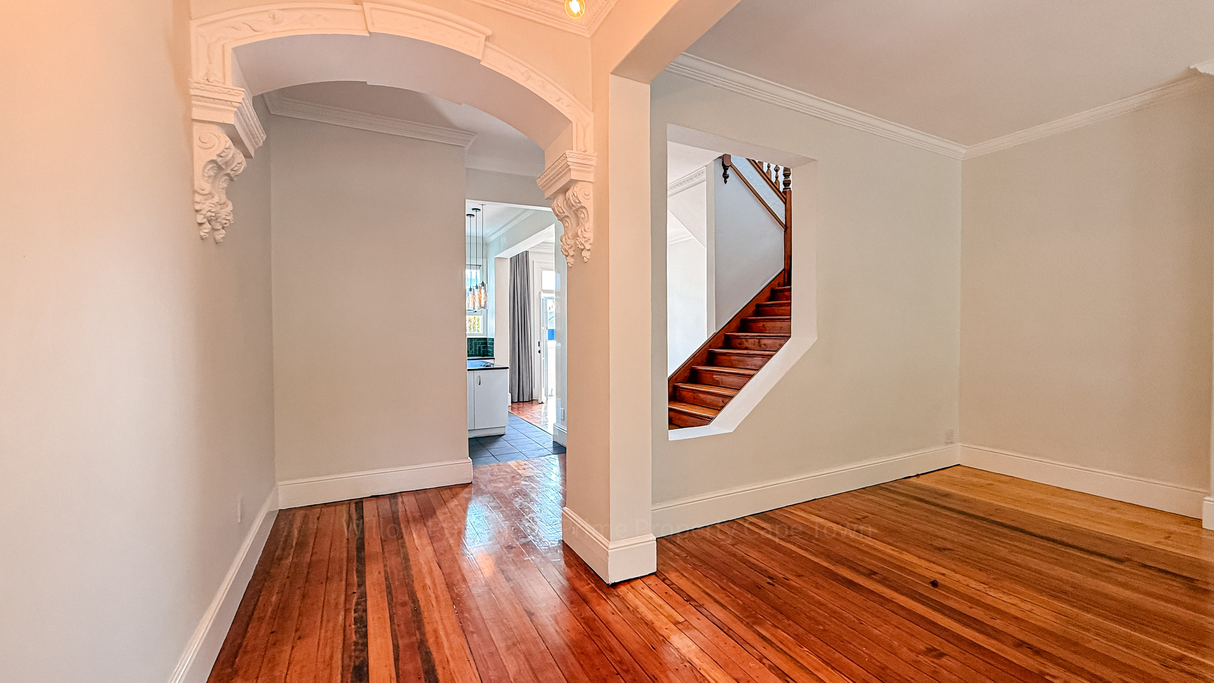 Inside, the home is immaculate and full of character. You’ve got original pine floors and an old colonial farmhouse feel, mixed with art-deco elements, and then balanced out by a modern kitchen, updated bathrooms, and clean, contemporary lighting. It feels warm, lived-in, and well cared for — not sterile or overdone.