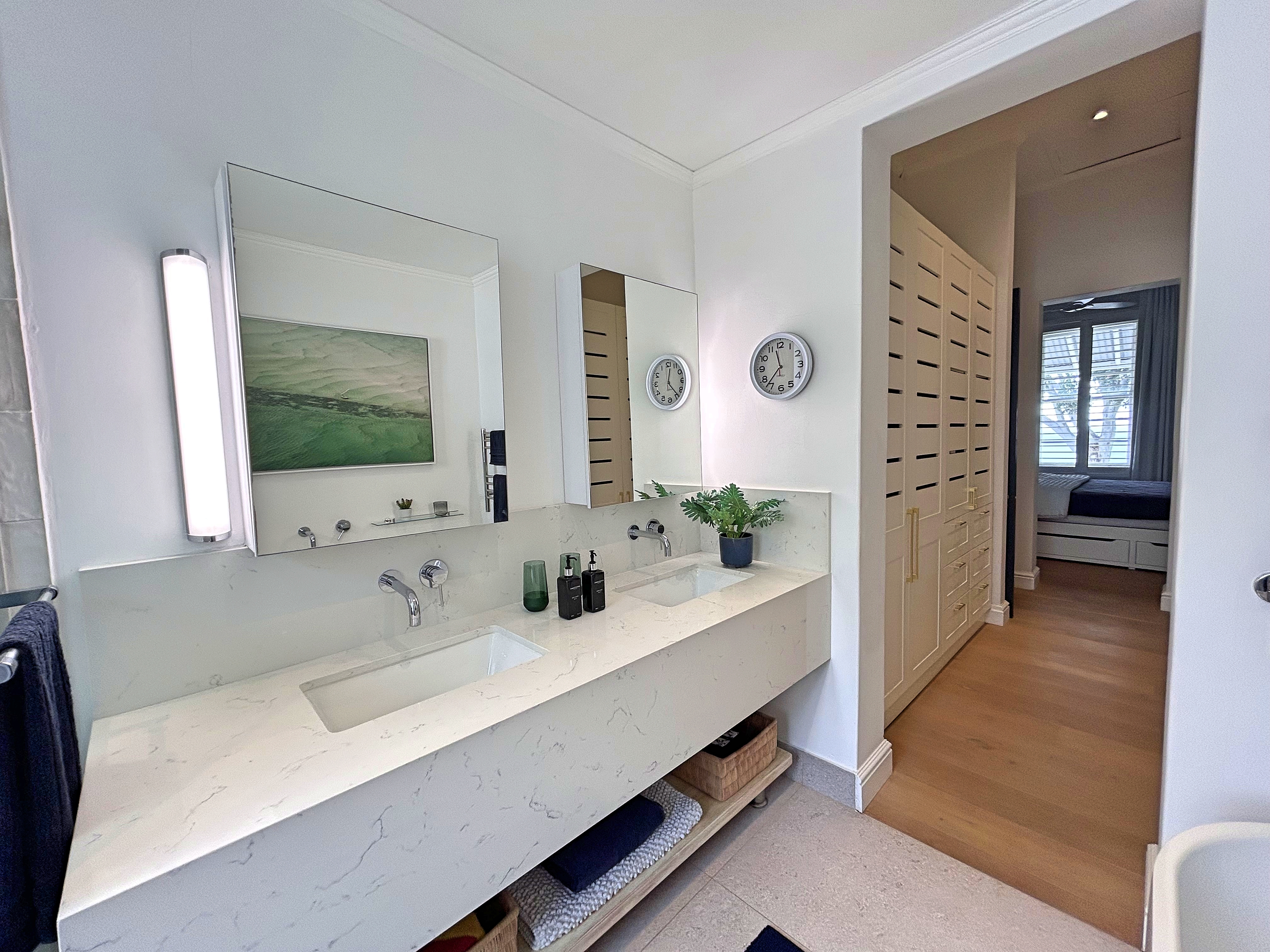Beautifully appointed bedrooms, both with en-suite bathrooms, offer peaceful retreats.