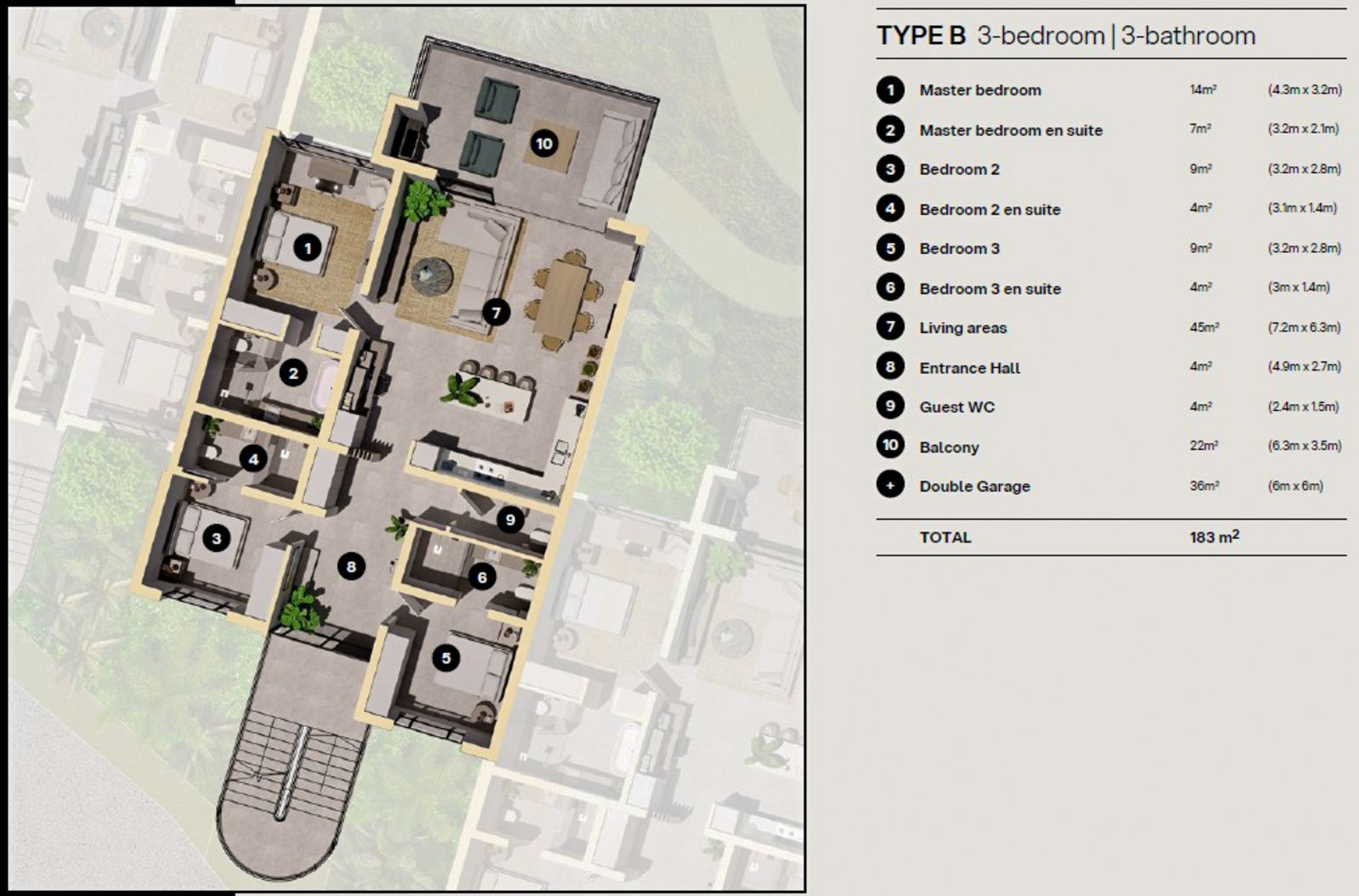 Our stunning condo apartments are spread across three floors—ground, first, and second—each featuring a double garage and allocated parking bays for your convenience.