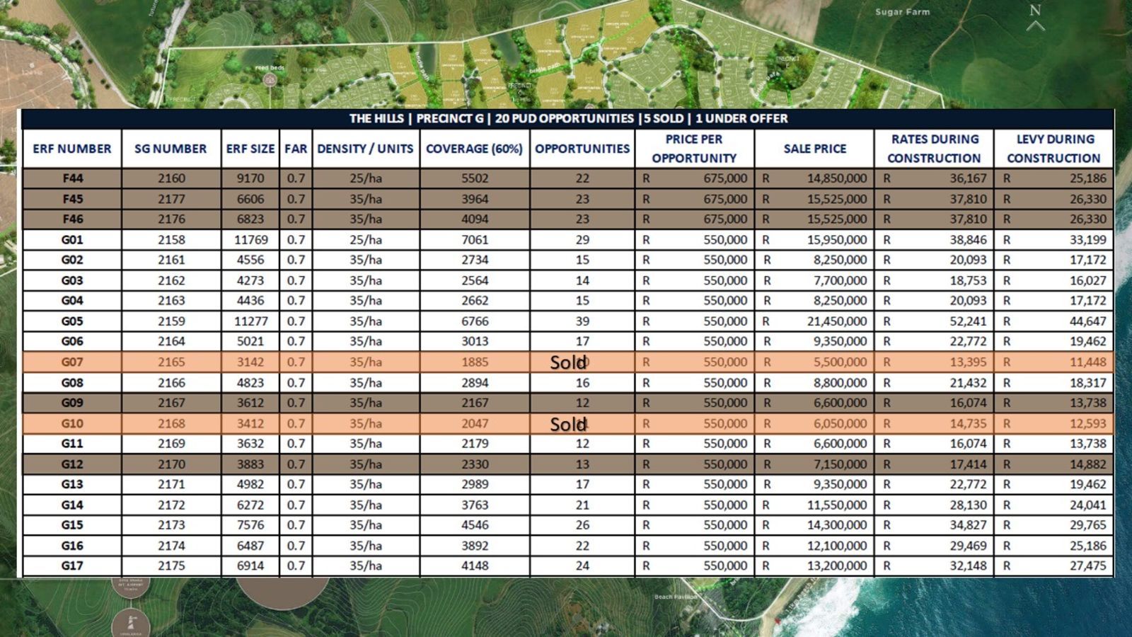 | ERF NUMBER | ERF SIZE (m2) | OPPORTUNITIES | PURCHASE PRICE