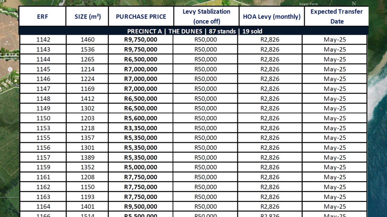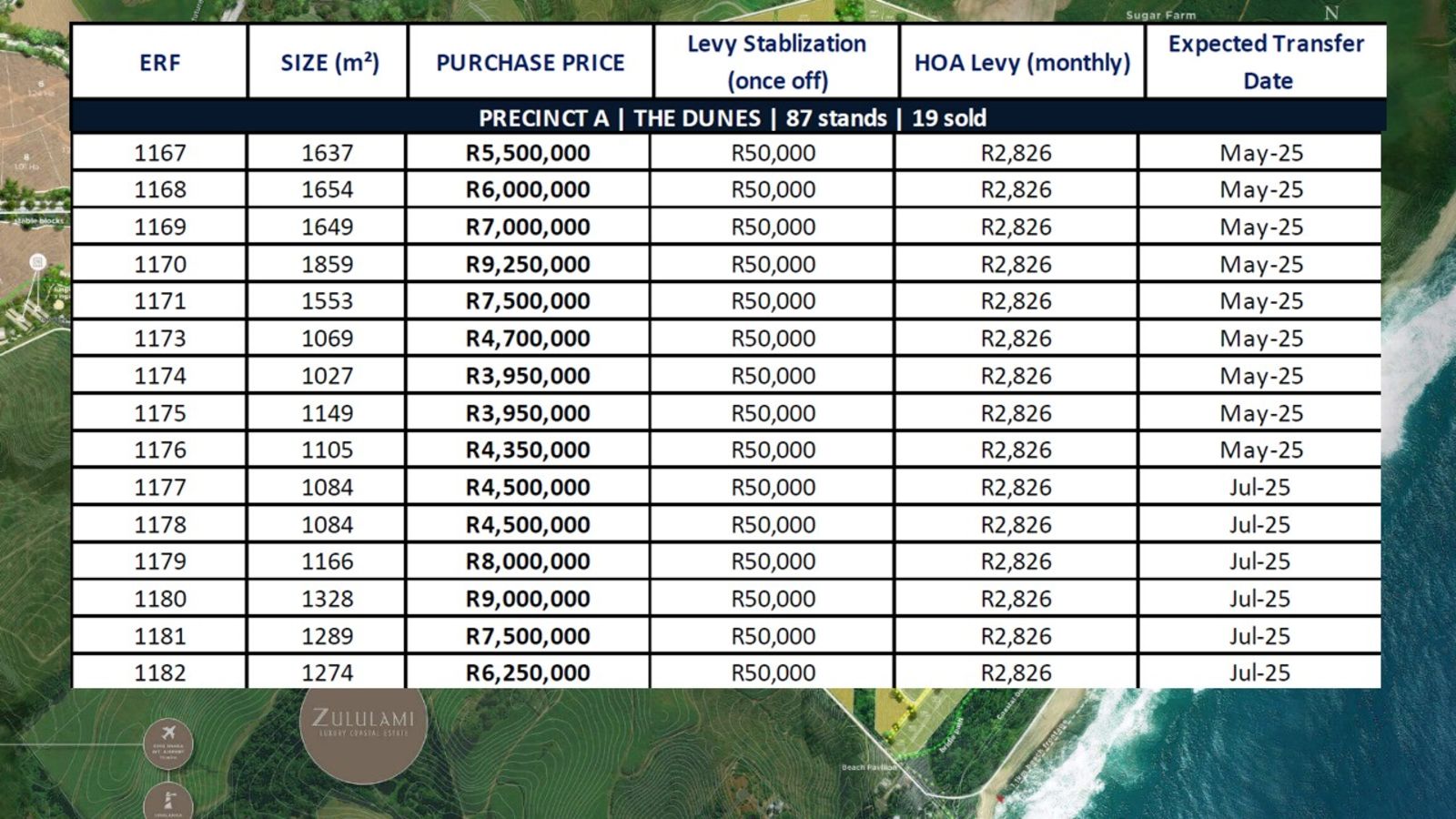 The following land is available in PRECINCT A - THE DUNES: